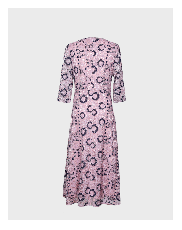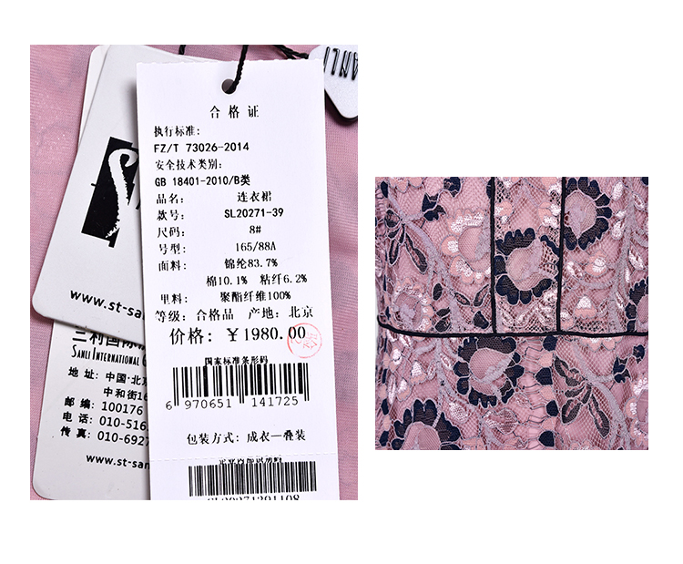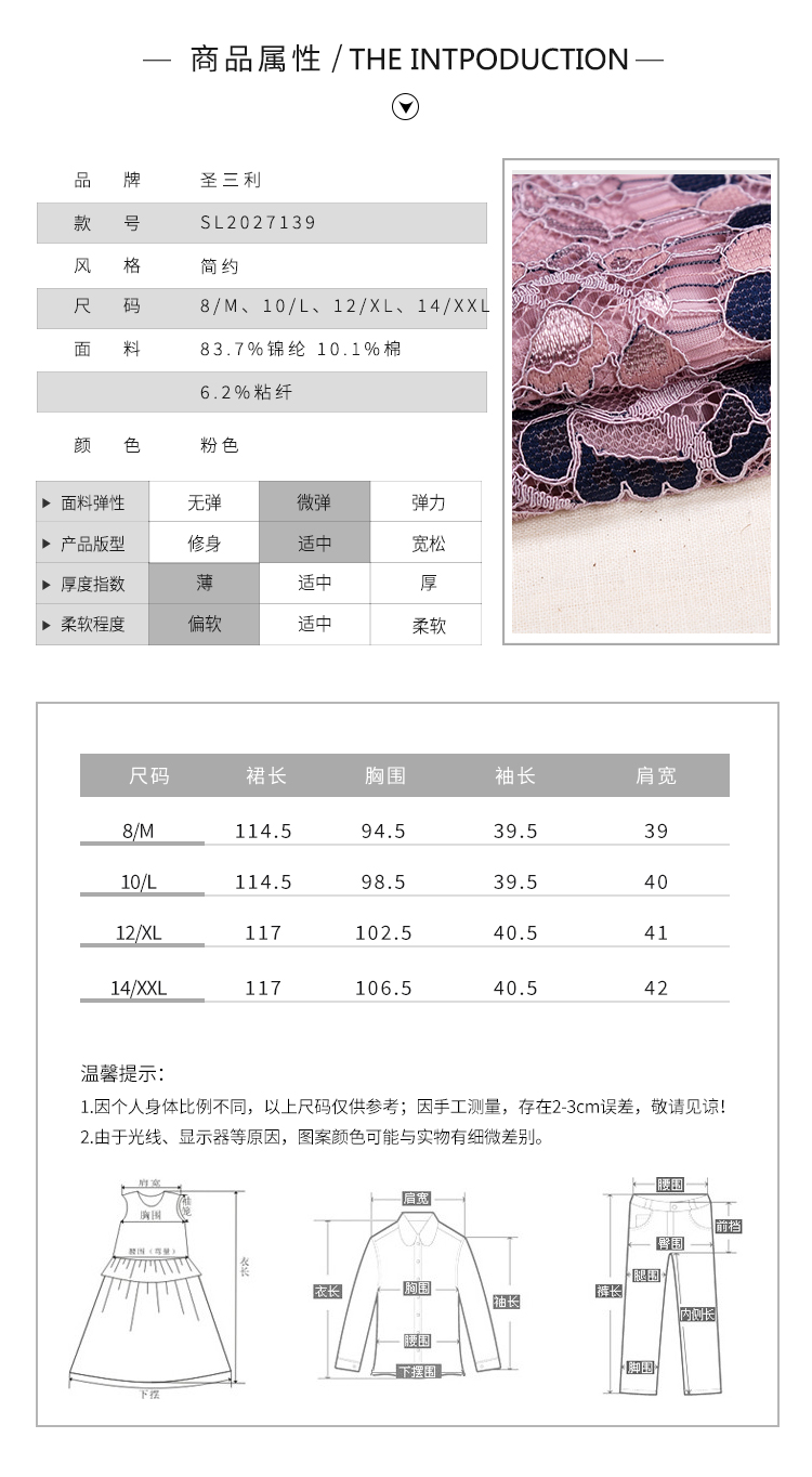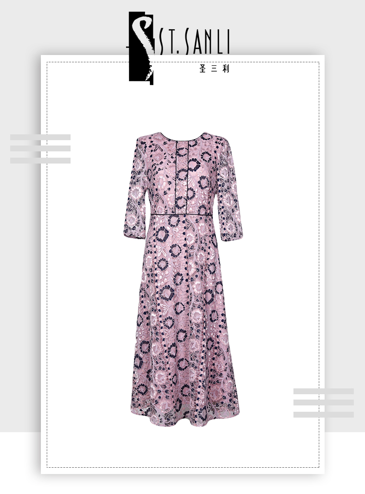 圣三利女装 新款法式优雅双色蕾丝镂空收腰散摆连衣裙SL2027139