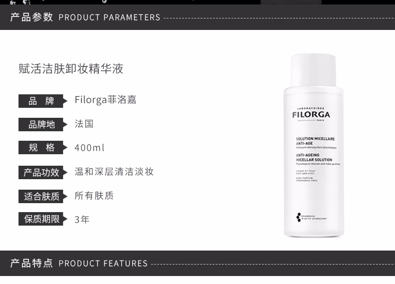 法国 FILORGA 菲洛嘉 赋活洁肤卸妆水 400ml