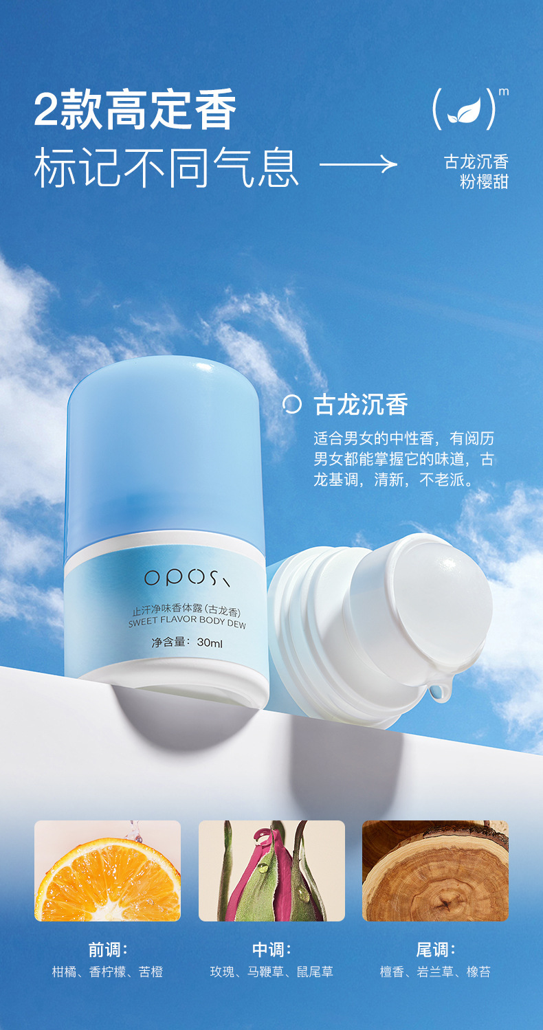 「9.9到手!屈臣氏同款」oposi止汗净味香体露 淡化狐臭腋下净味留香喷雾学生净异味香氛精油