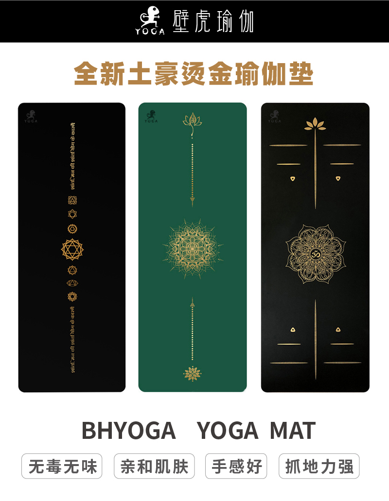 壁虎瑜伽【烫金瑜伽垫】加厚加长专业健身防滑土豪垫子家用地垫 【发货】