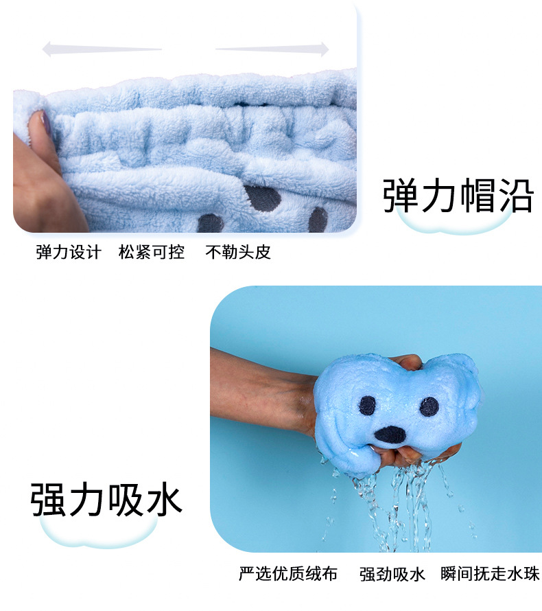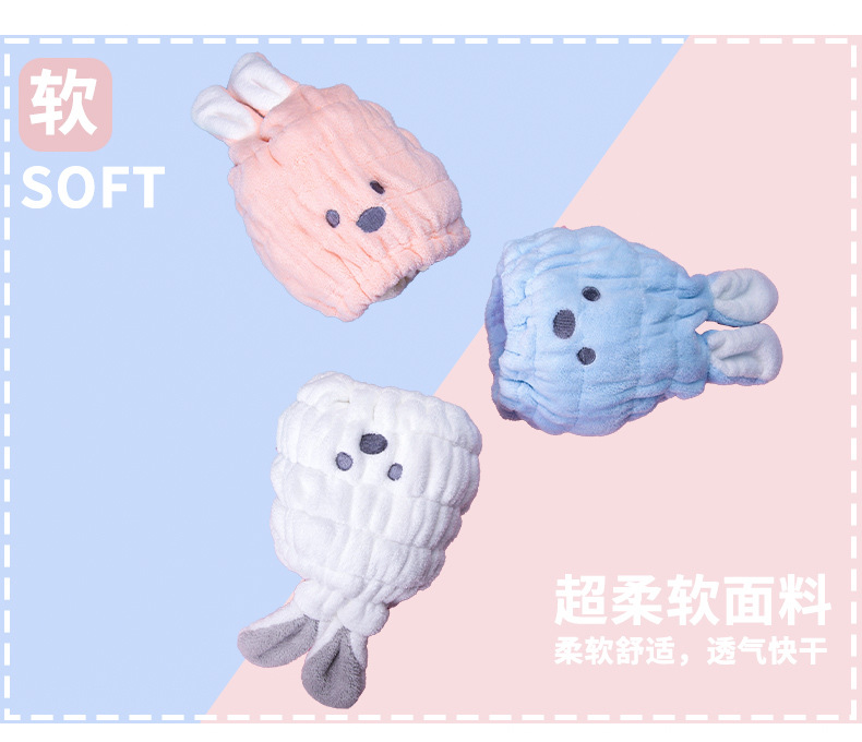 「数色可选!儿童+成人款」干发帽可爱卡通兔子浴帽吸水珊瑚绒儿童擦头发毛巾包头干发巾居家布艺
