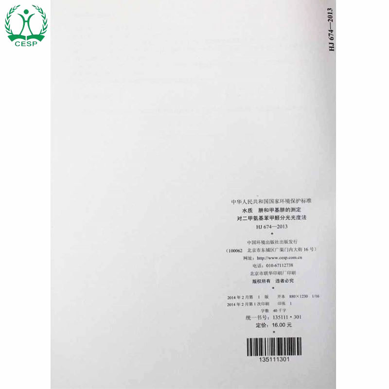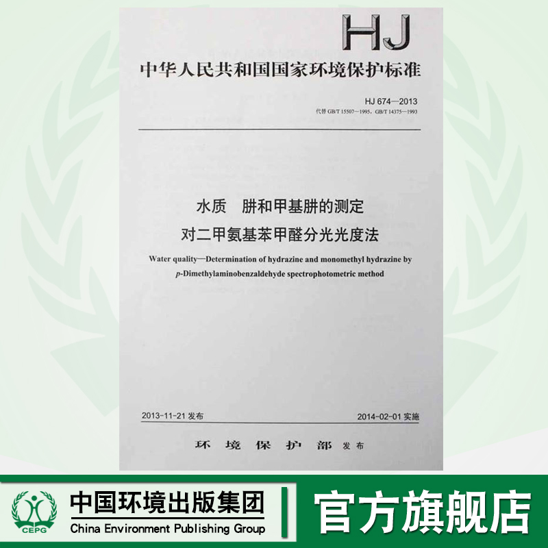 HJ 674-2013 代替 GB/T 15507-1995GB/T 14375-1993 水质 肼和甲基肼的测定对二甲氨基苯甲醛分光光度法 环境保护13511130
