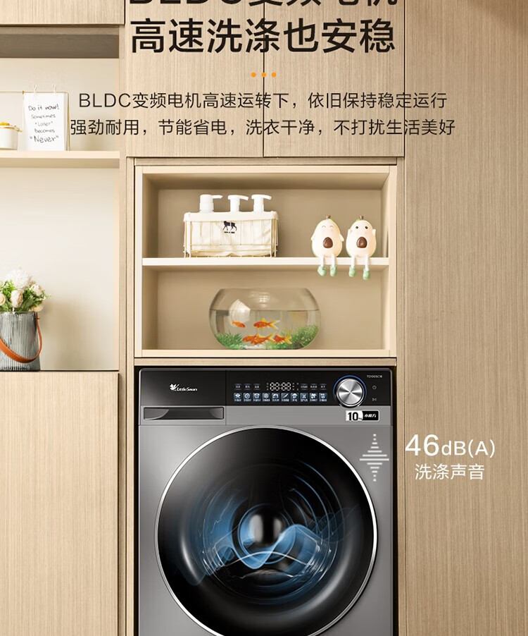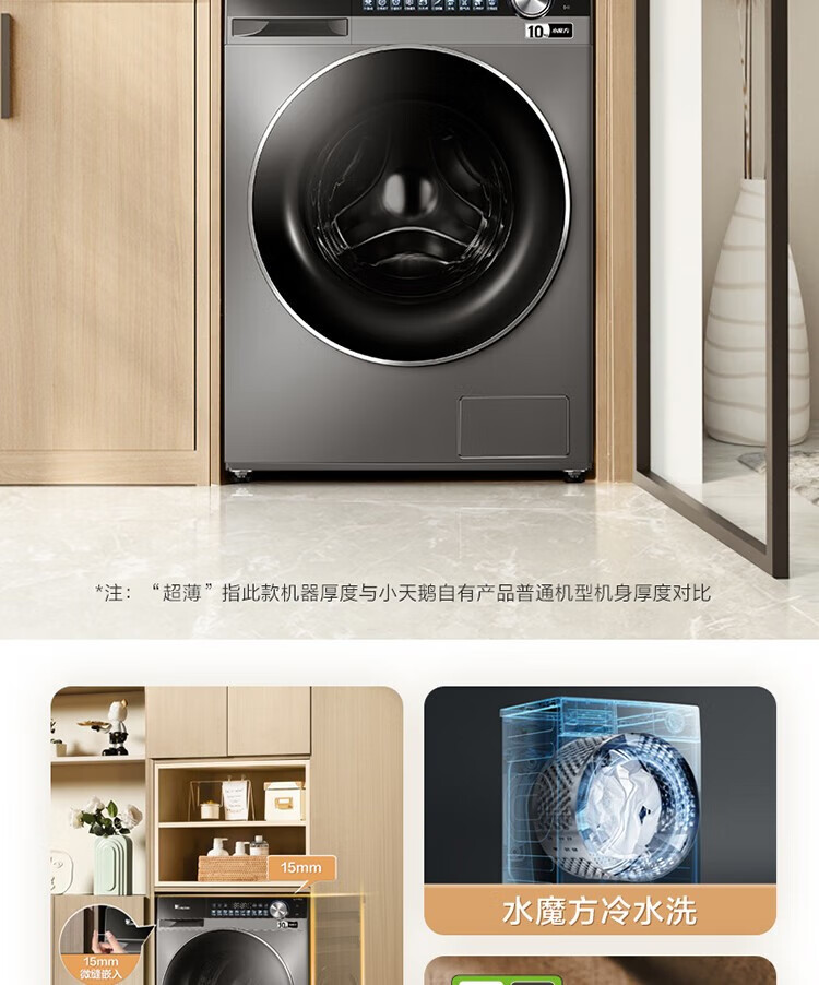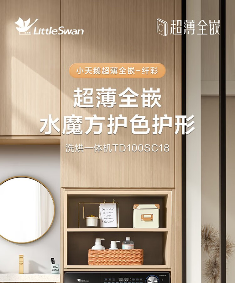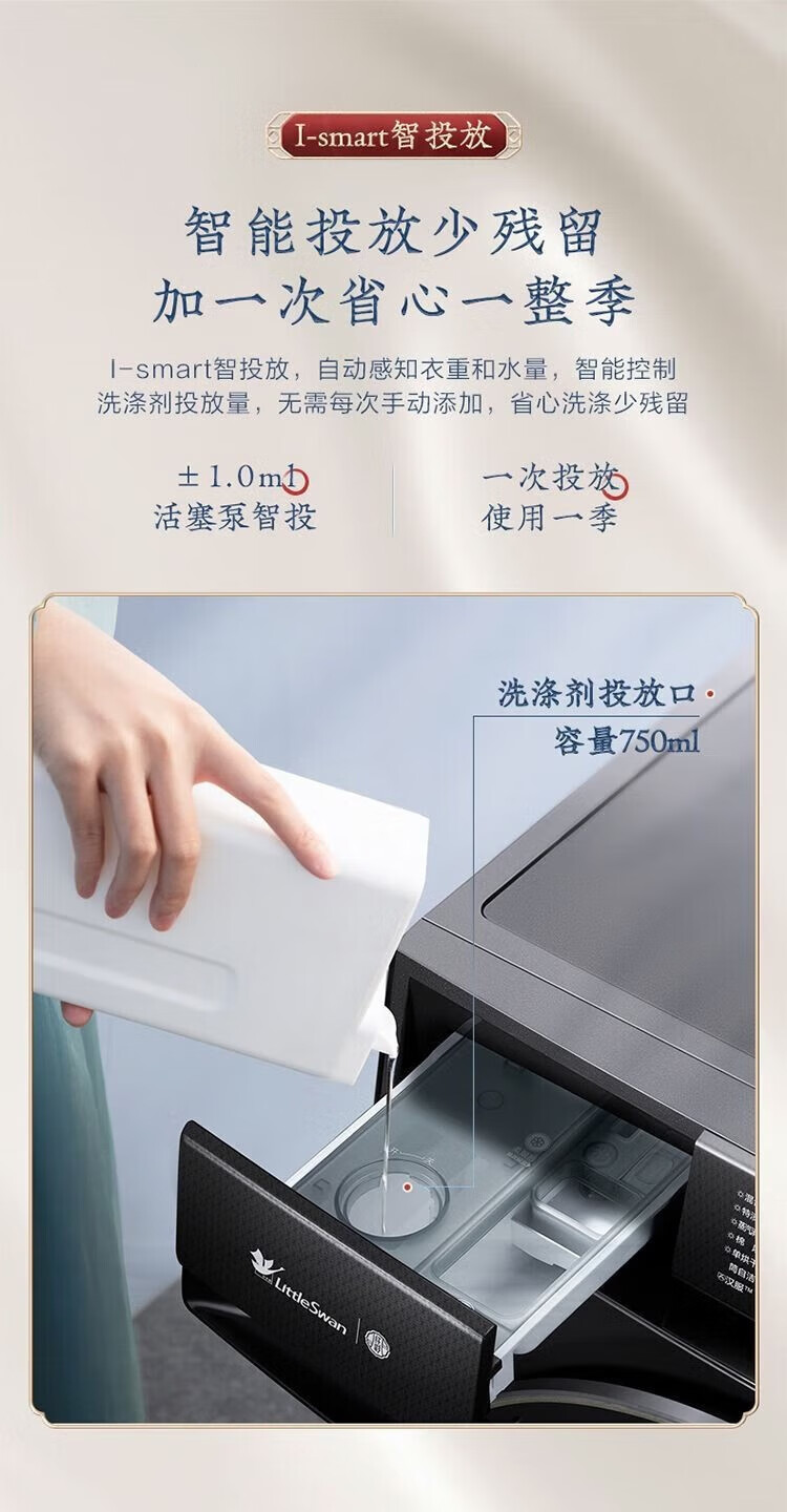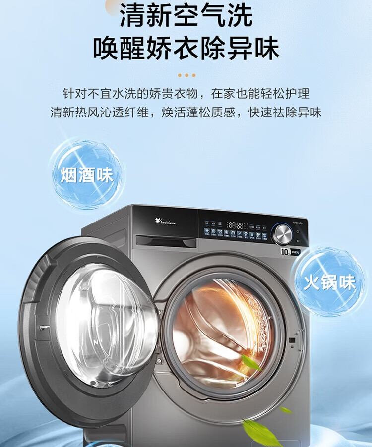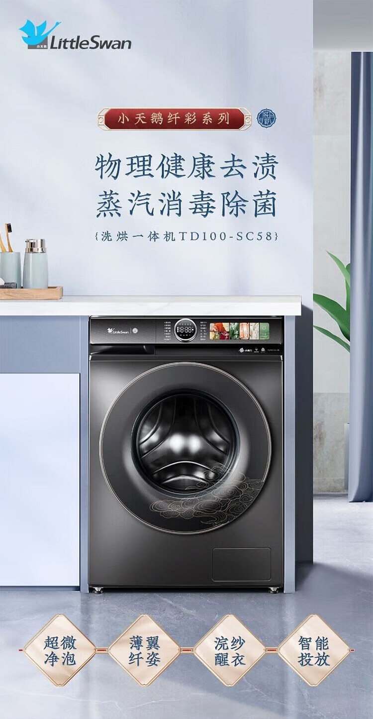 小天鹅(LittleSwan)10公斤滚筒洗衣机全自动大容量家用超薄全嵌智能投放大筒径除菌螨 洗烘一体TD100PURE