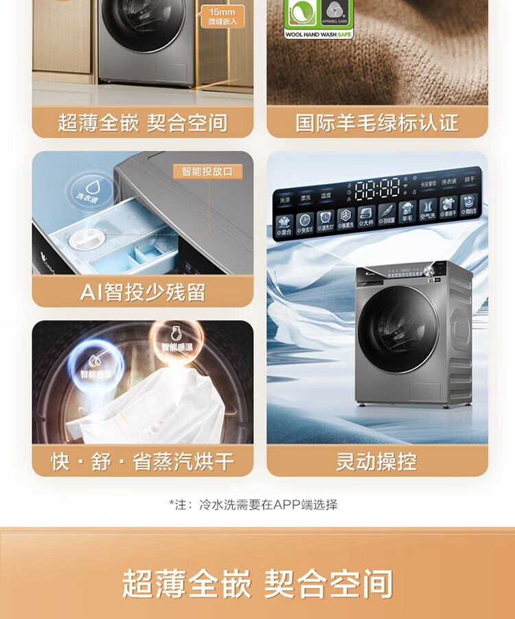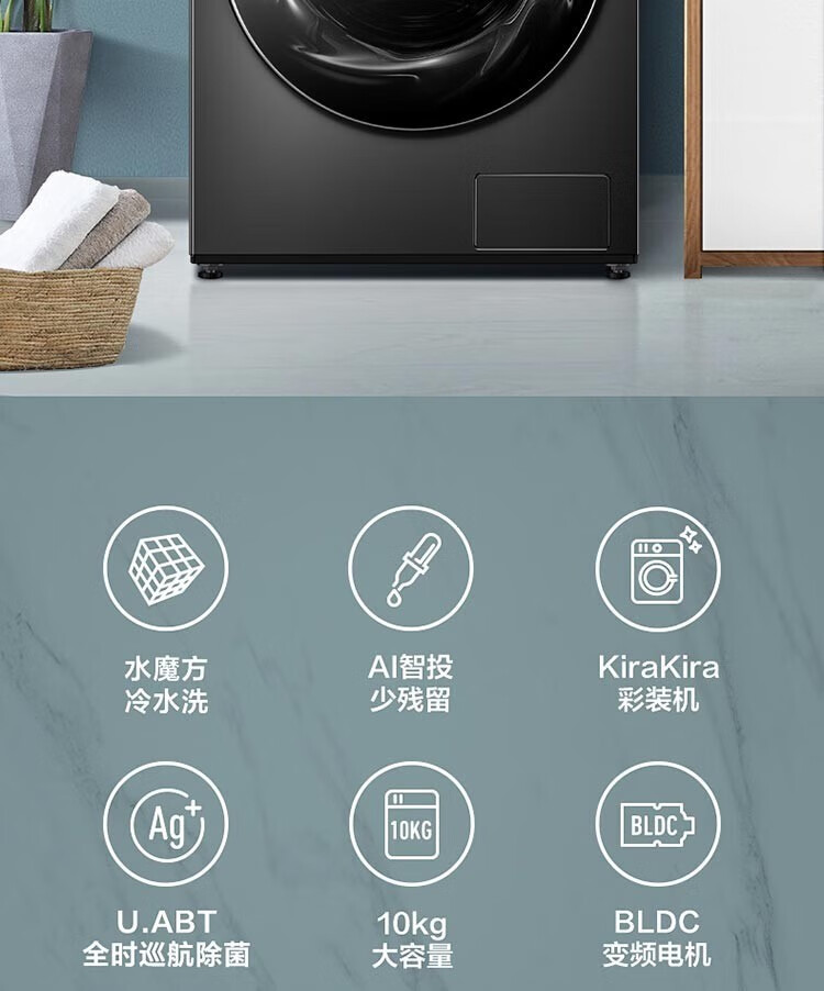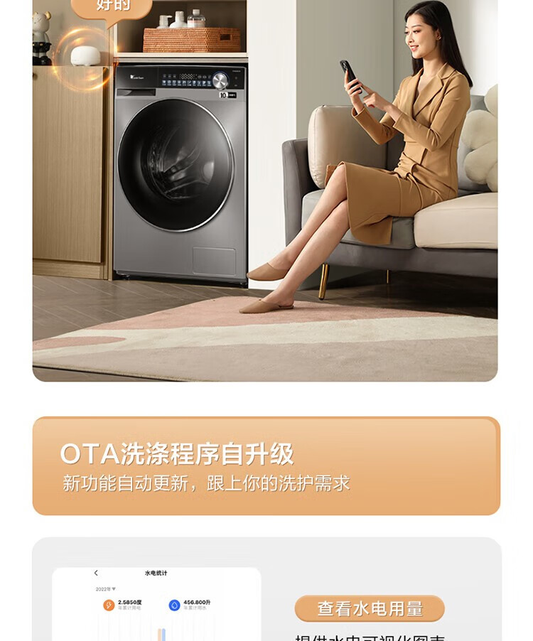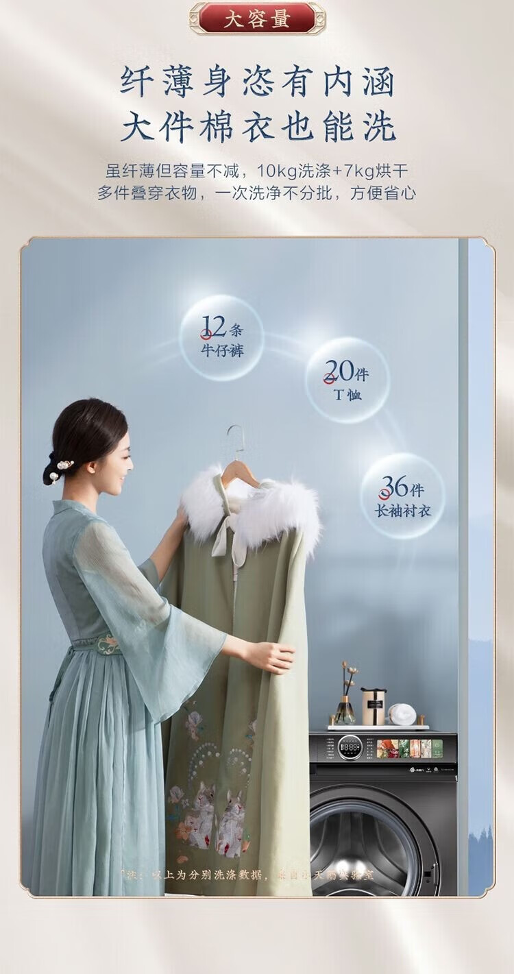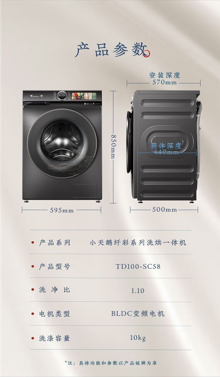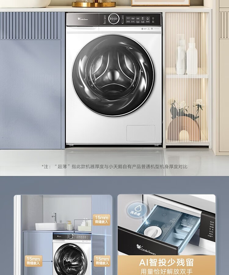 小天鹅(LittleSwan)10公斤滚筒洗衣机全自动大容量家用超薄全嵌智能投放大筒径除菌螨 洗烘一体TD100PURE