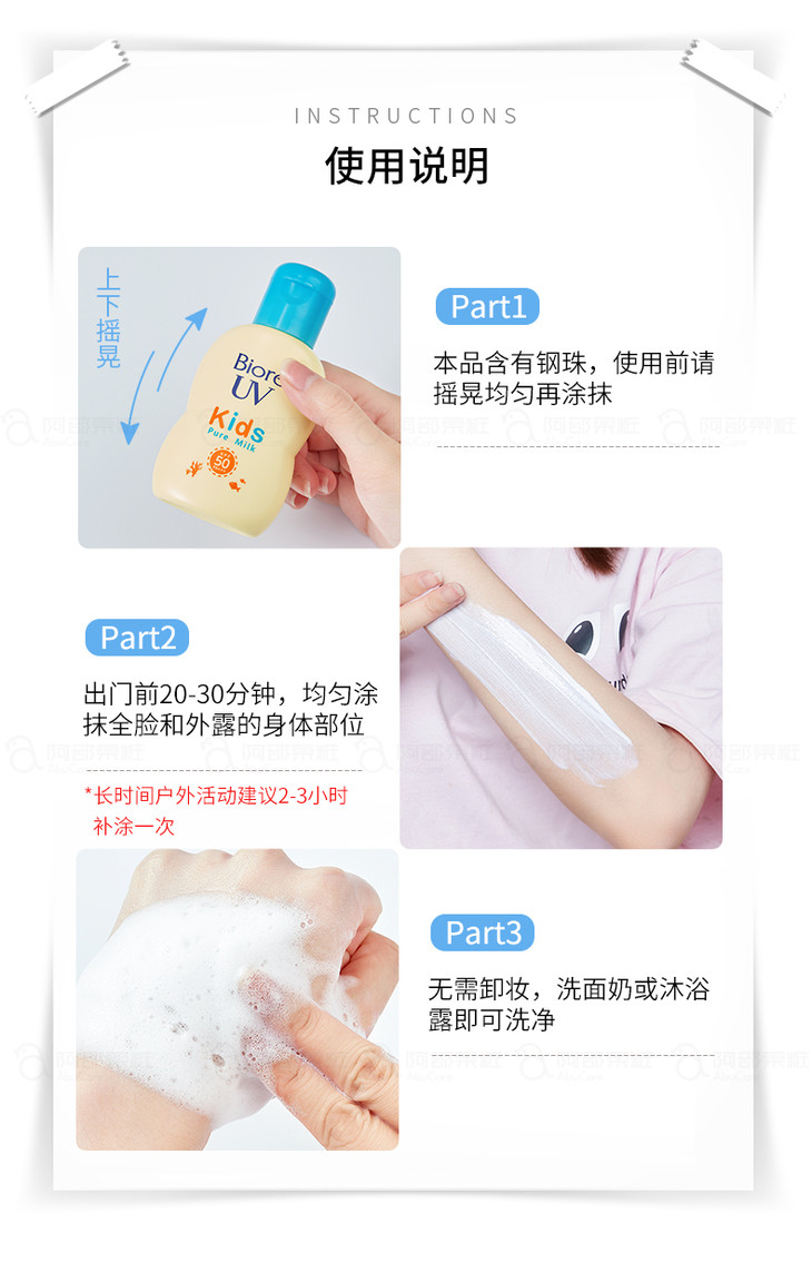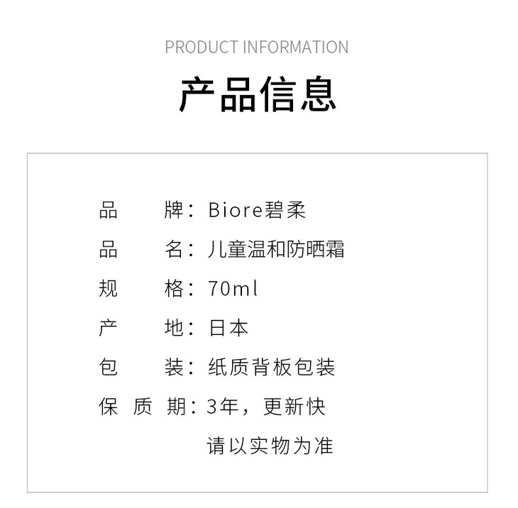 日本Biore碧柔儿童防晒霜敏感肌温和清爽
