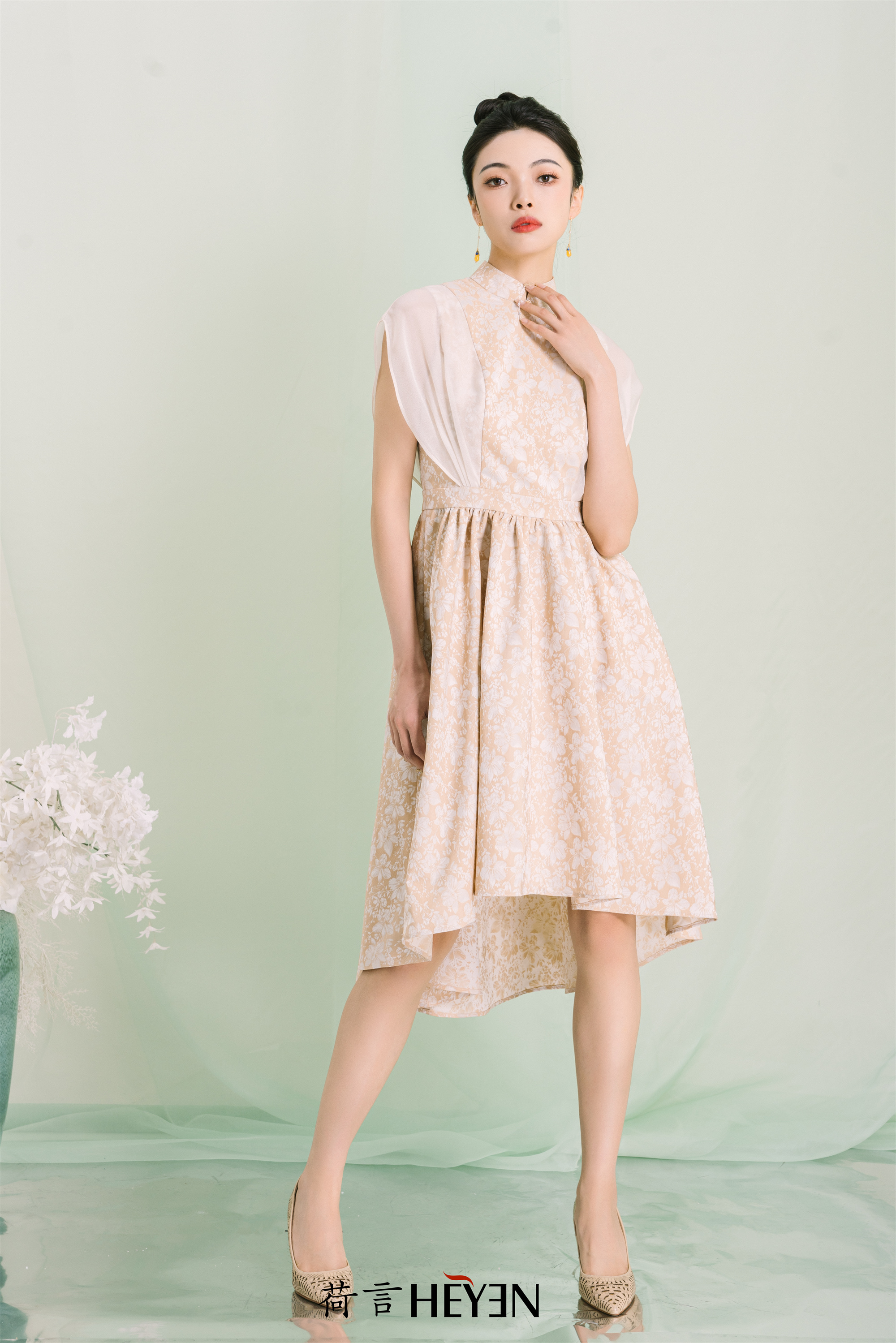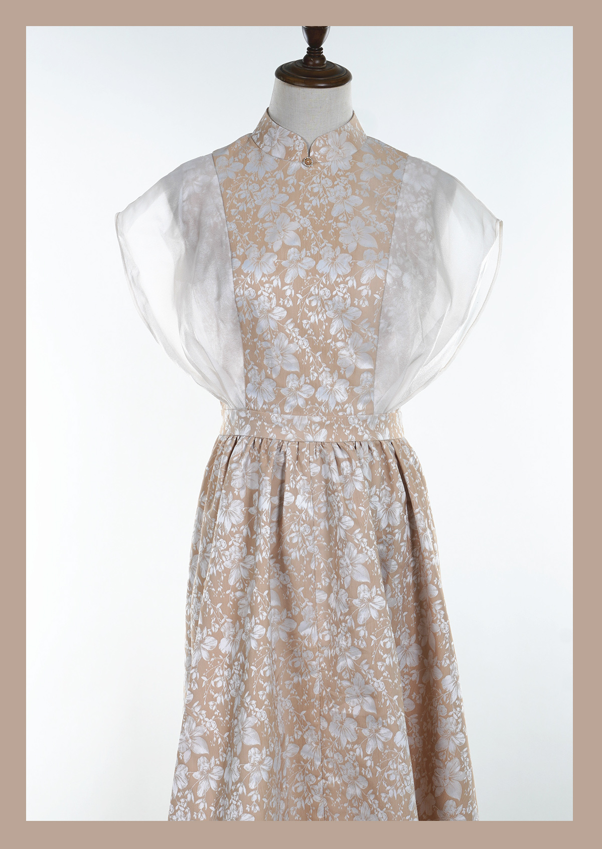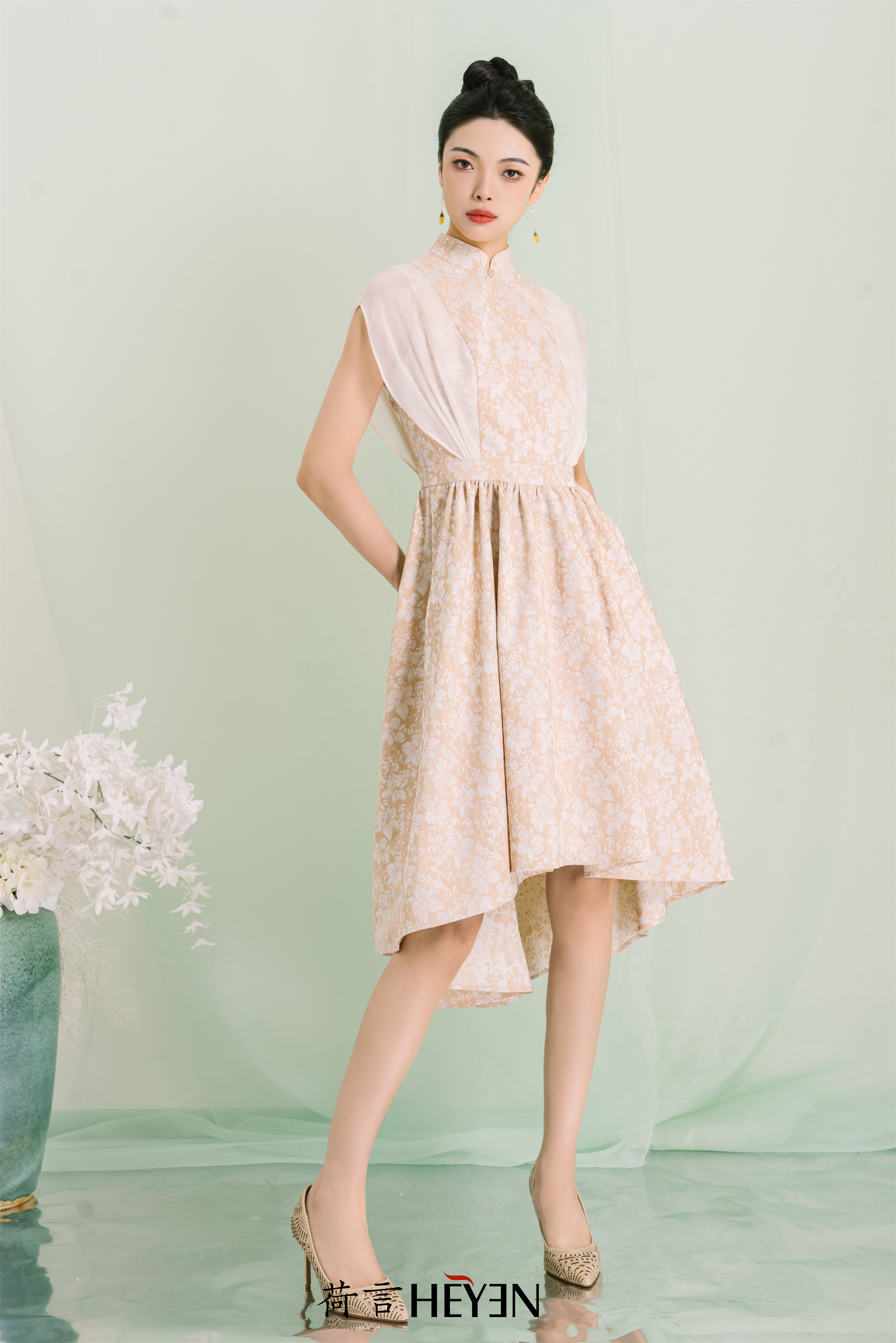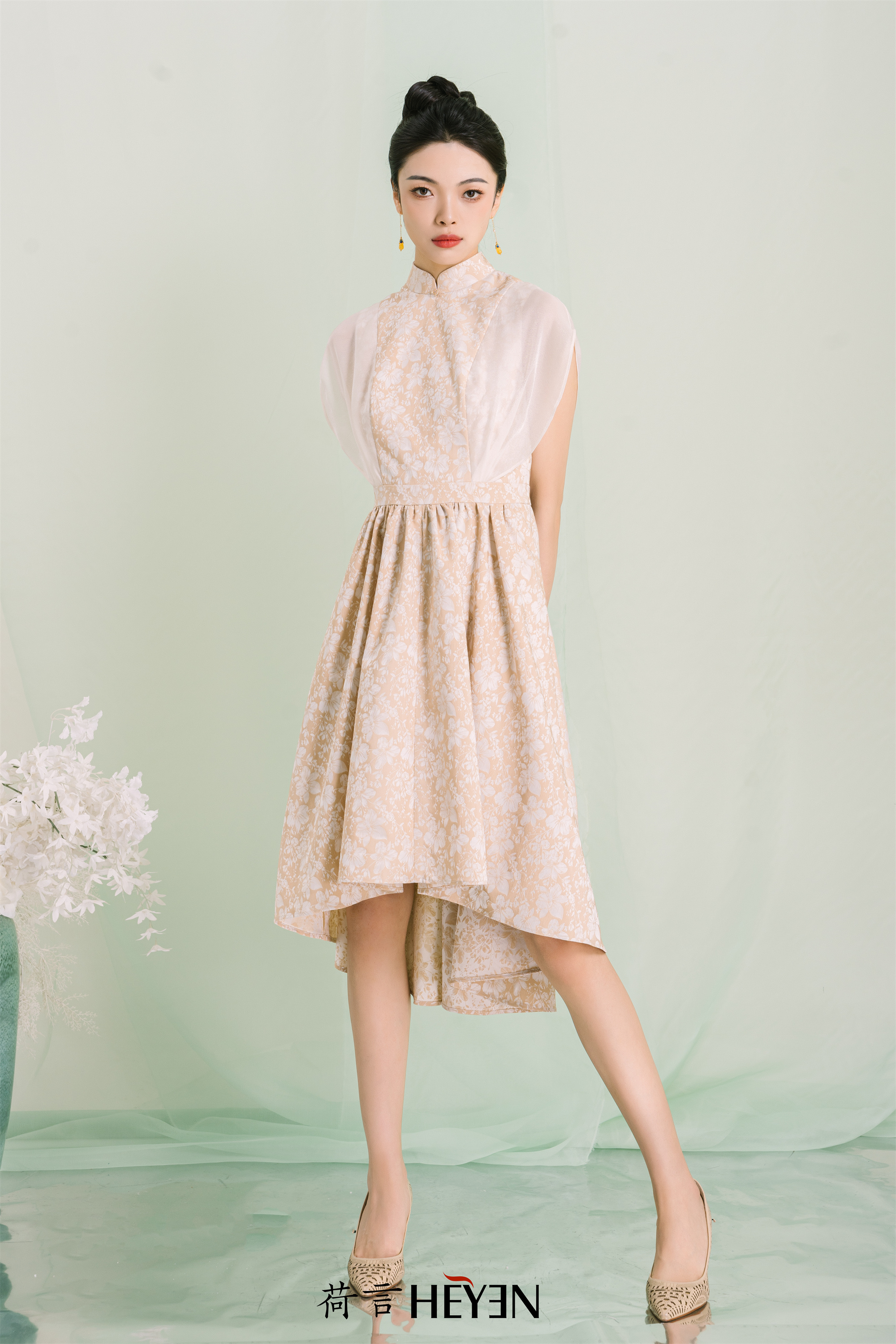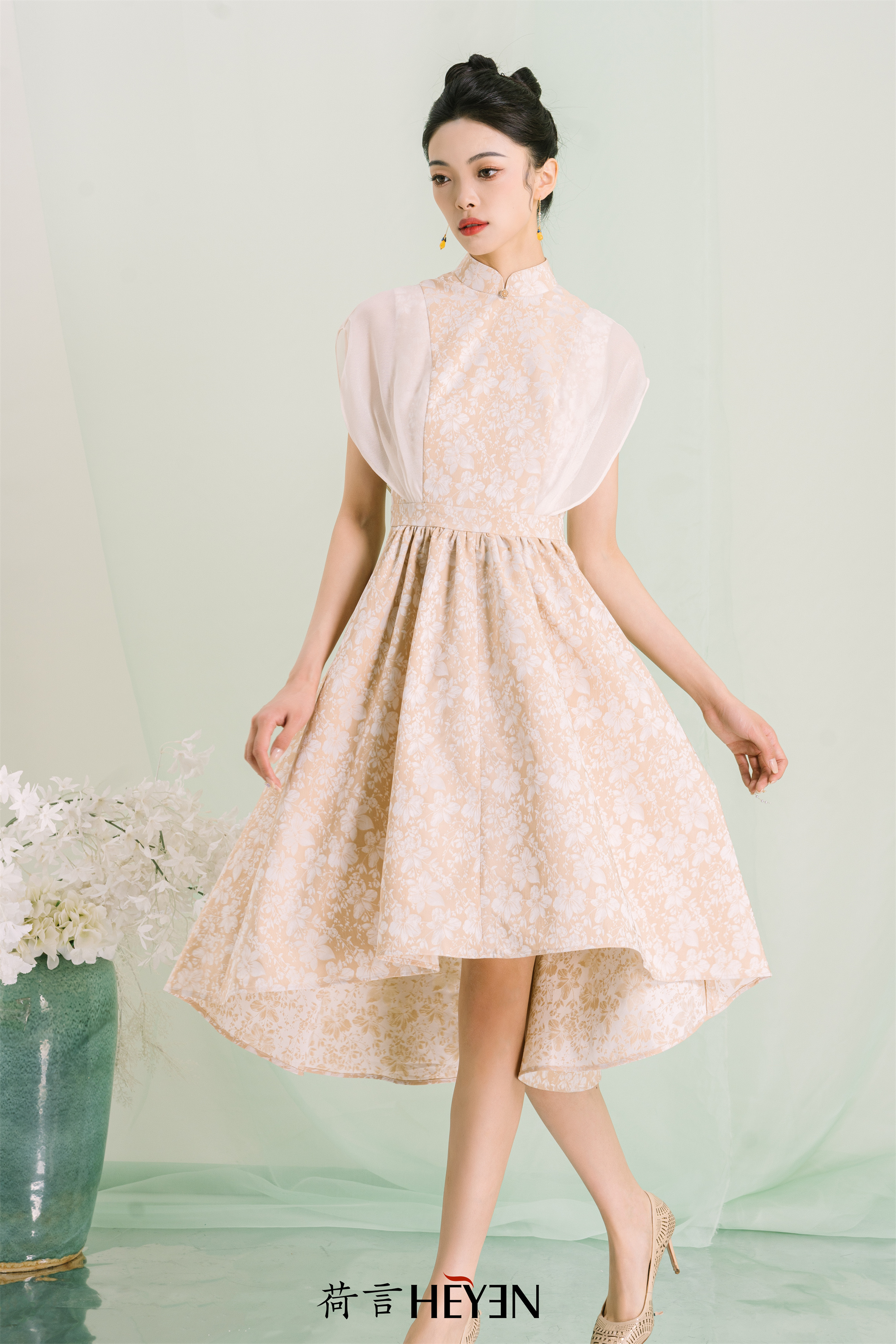 荷言GL 七里香 黄白色提花透明纱袖裙