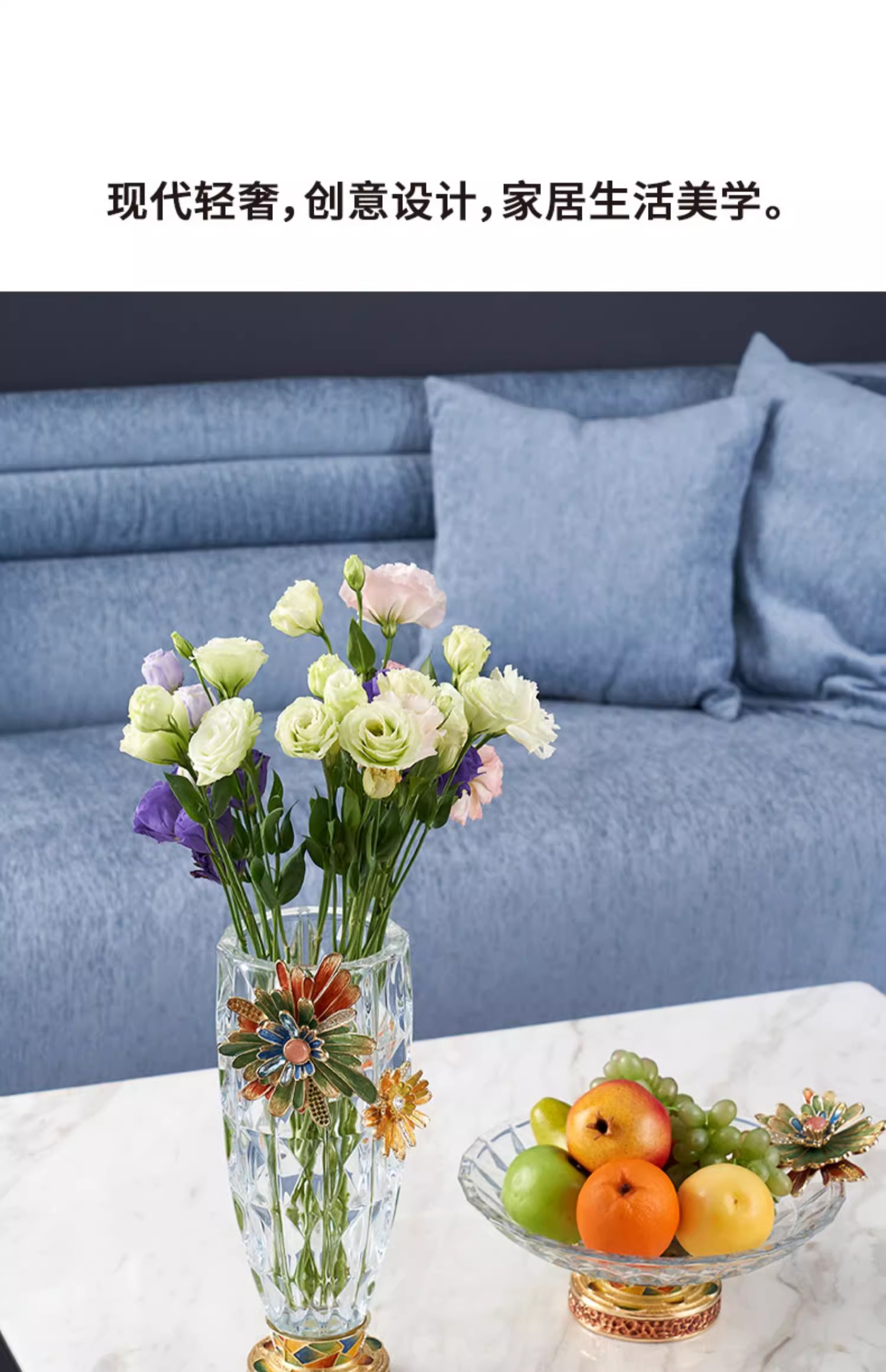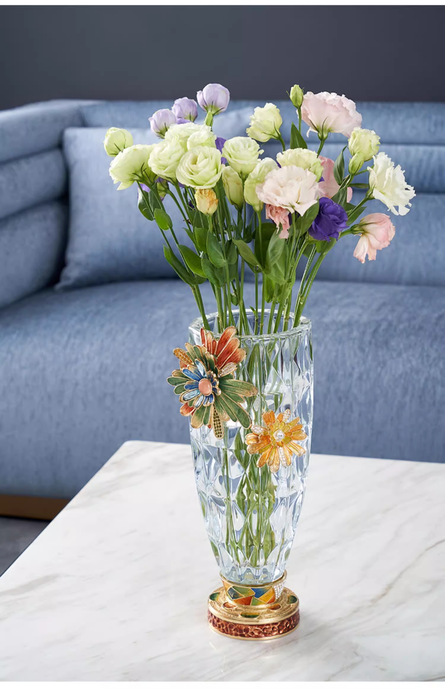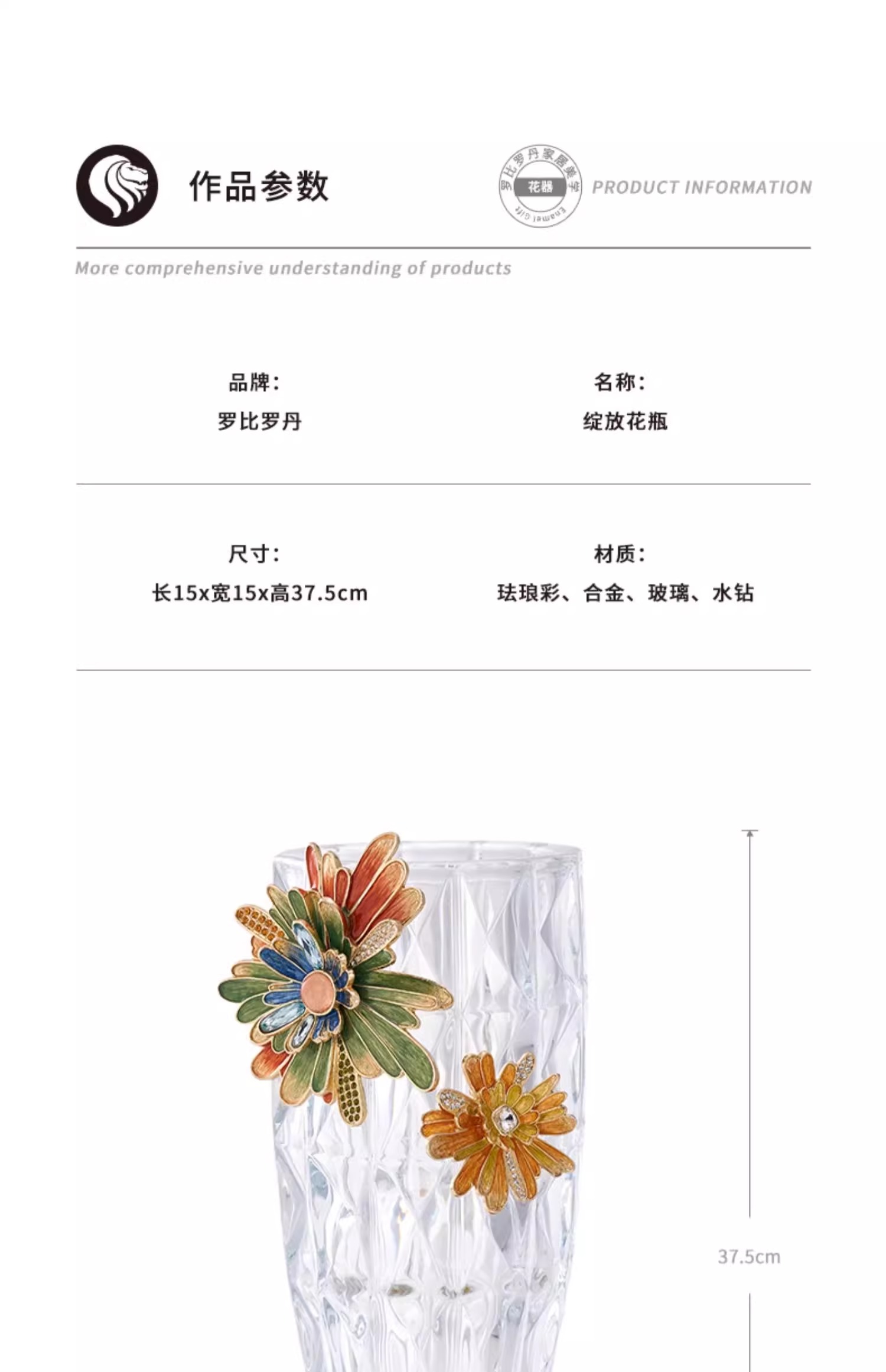 【样品特惠4折,仅1件,无货退款】罗比罗丹绽放花瓶珐琅彩工艺人造水晶玻璃花瓶客厅玄关摆件罗比罗丹花瓶(绽放)