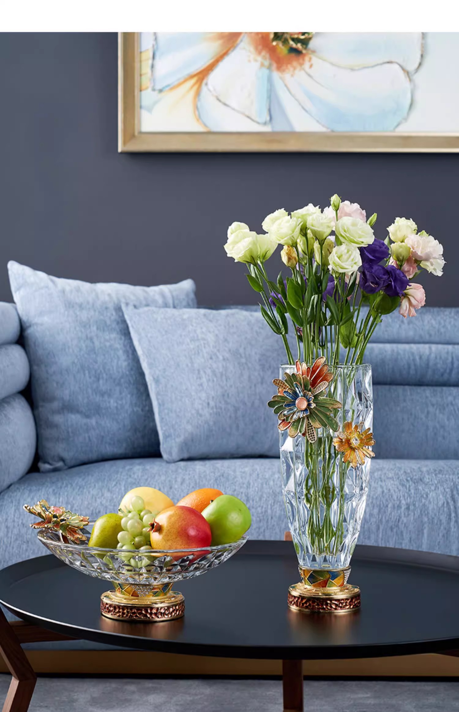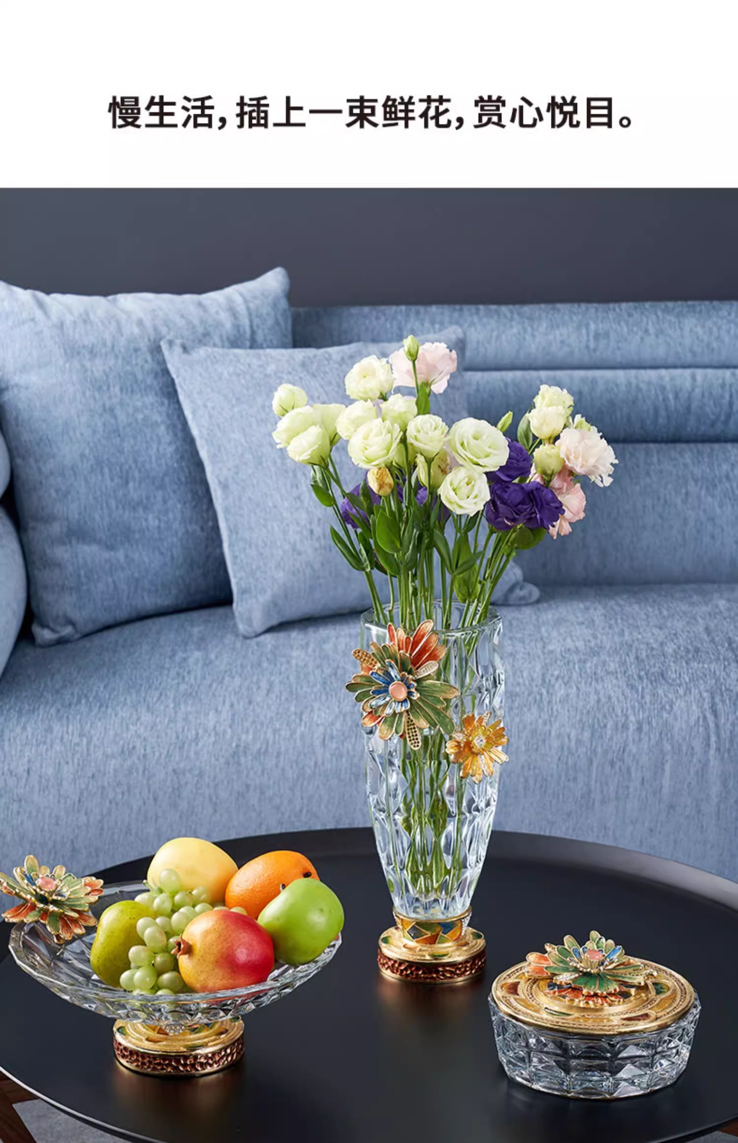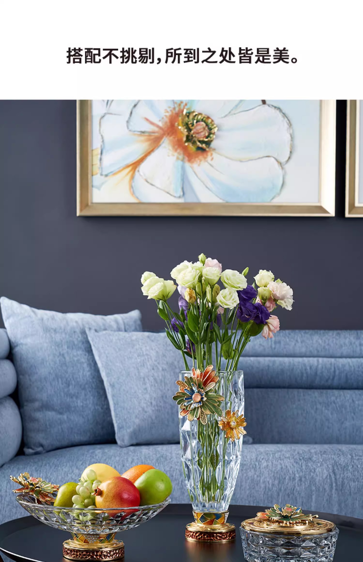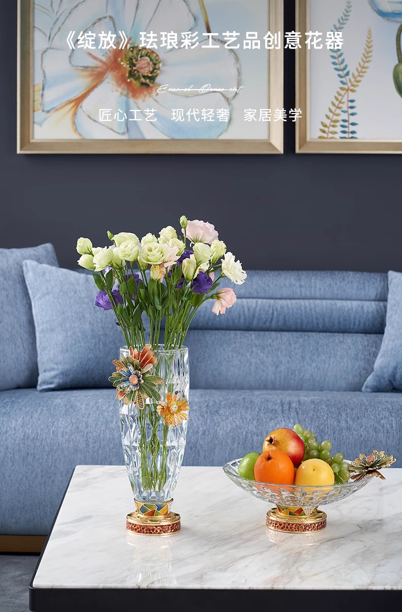 【样品特惠4折,仅1件,无货退款】罗比罗丹绽放花瓶珐琅彩工艺人造水晶玻璃花瓶客厅玄关摆件罗比罗丹花瓶(绽放)