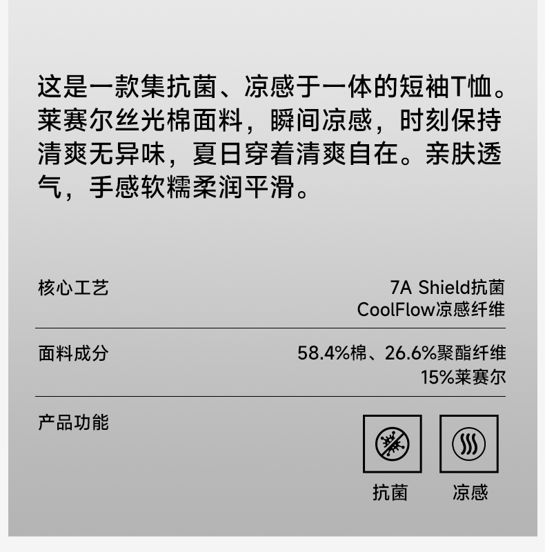 罗宾汉-7A抑菌凉感莱赛尔 丝光棉圆领短袖T恤
