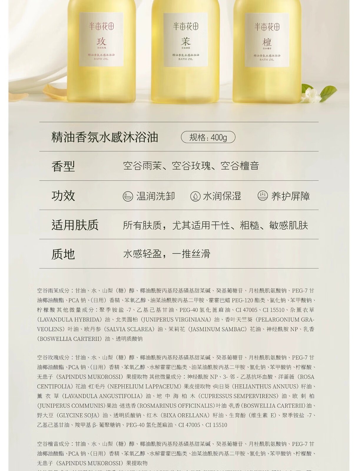 【自营】 半亩花田 精油香氛水感沐浴油 400g/瓶 多规格
