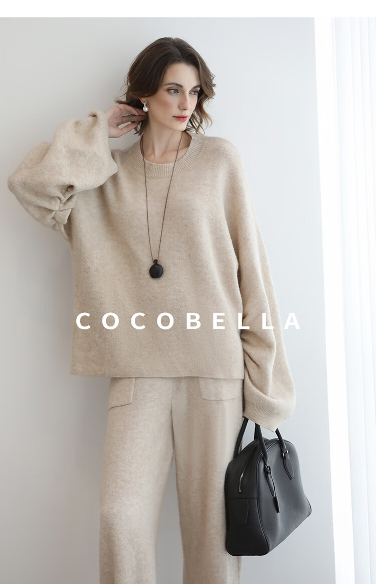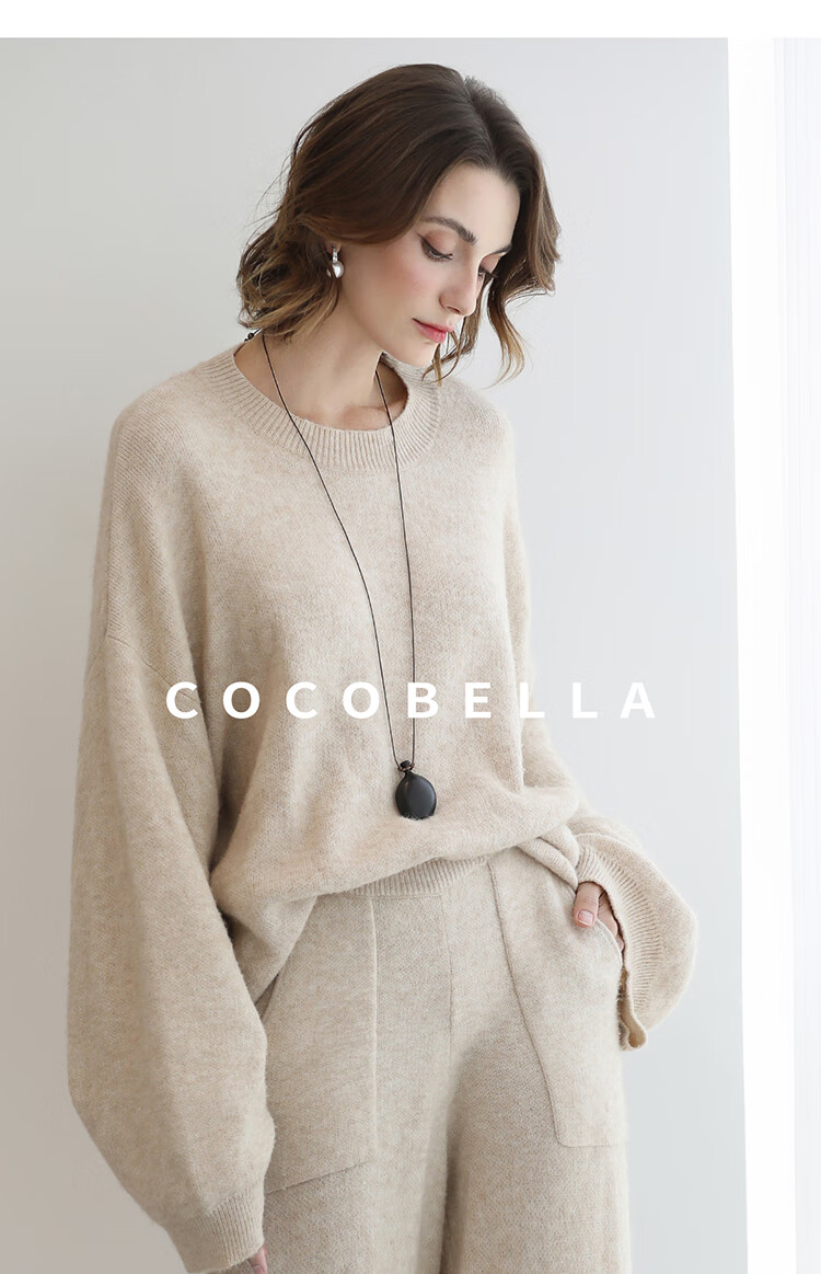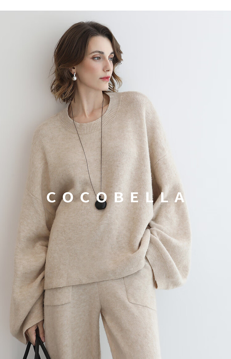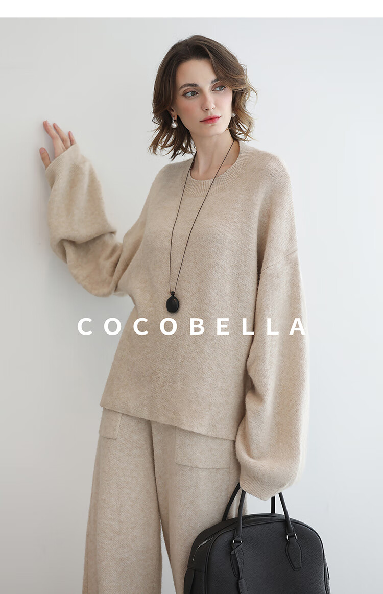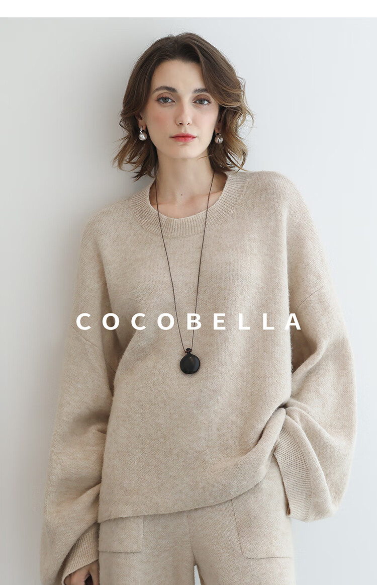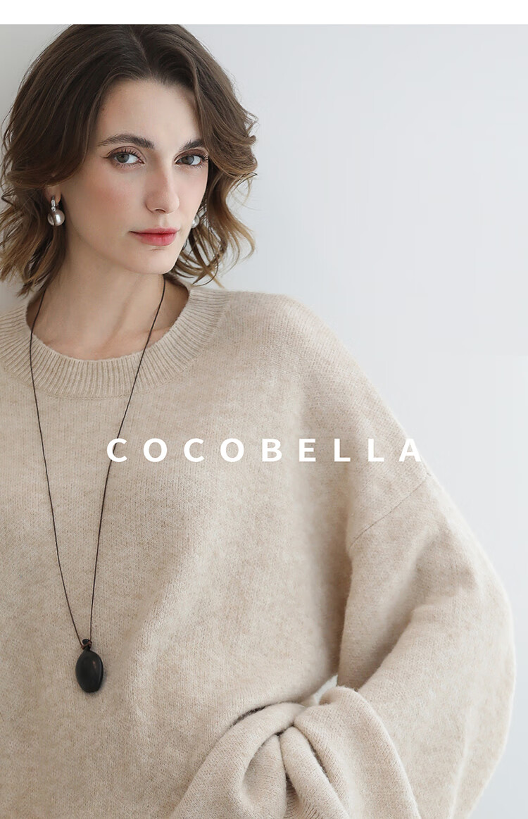 【专属秒杀】COCOBELLA气质抽褶袖特调花纱色毛衣女舒适保暖针织衫MZ7078
