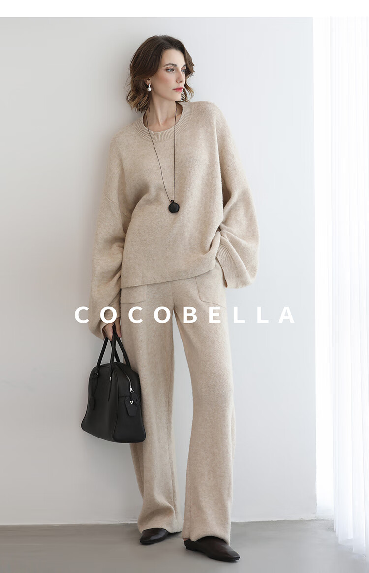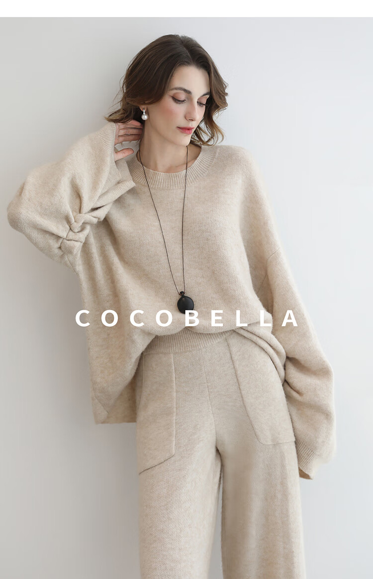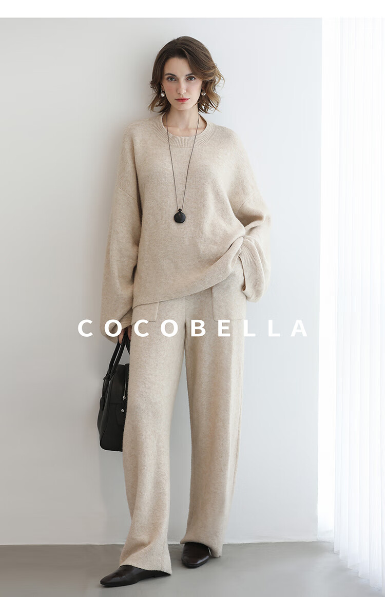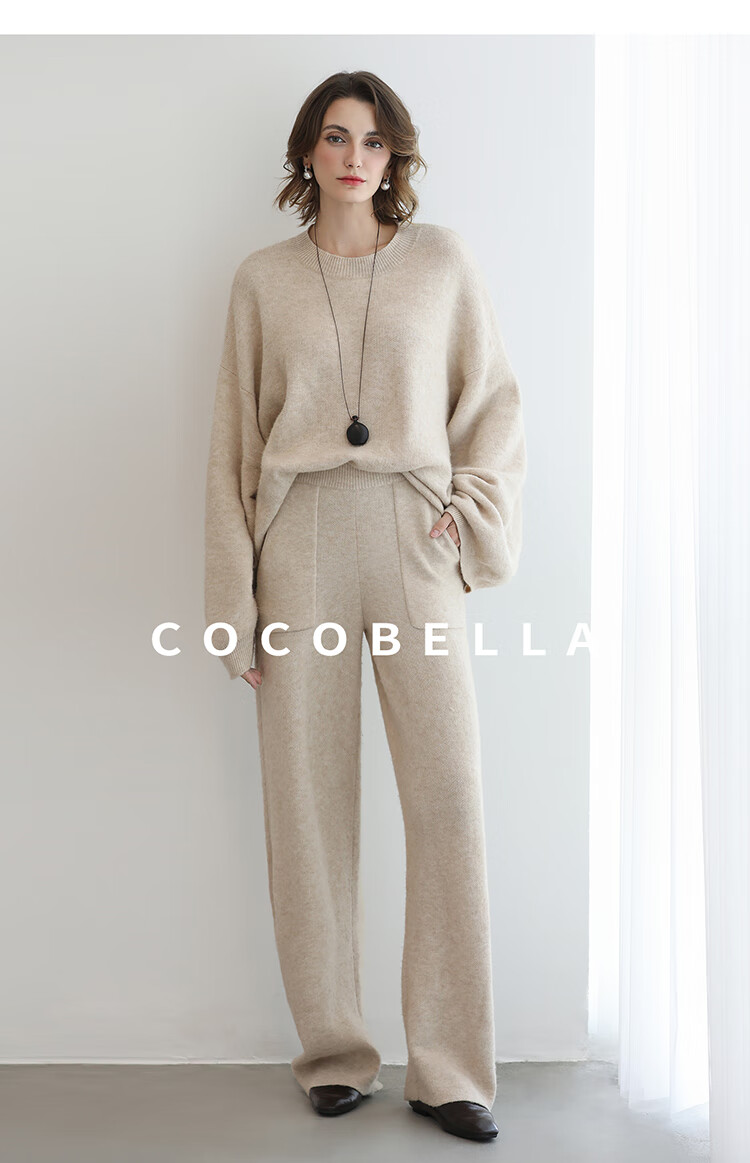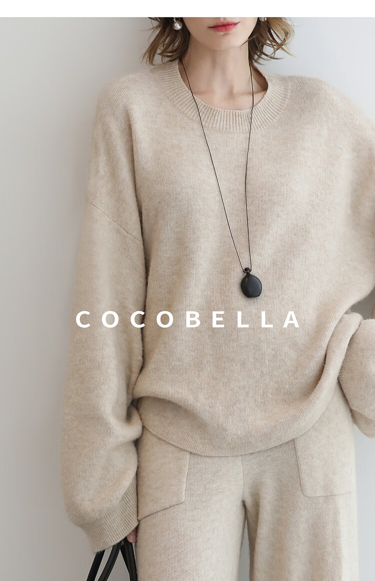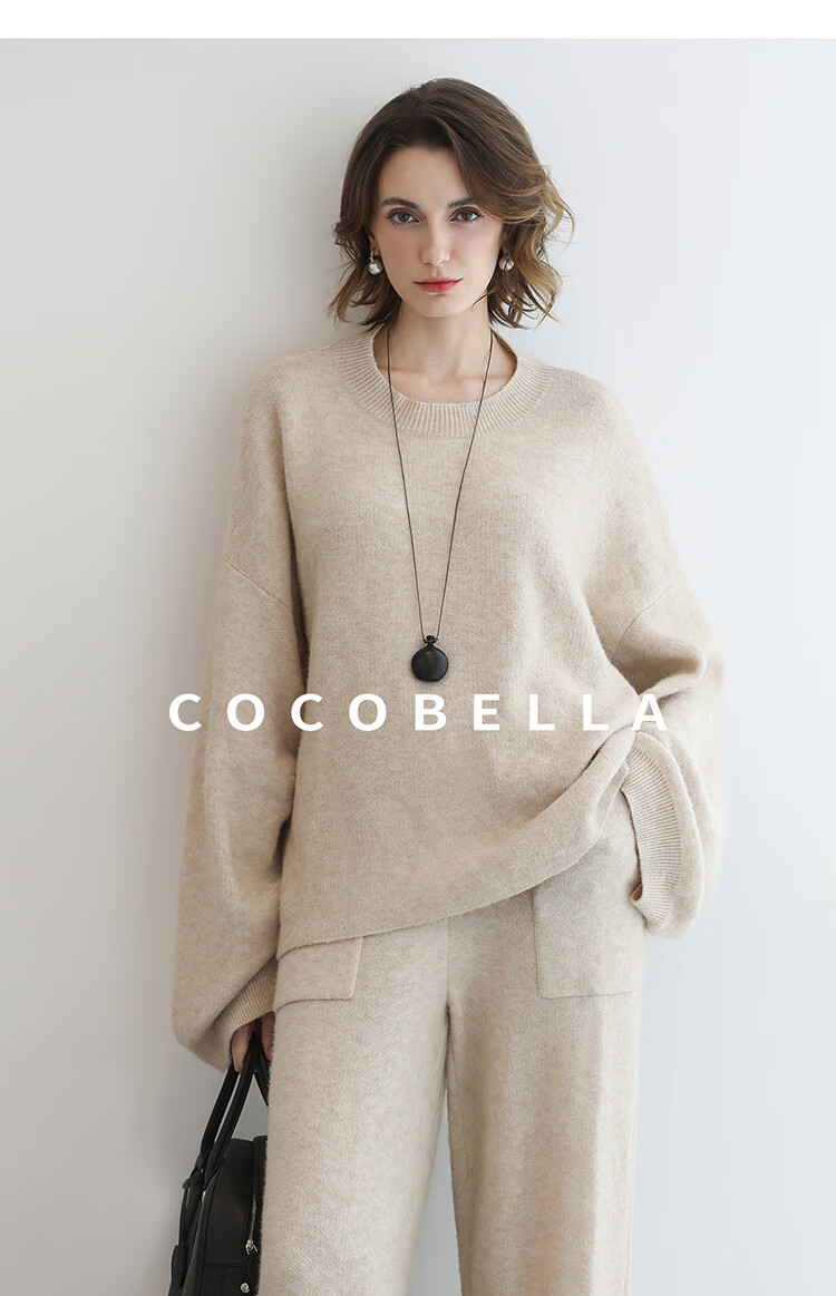 【专属秒杀】COCOBELLA气质抽褶袖特调花纱色毛衣女舒适保暖针织衫MZ7078