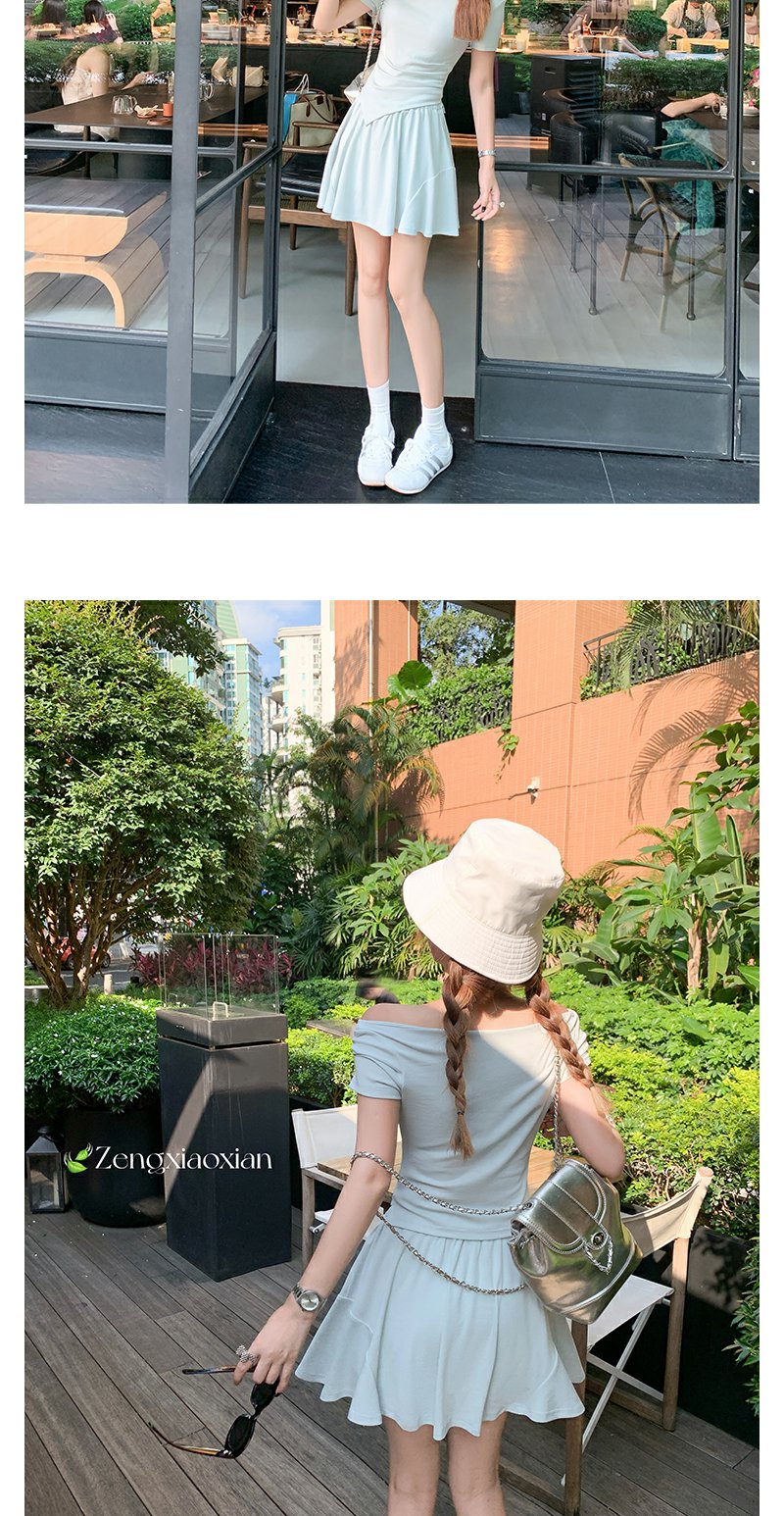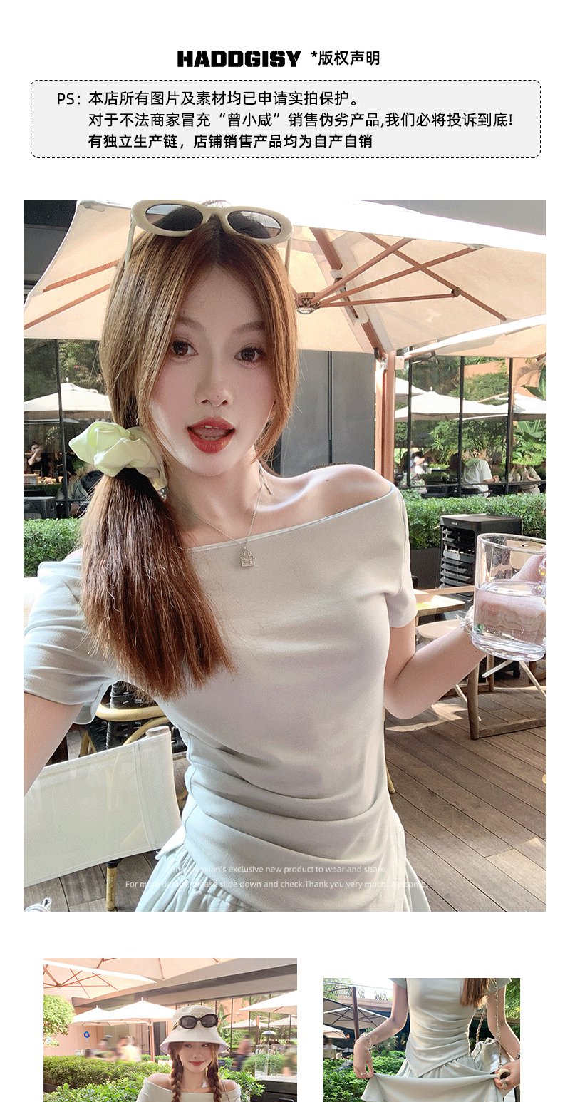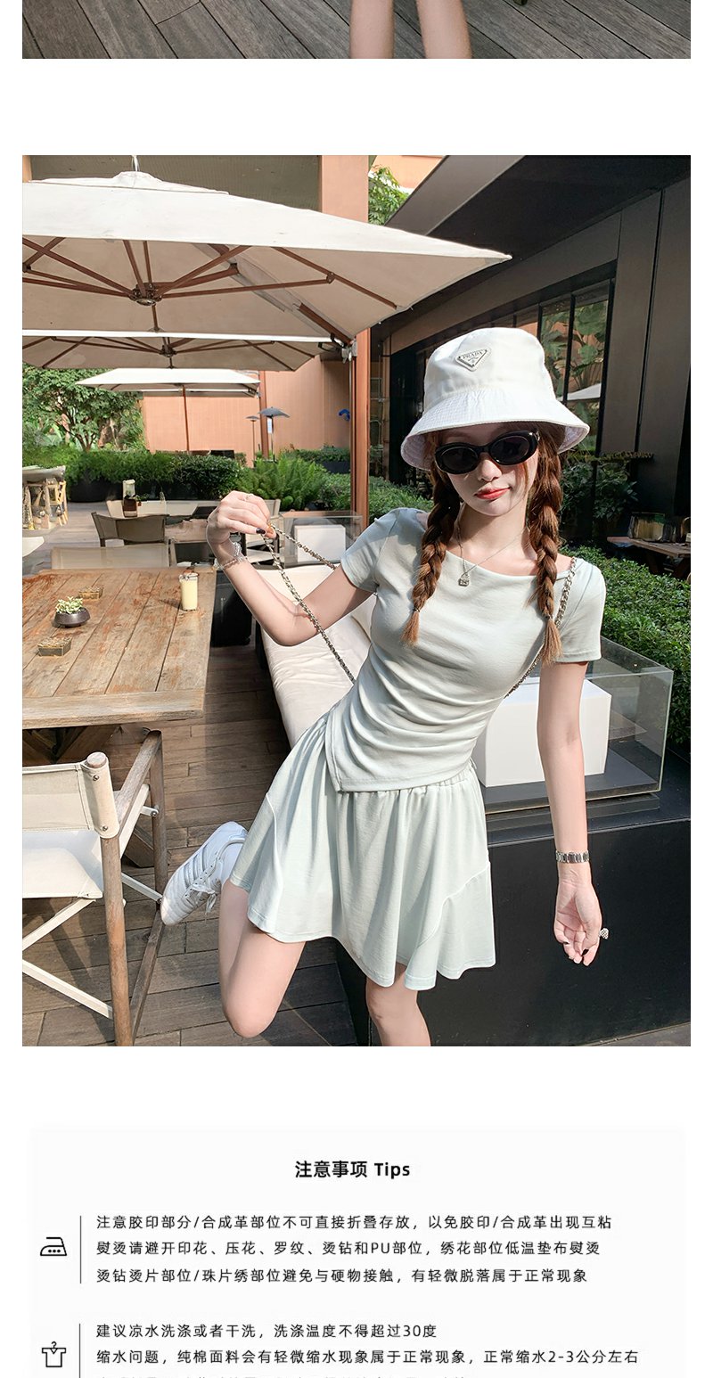 <曾小咸推荐>现货秒杀!微信打折价!斜肩T恤半身短裙两件套 日常189.99/件 立减80 秒杀109.99/件!!