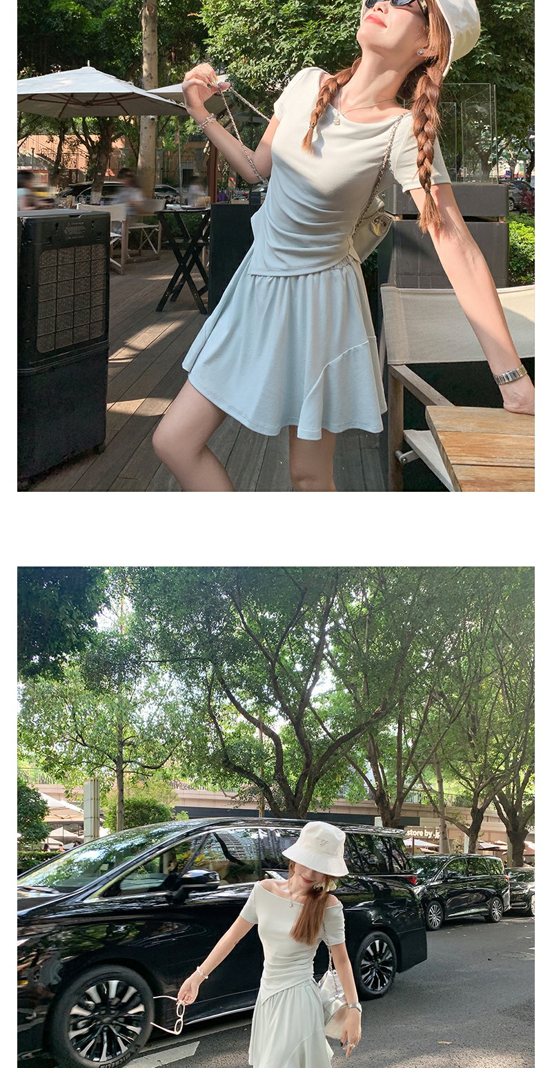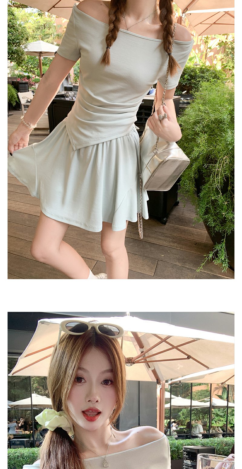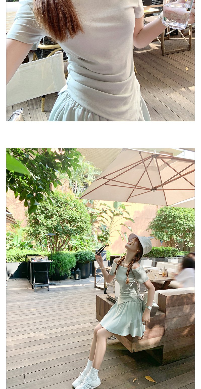<曾小咸推荐>现货秒杀!微信打折价!斜肩T恤半身短裙两件套 日常189.99/件 立减80 秒杀109.99/件!!