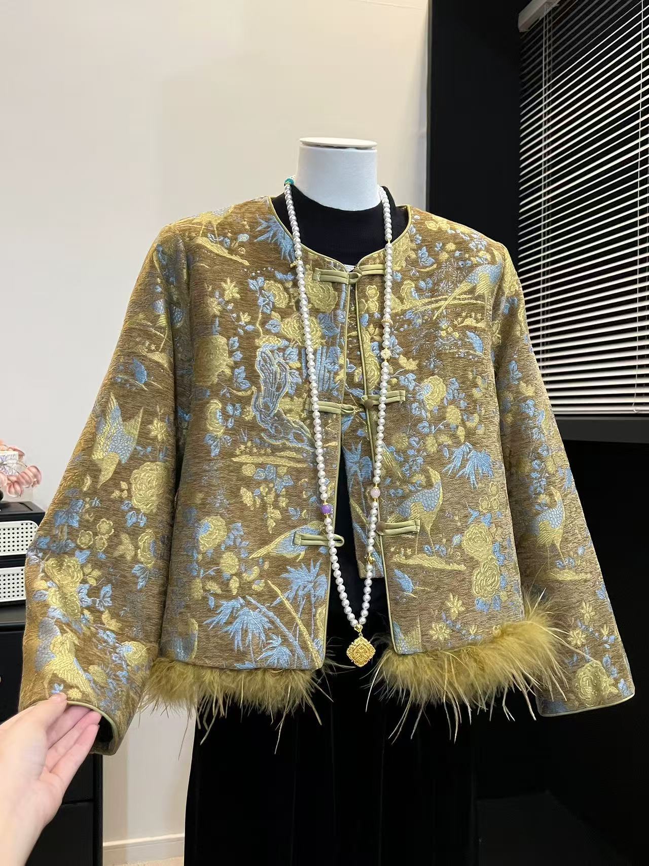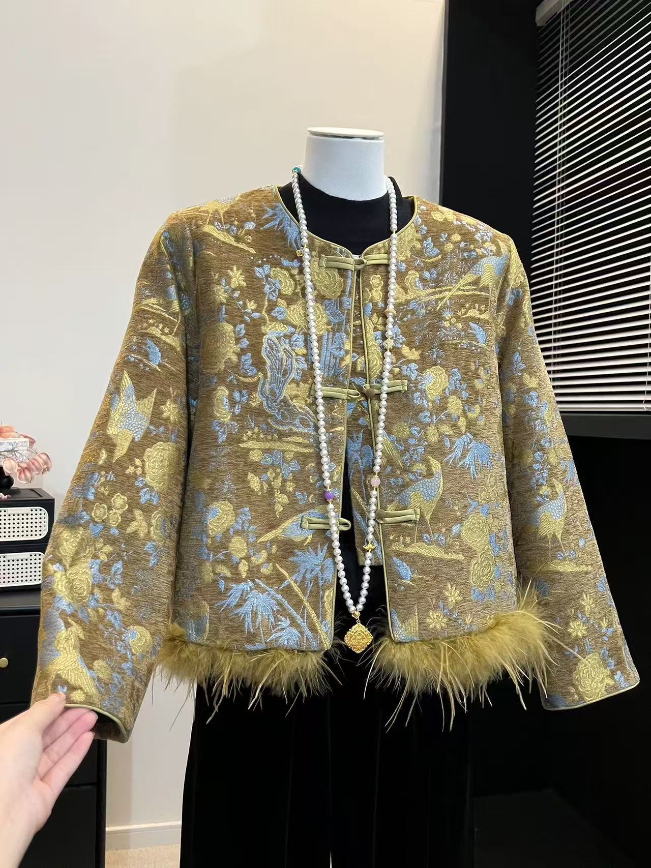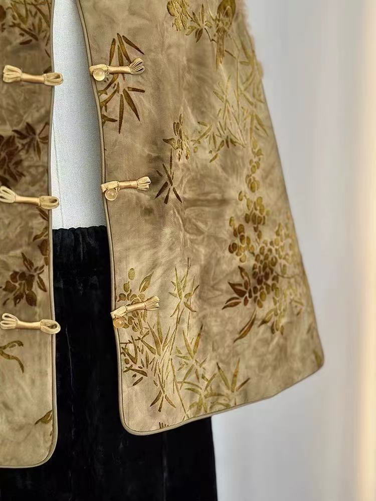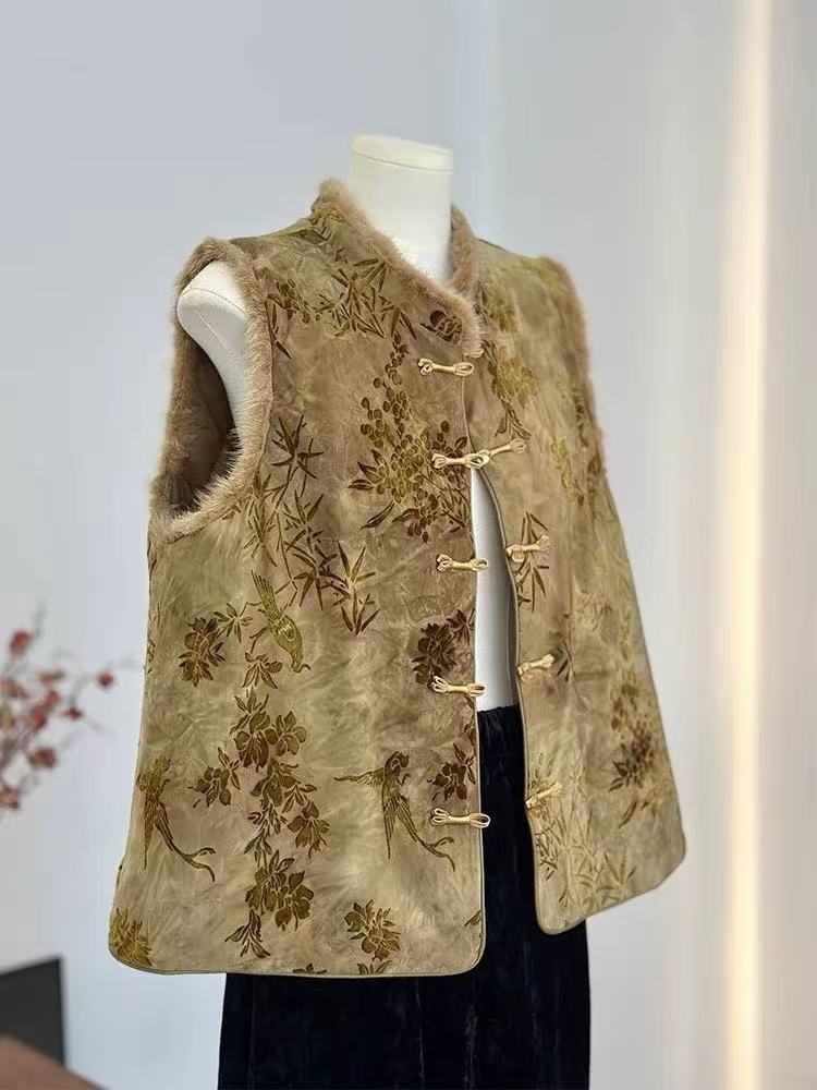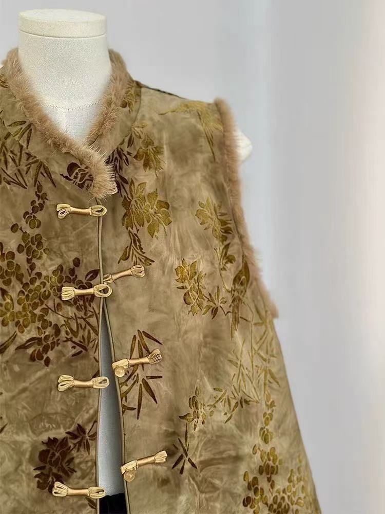 新中式【国潮美衣!高奢马甲】高质感气质毛毛加棉马甲 高奢国风提花女上衣 国风高奢外穿马甲 潮复古提花国风夹棉外套