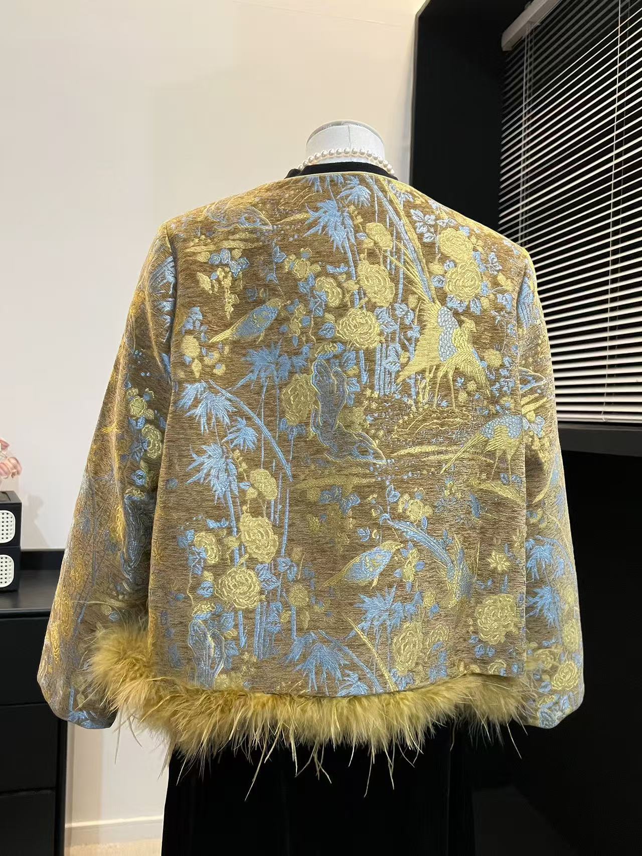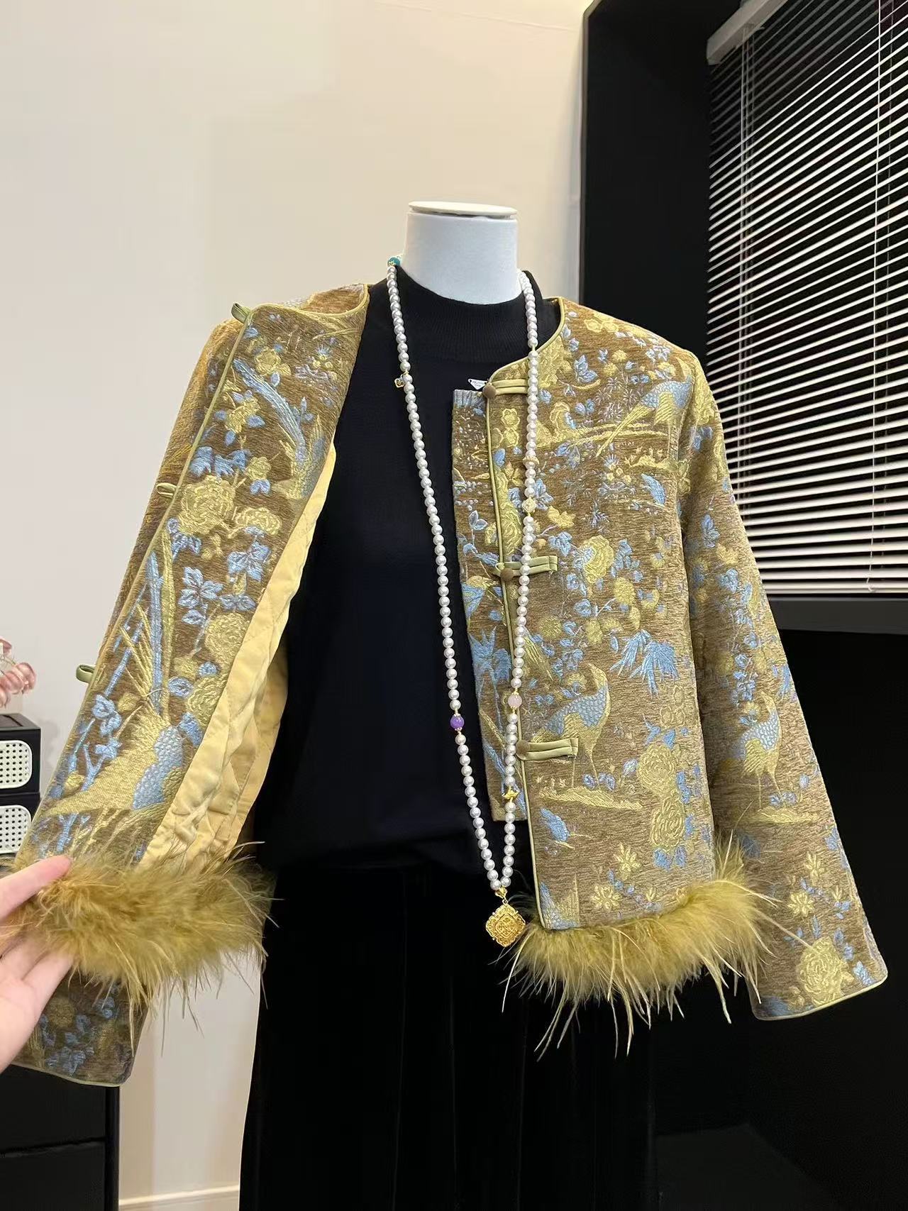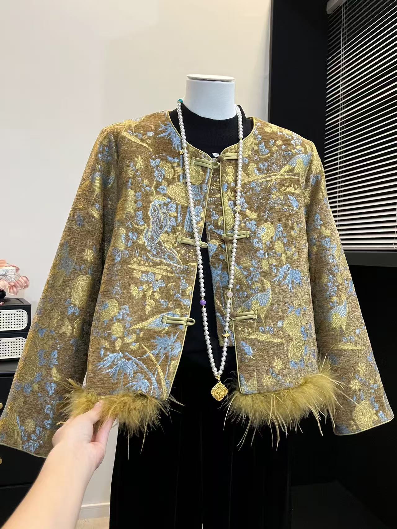 新中式【国潮美衣!高奢马甲】高质感气质毛毛加棉马甲 高奢国风提花女上衣 国风高奢外穿马甲 潮复古提花国风夹棉外套