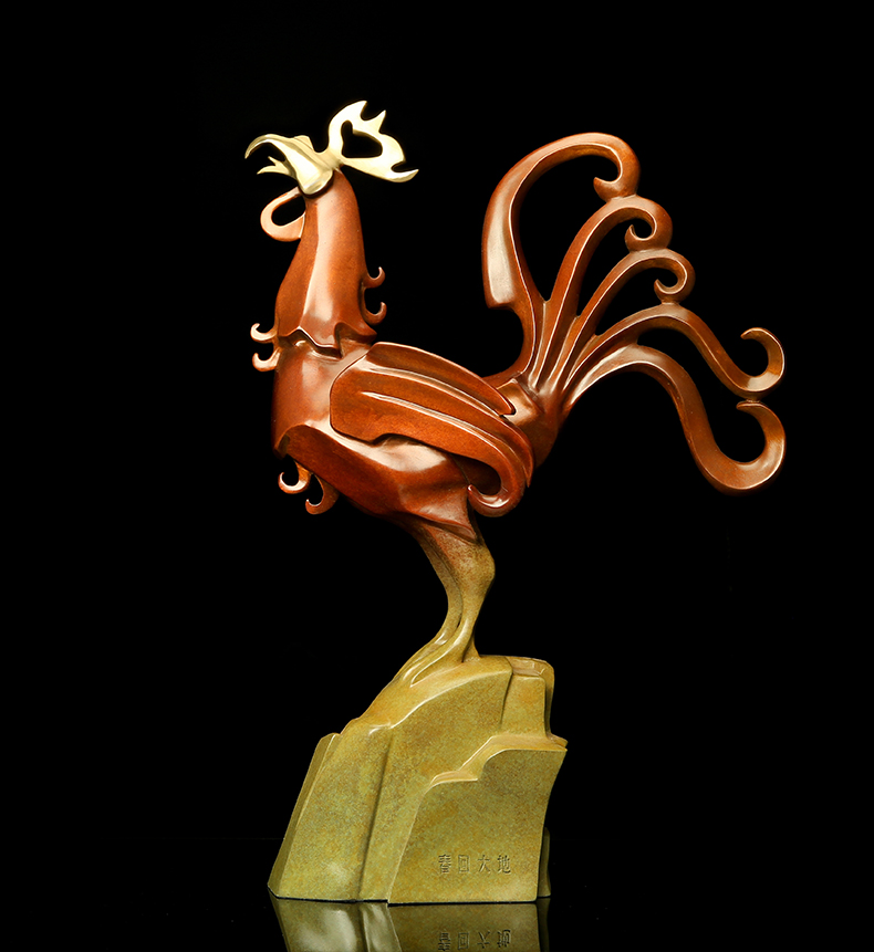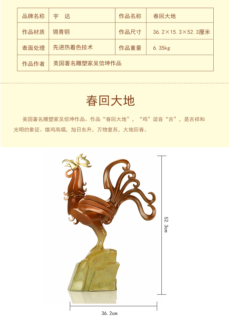 宇达青铜摆件 十二生肖鸡《春回大地》创意装饰 家居工艺摆件 高52.3cm