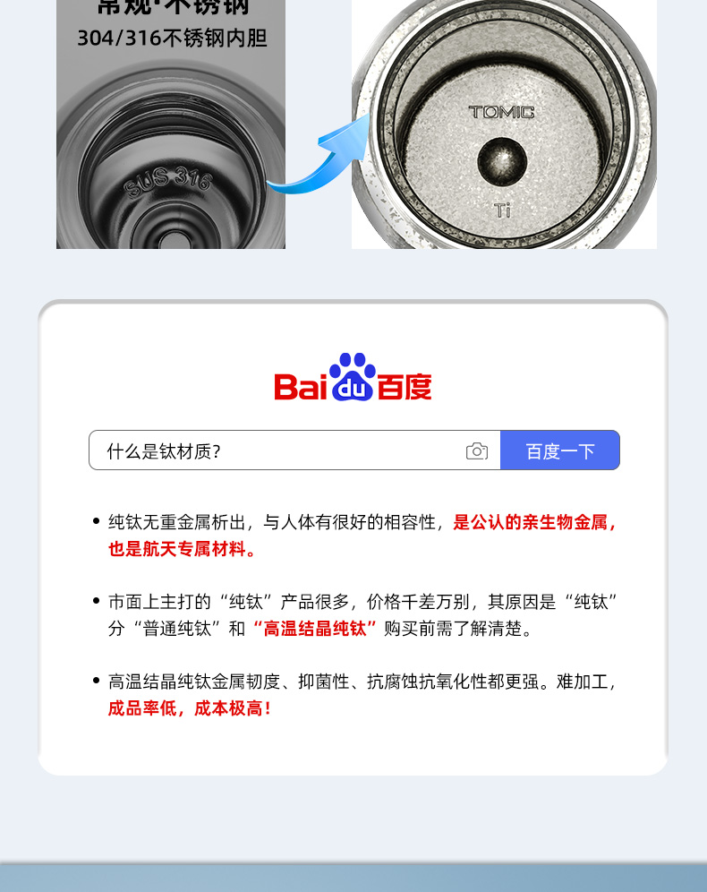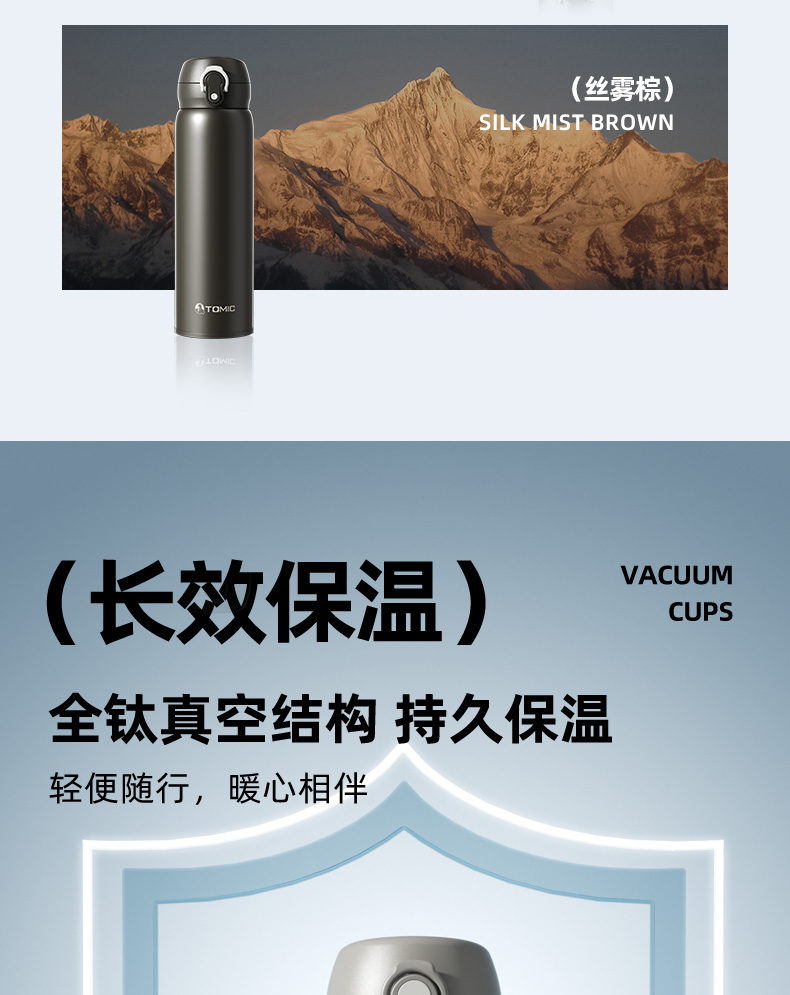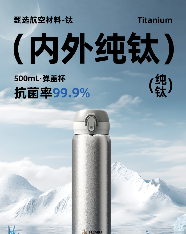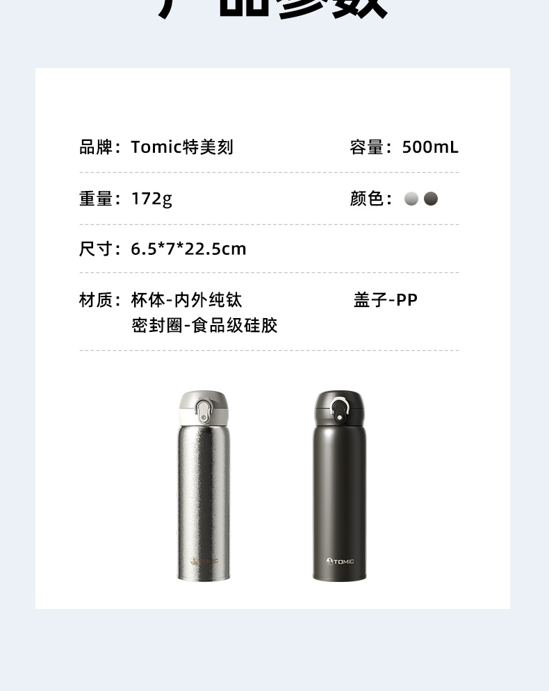 【纯钛轻便保温杯500ml】tomic特美刻纯钛保温杯男款高端商务500ml焖茶杯家用办公泡茶钛杯