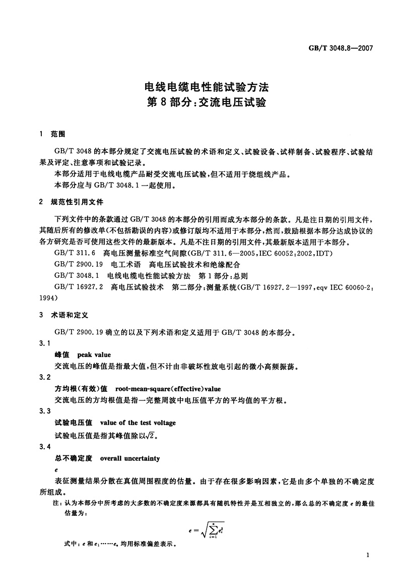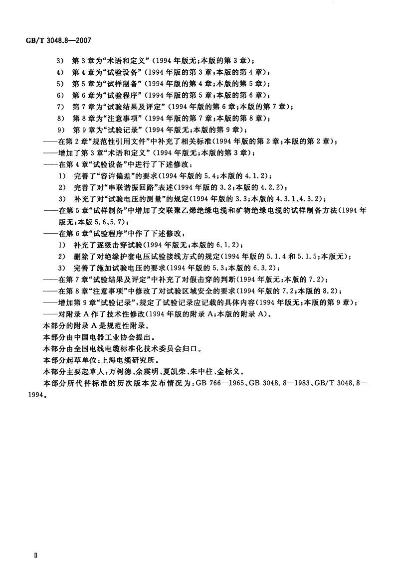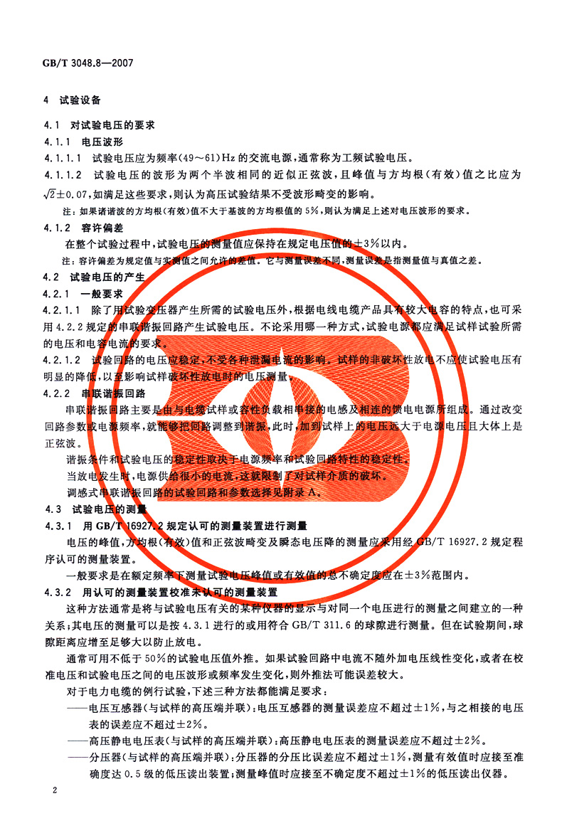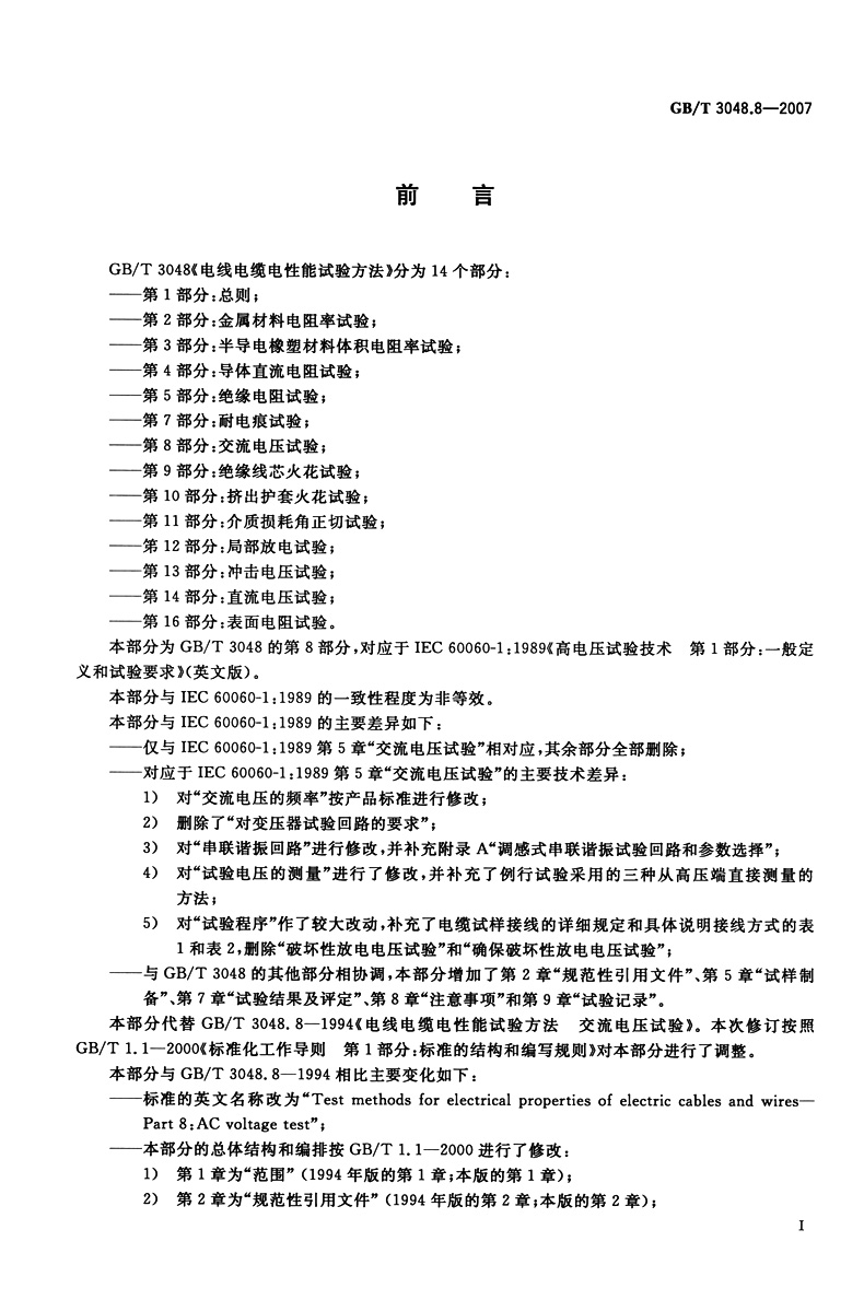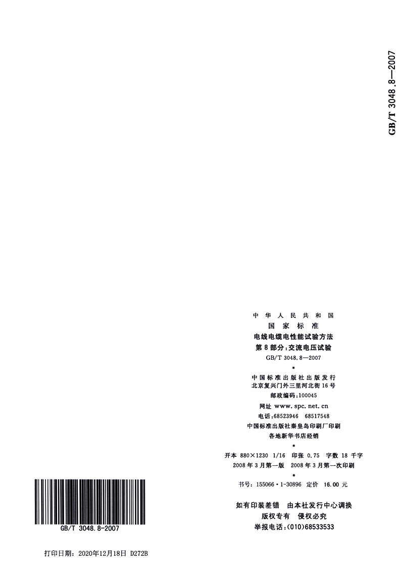 书名:速印不退 GB/T 3048.8-2007电线电缆电性能试验方法 第8部分:交流电压试验