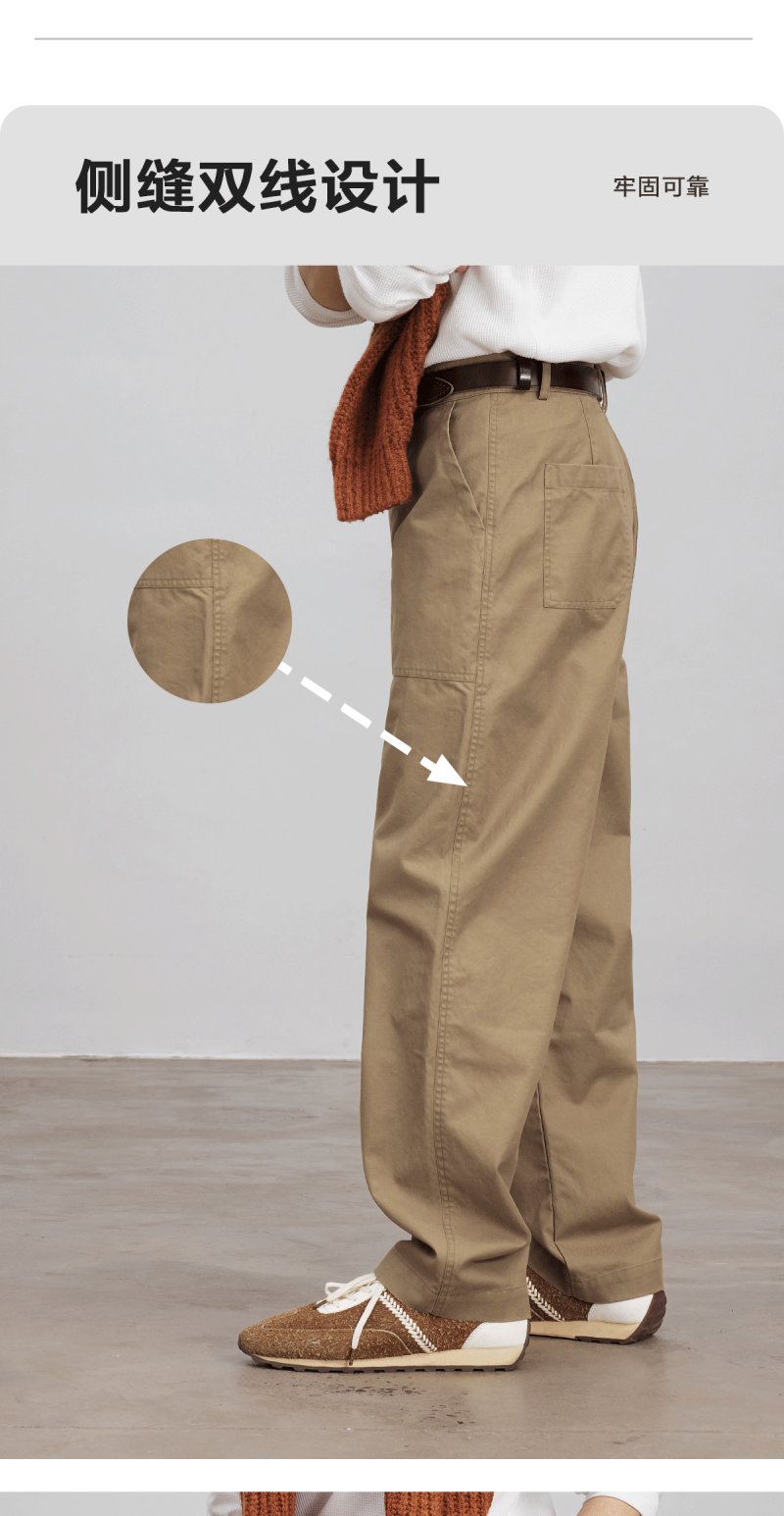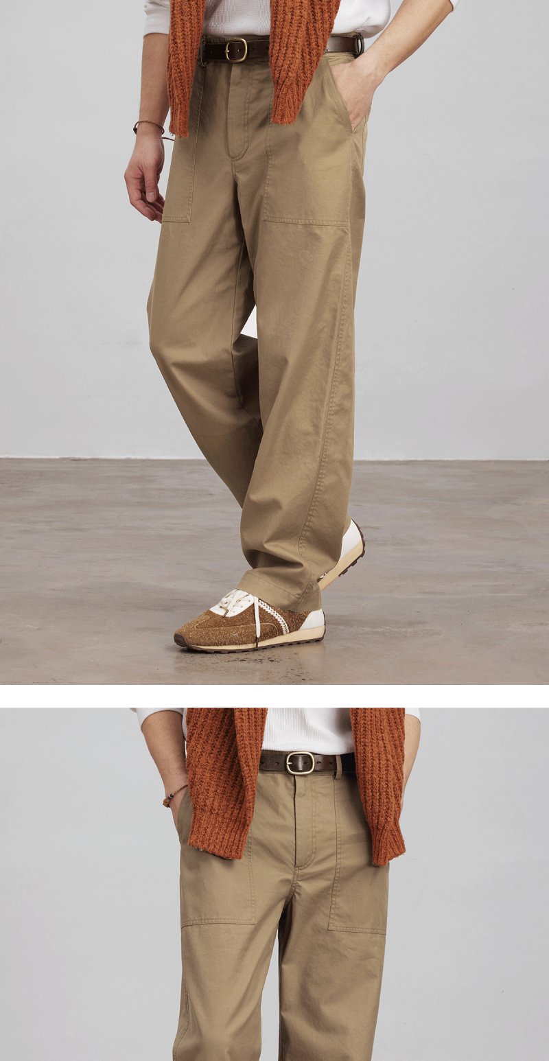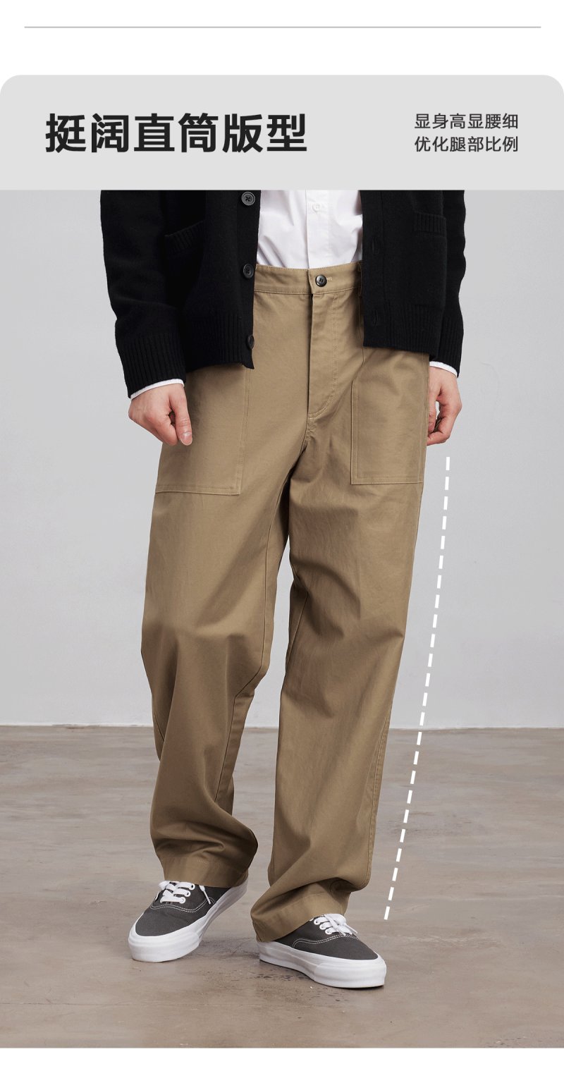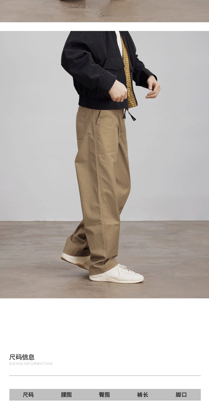 absorbrelease ab白噪卡其色纯棉工装裤男直筒长裤休闲裤男士裤子