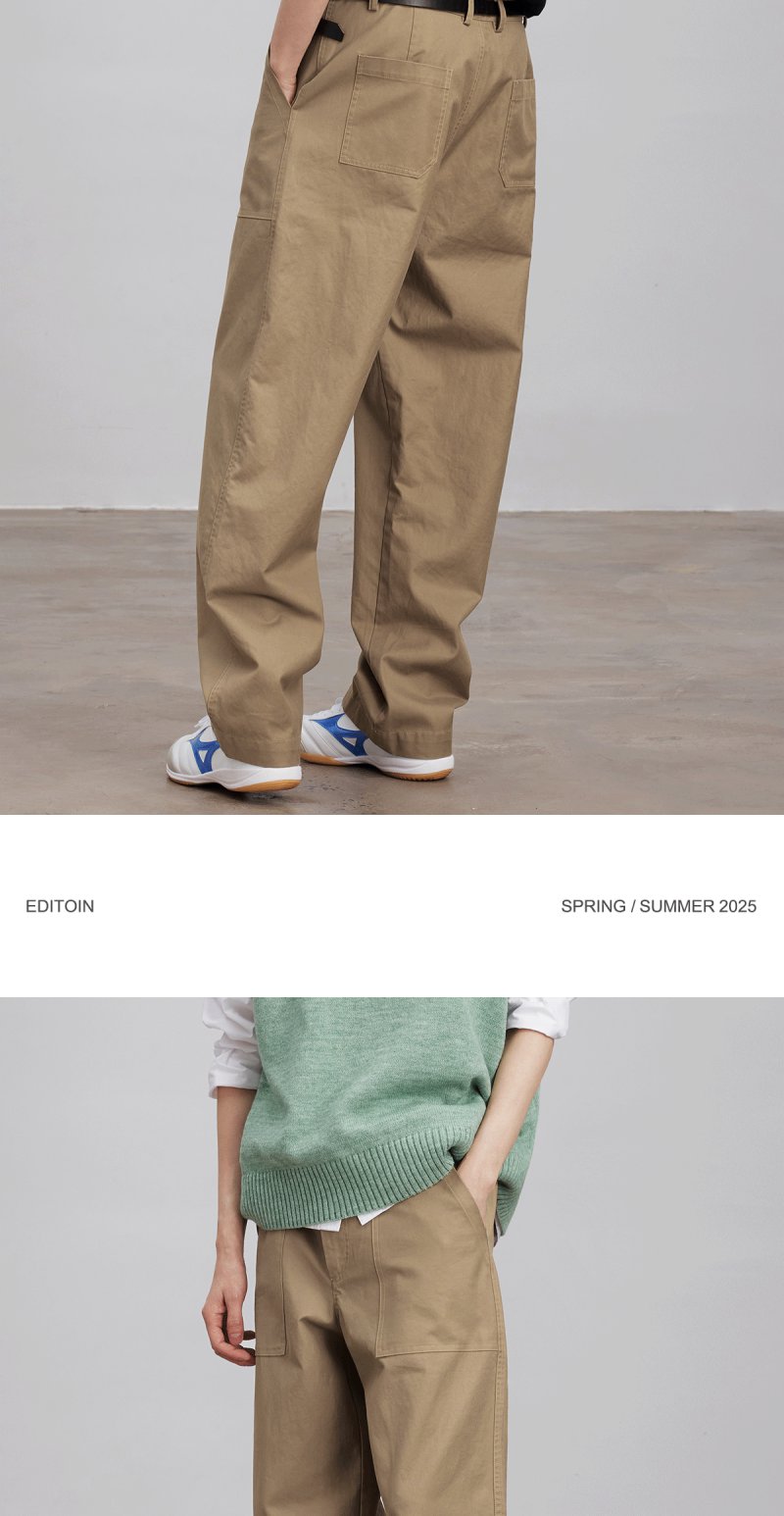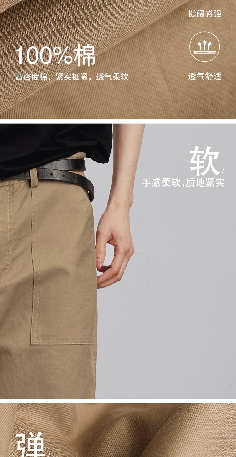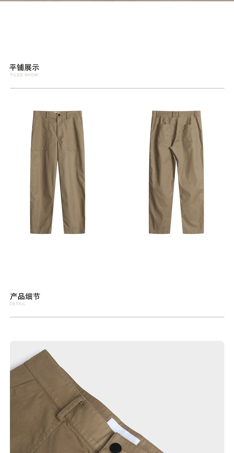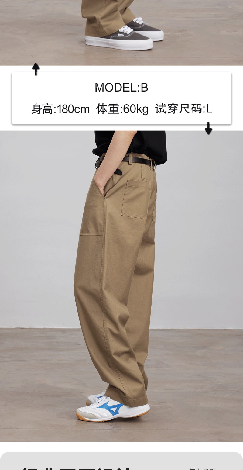 absorbrelease ab白噪卡其色纯棉工装裤男直筒长裤休闲裤男士裤子