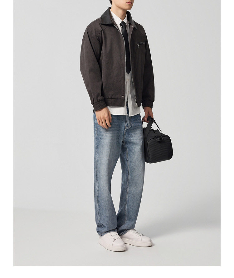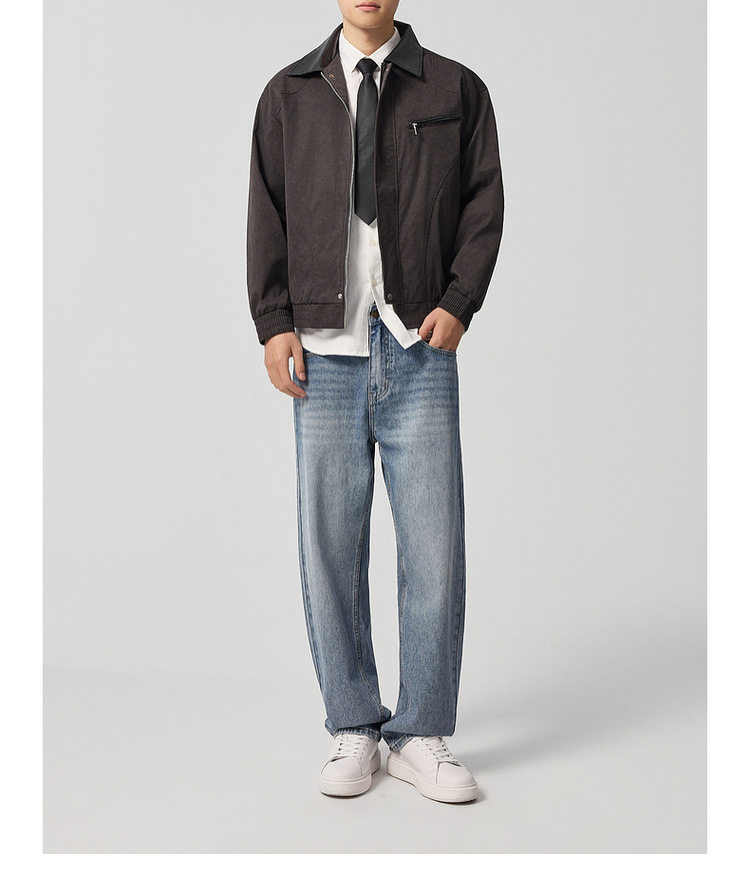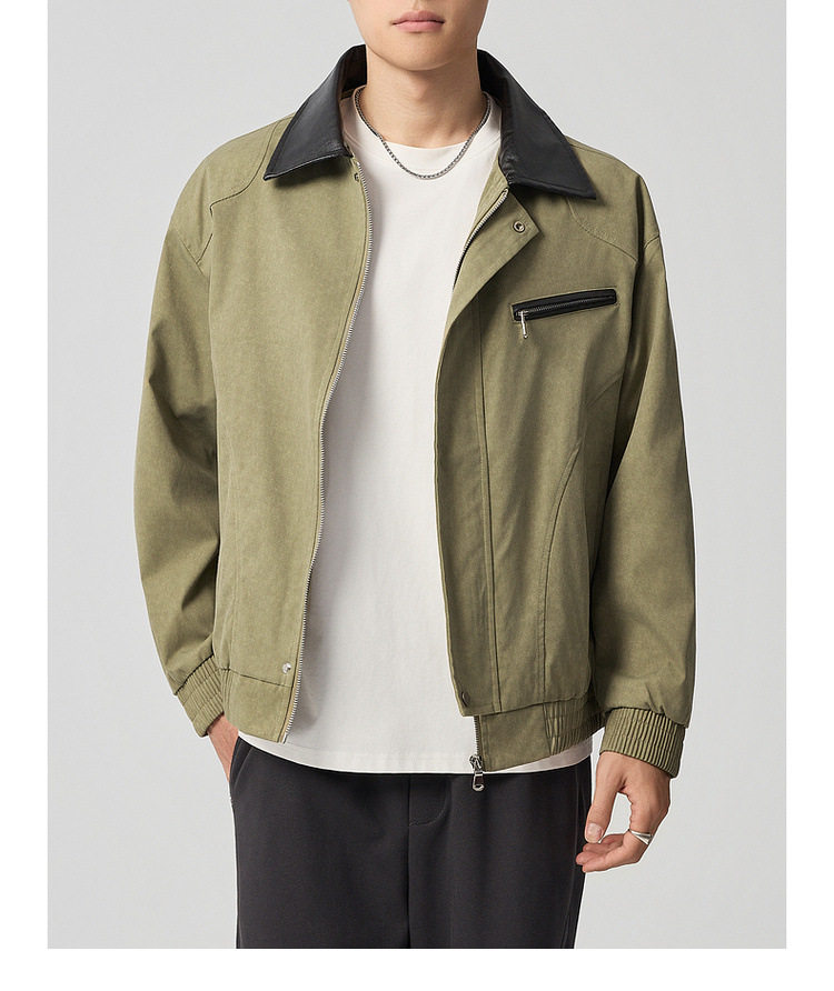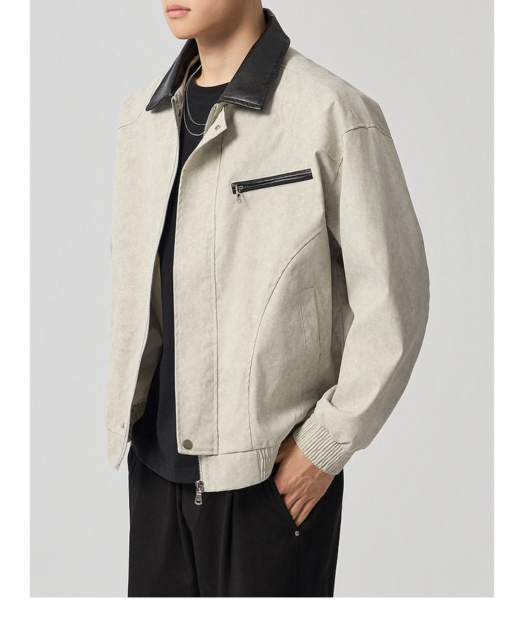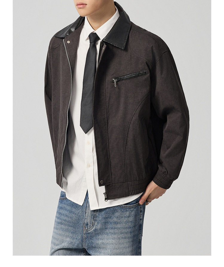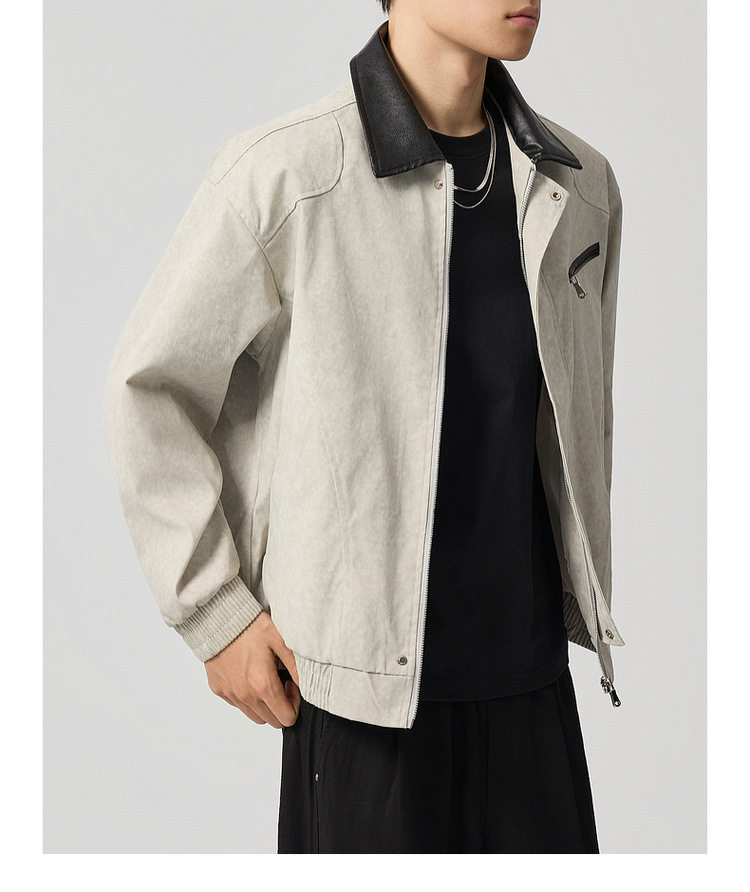 墨麦客巴恩风扎染做旧外套男2026春季新款撞色宽松男士夹克81386.