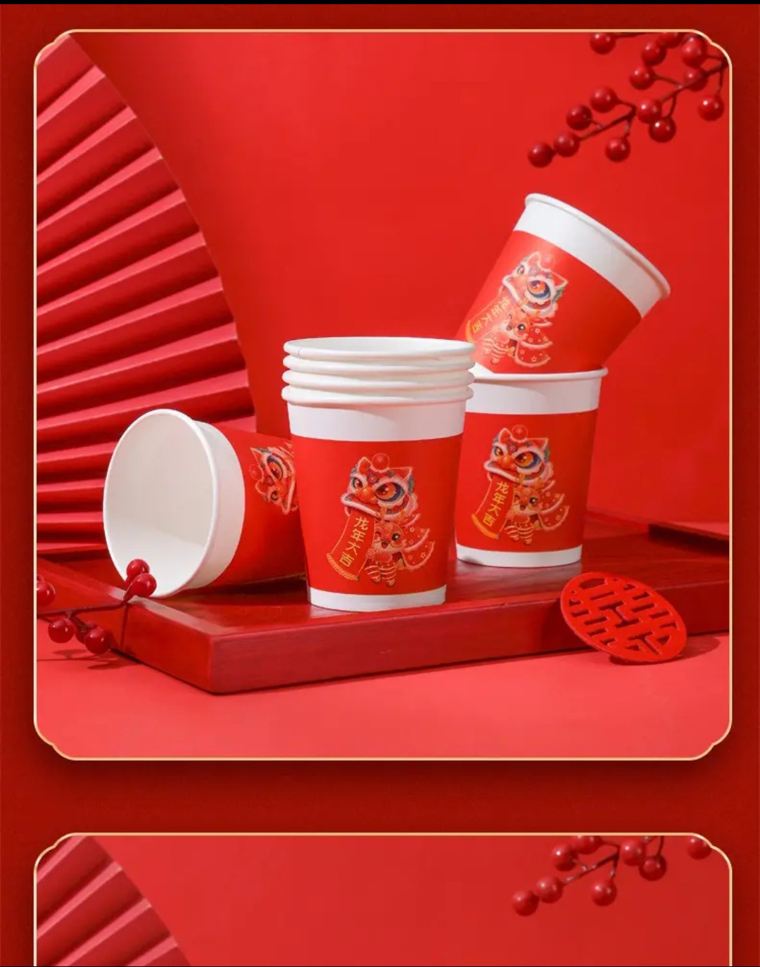 19.9/100只【迎春接福气❗️国潮纸杯】新年蛇年贺岁,一次性环保家用加厚纸杯,国潮蛇年大纸杯,好礼新年礼盒年货礼盒