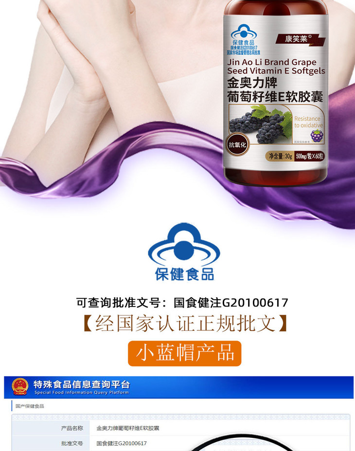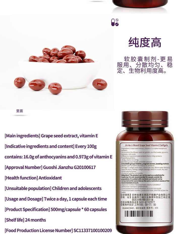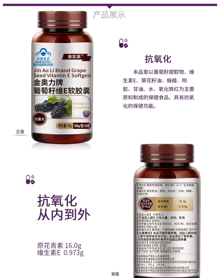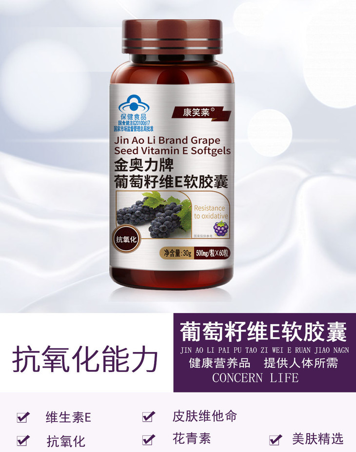葡萄籽小棕瓶 维生素e 软胶囊opc原花青素 葡萄籽提取物 抗氧化 健身恢复