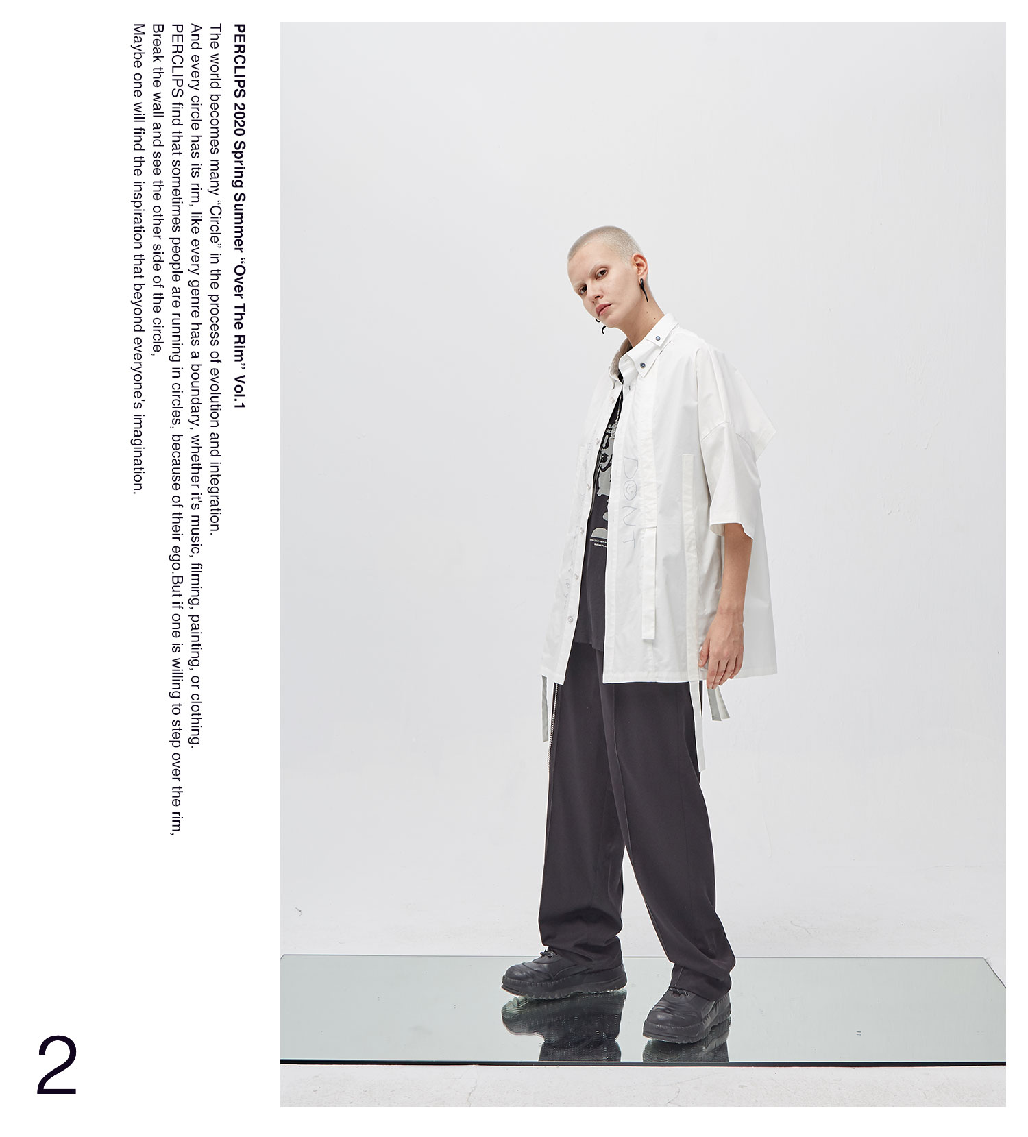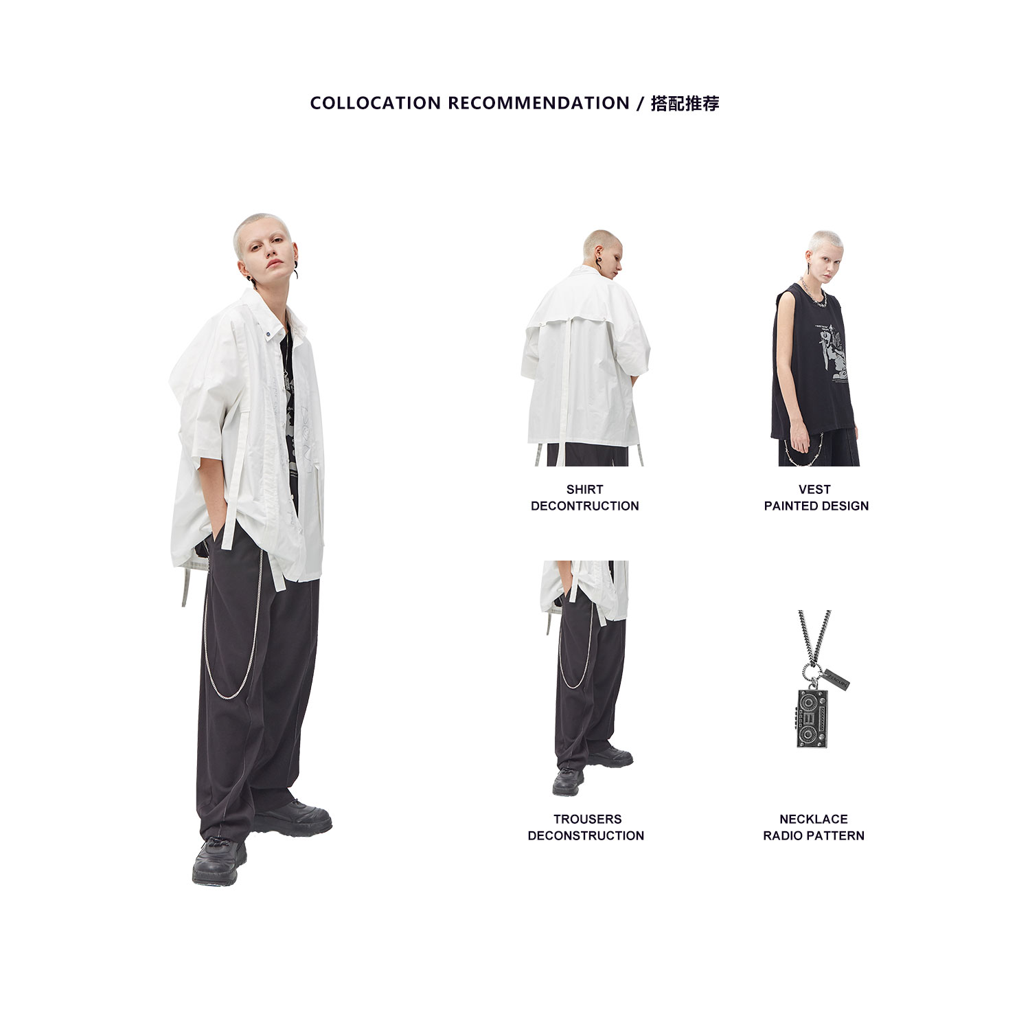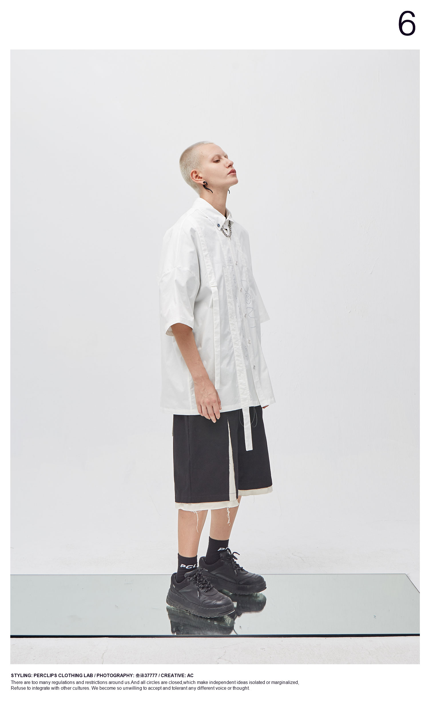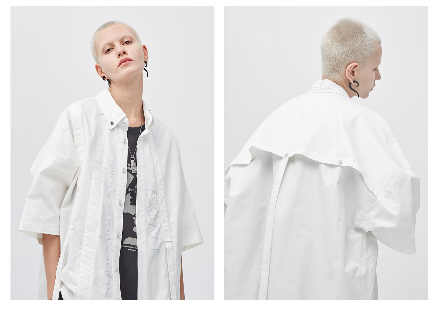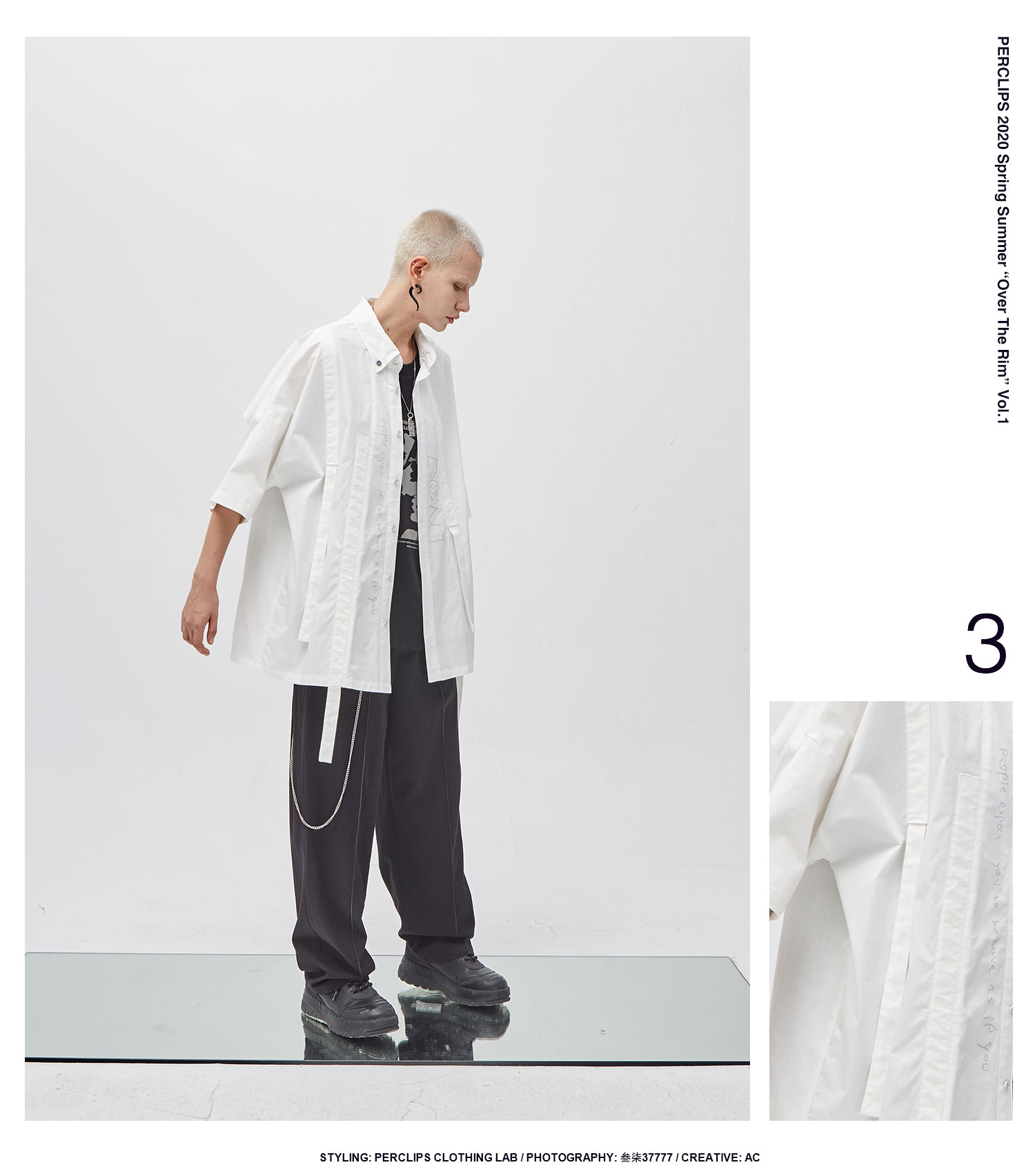 PCLP(PERCLIPS) 白色飘带短袖衬衫 夏季薄款休闲男士衬衣宽松潮