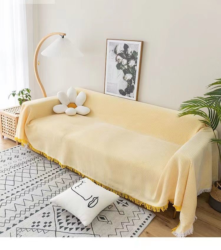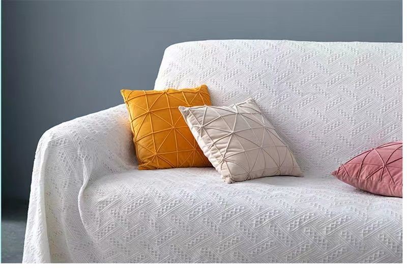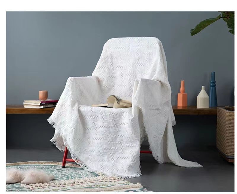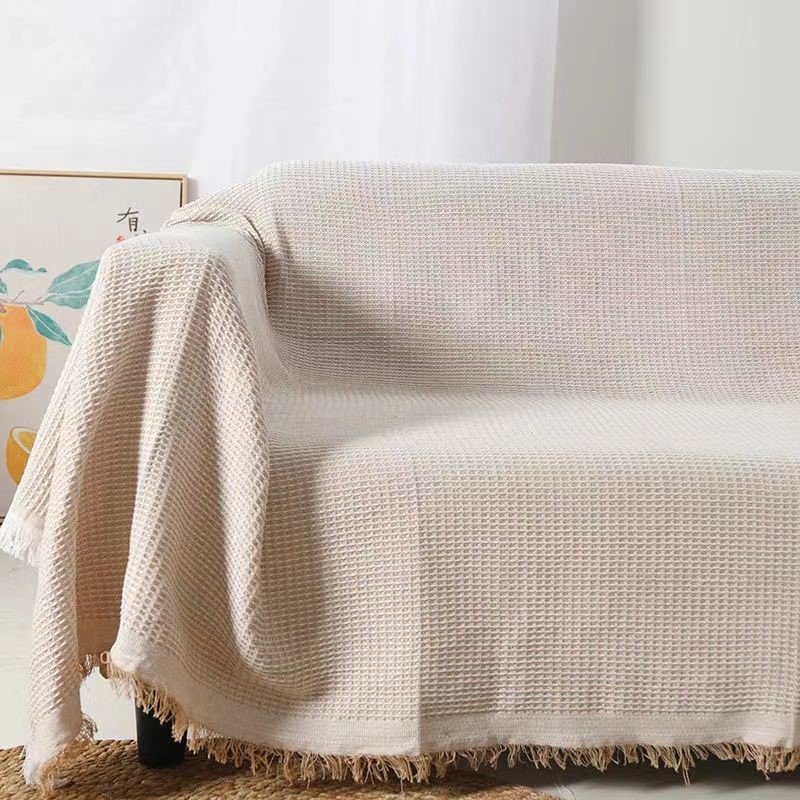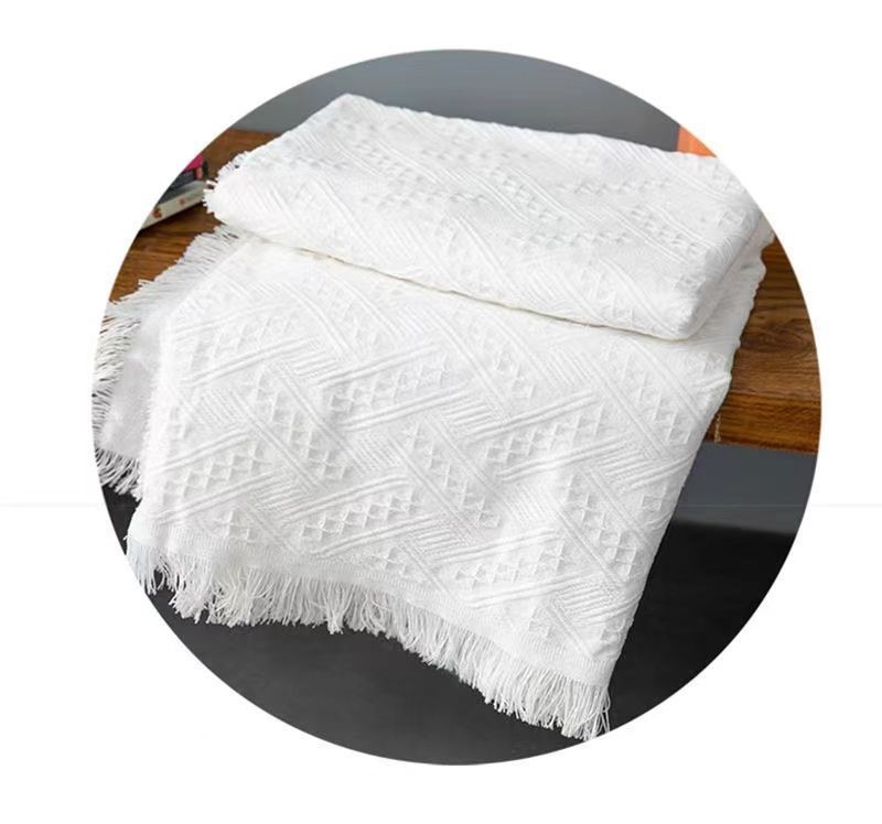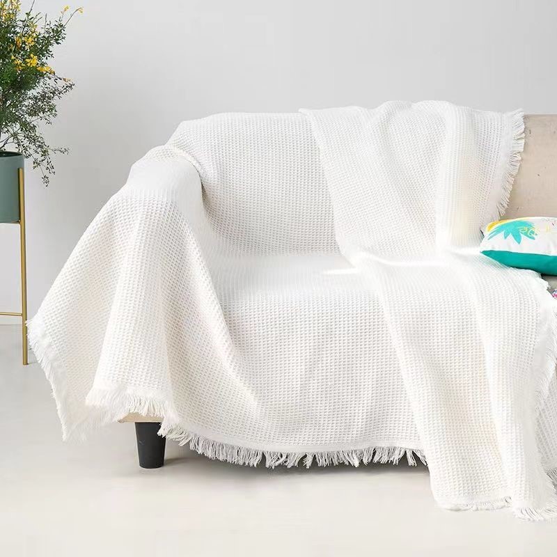 北欧风 白色沙发巾多用途棉线毯全盖沙发套罩三人防滑沙发垫盖布