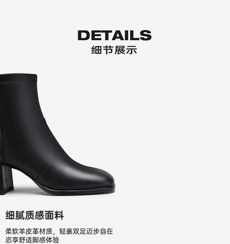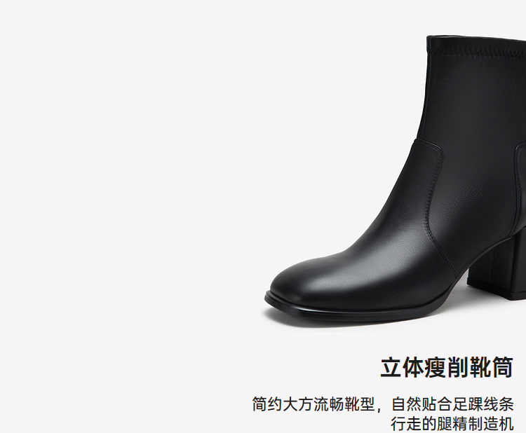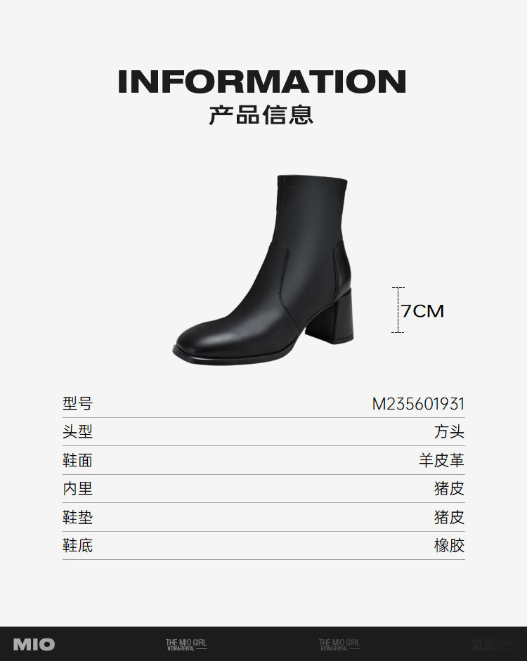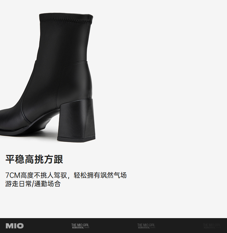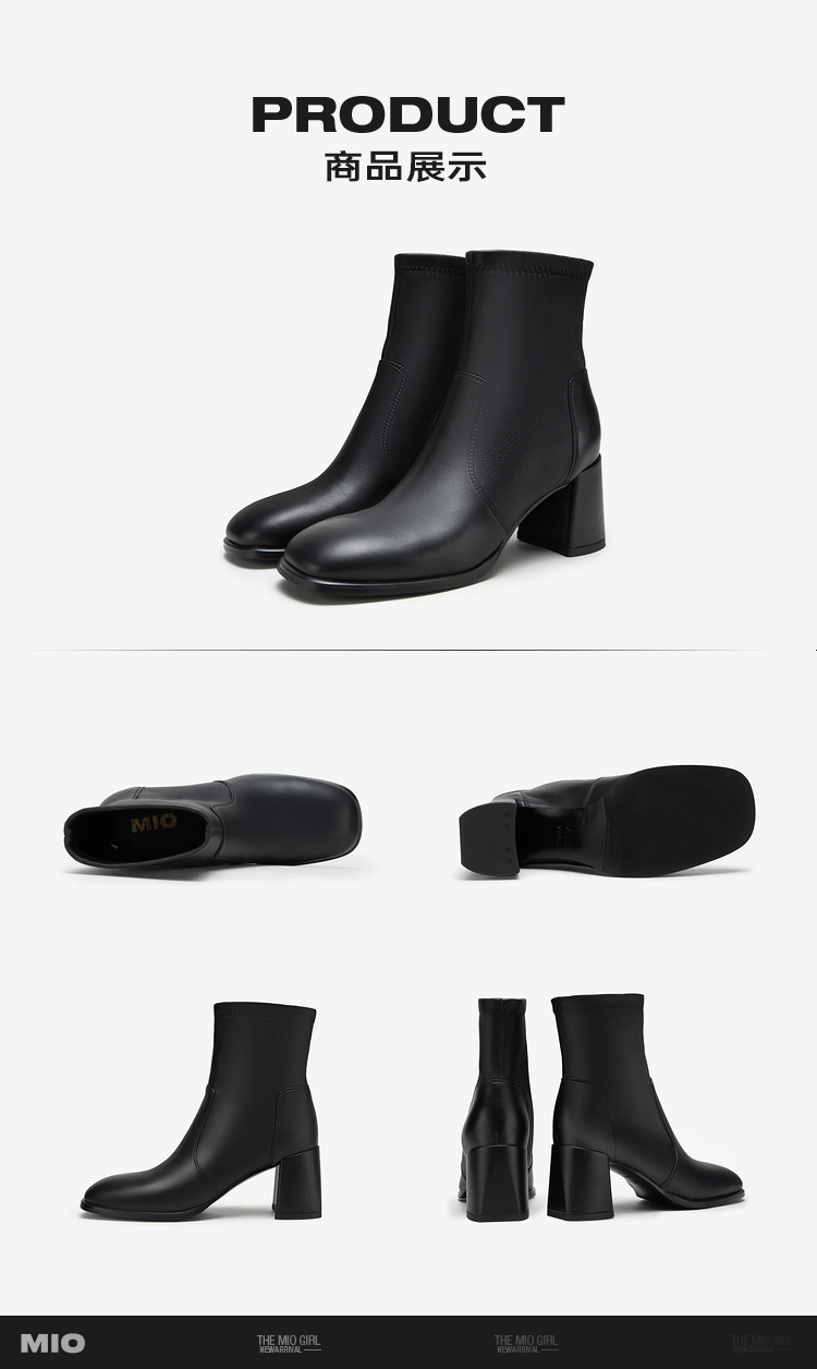 MIO米奥冬季新款时尚靴子方高跟简约大方酷飒中筒时装靴女M235601931