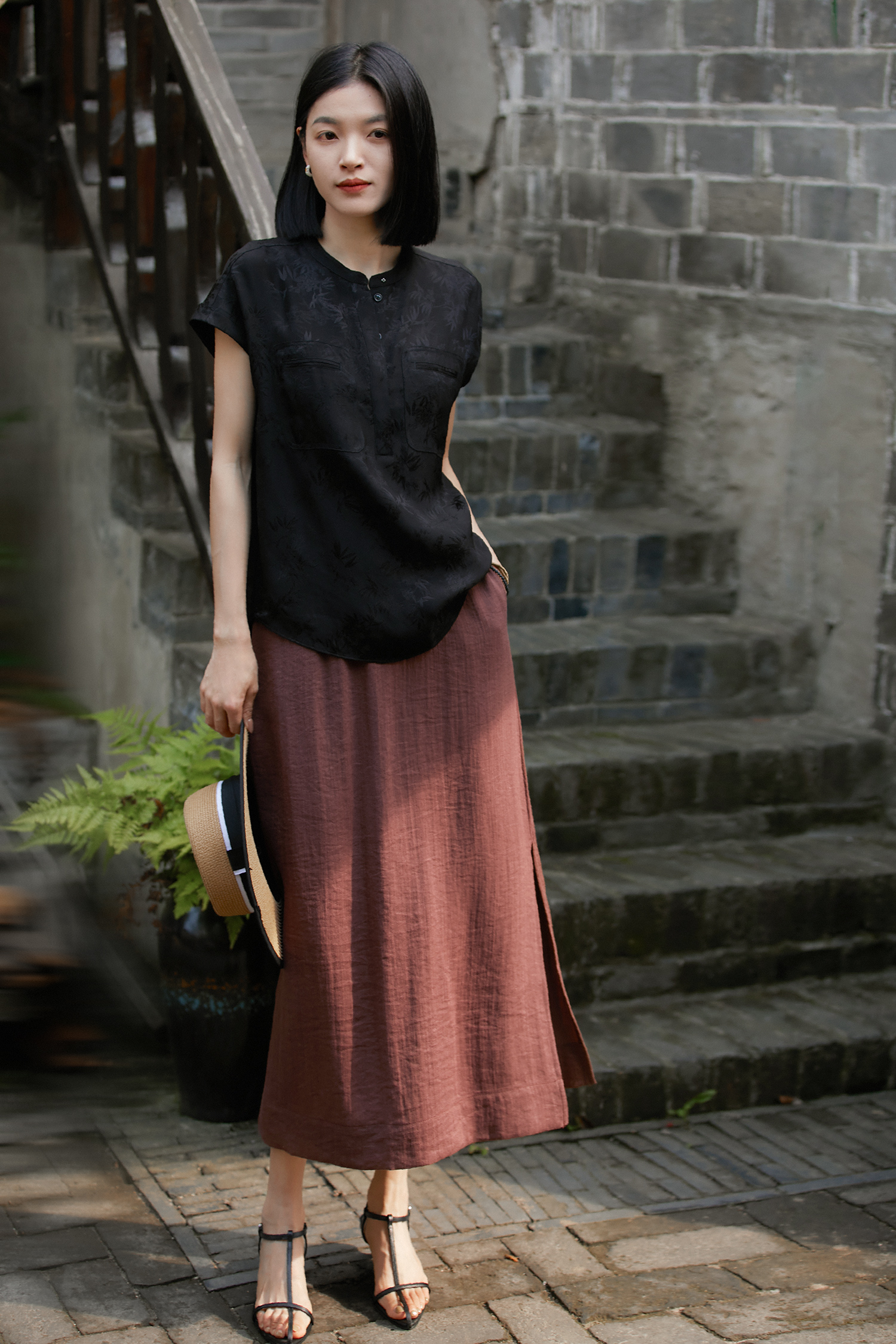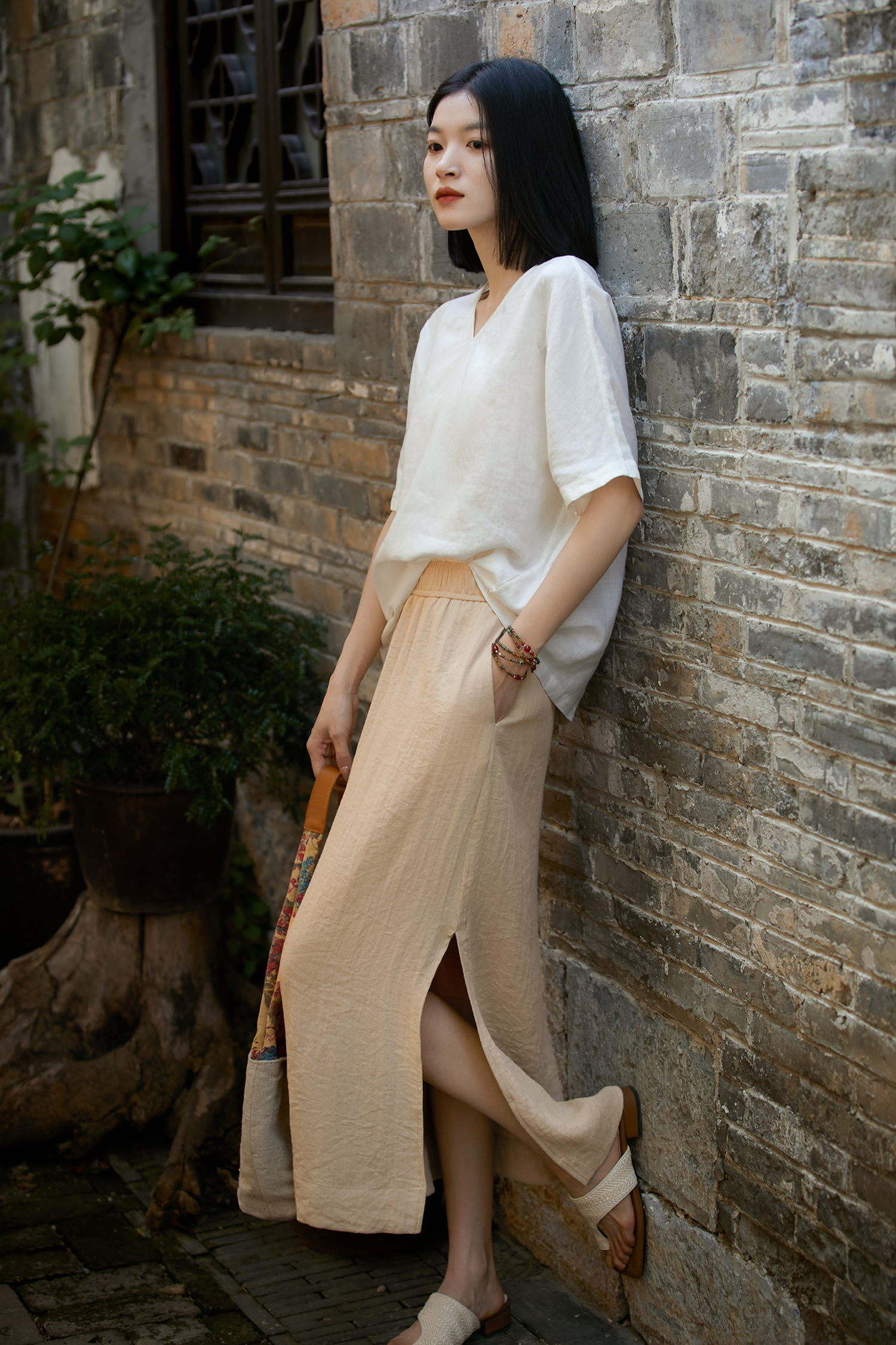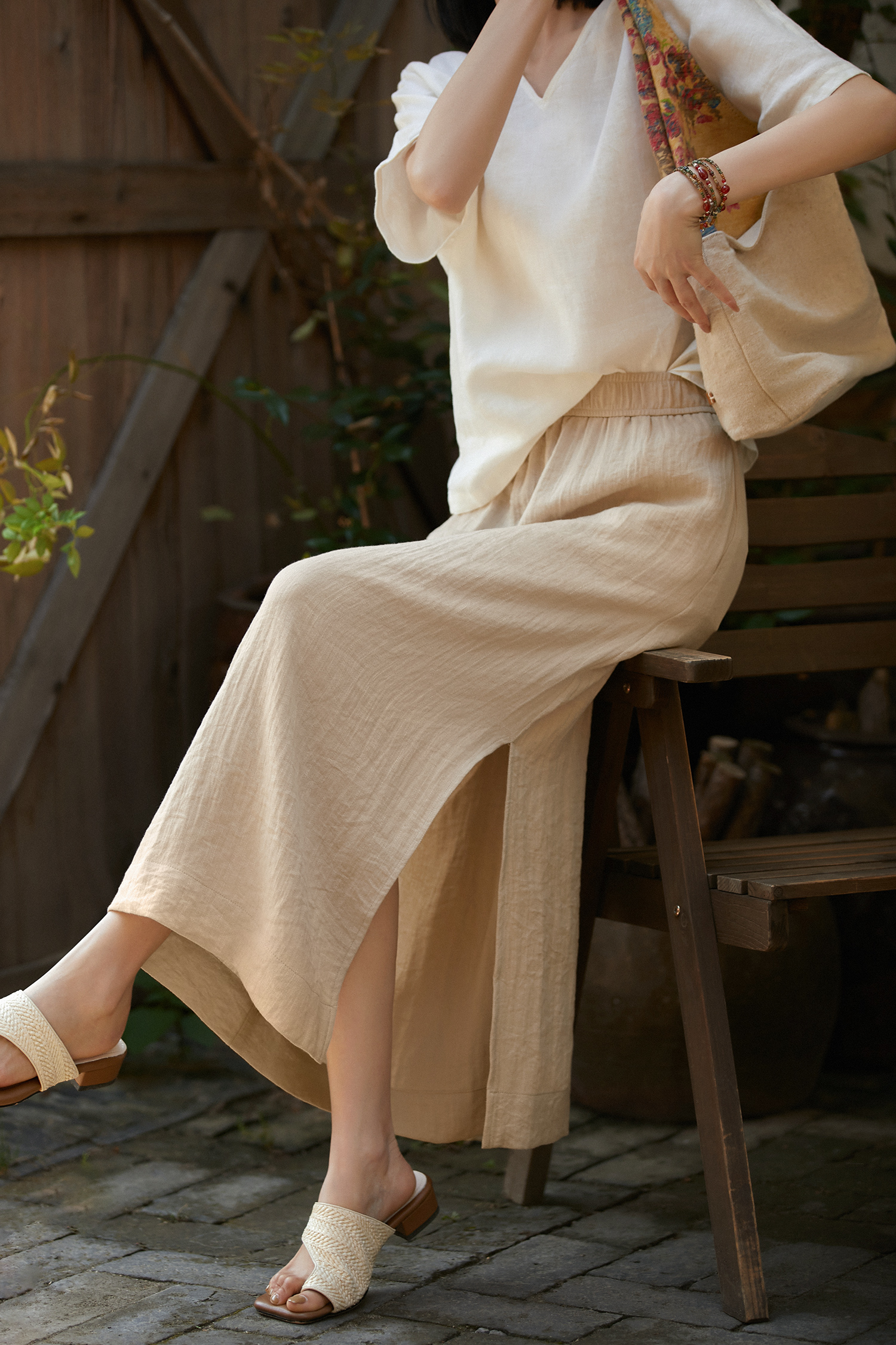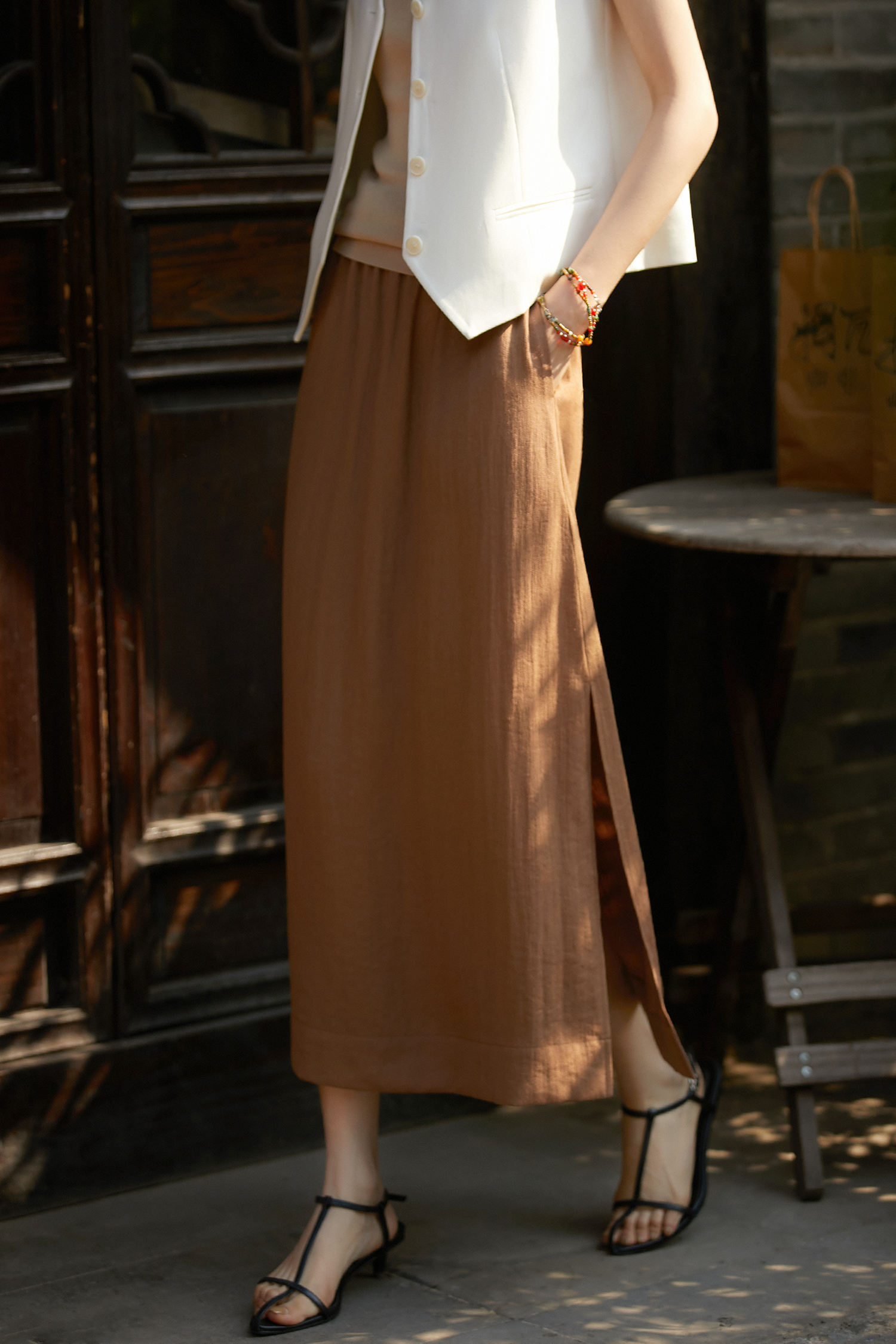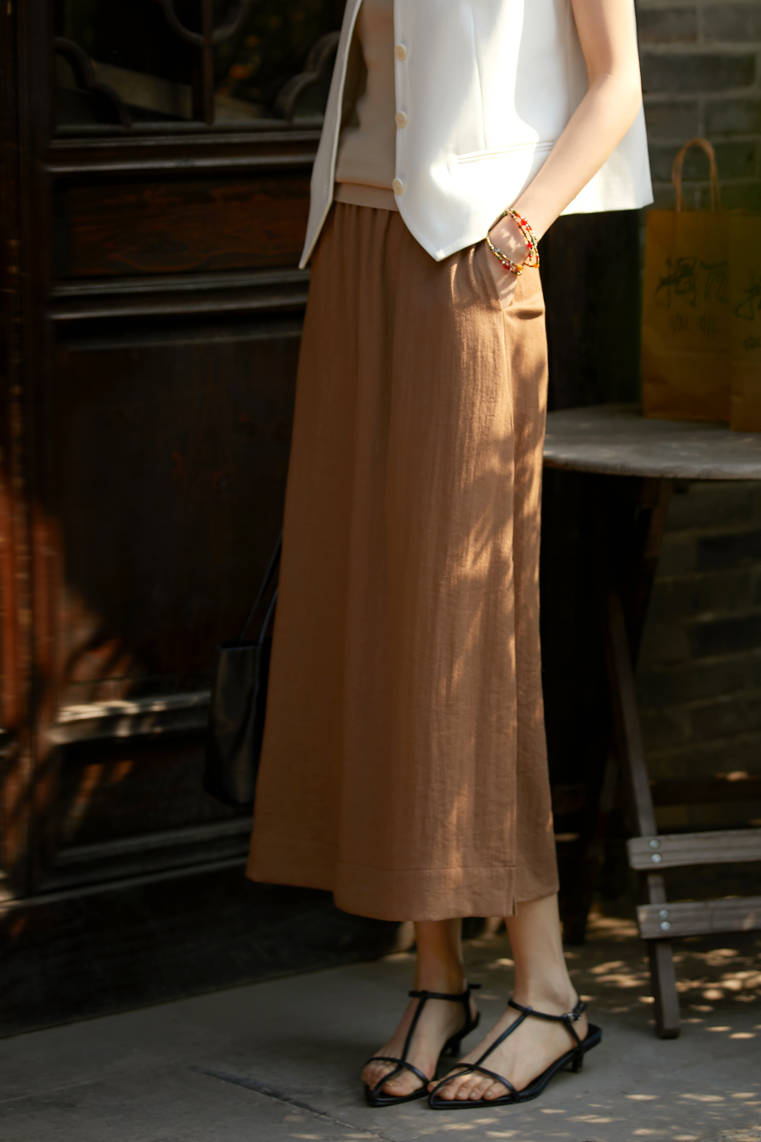 亚麻天丝高腰半身裙, 夏天走路带风,久坐也不闷汗,告别黏腻感