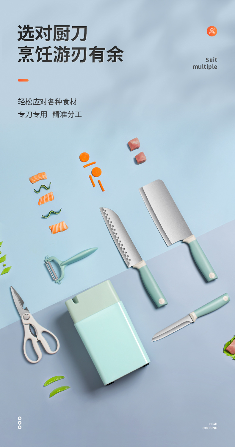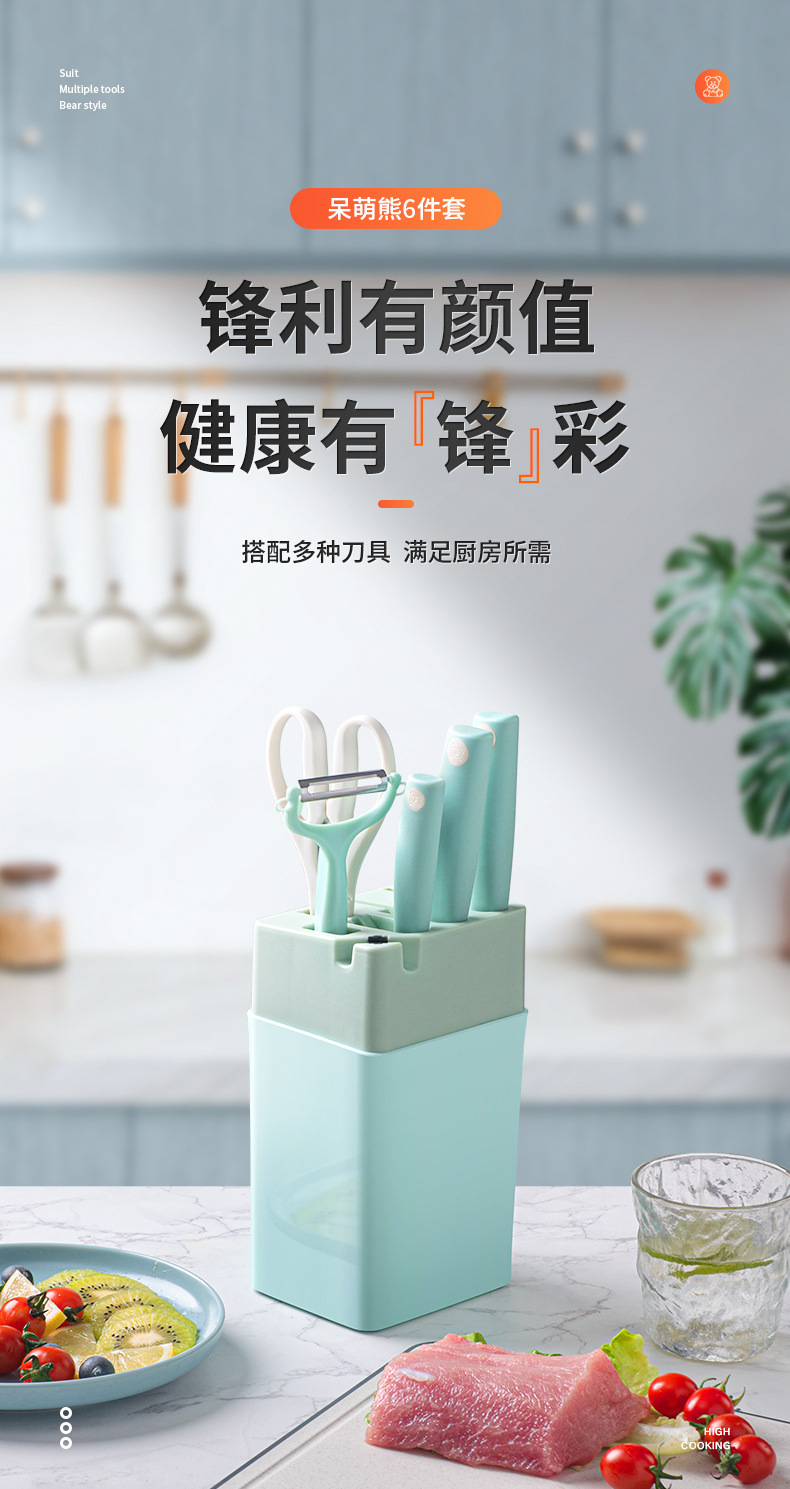 「呆萌熊六件套」好利索不锈钢菜刀厨房用品全套厨房切肉刀整套六件套刀具套餐