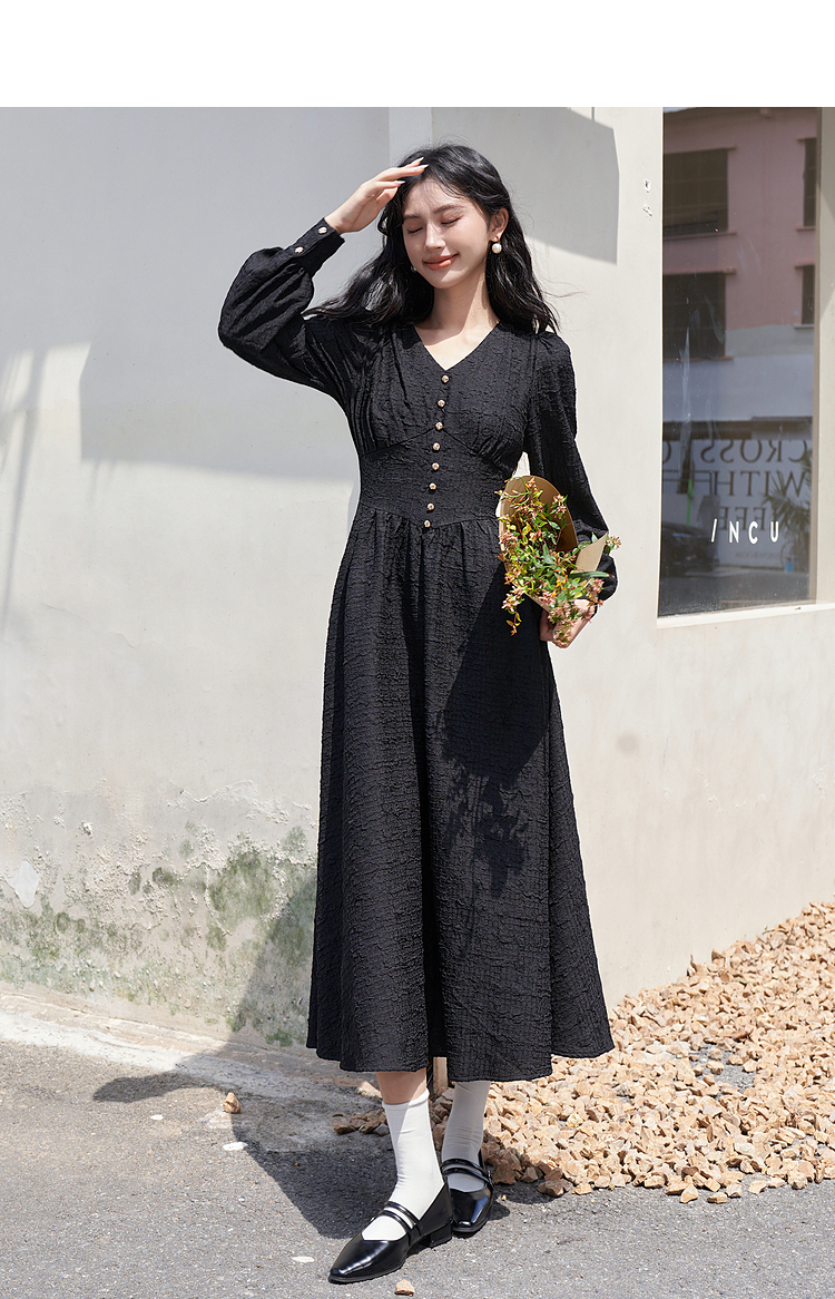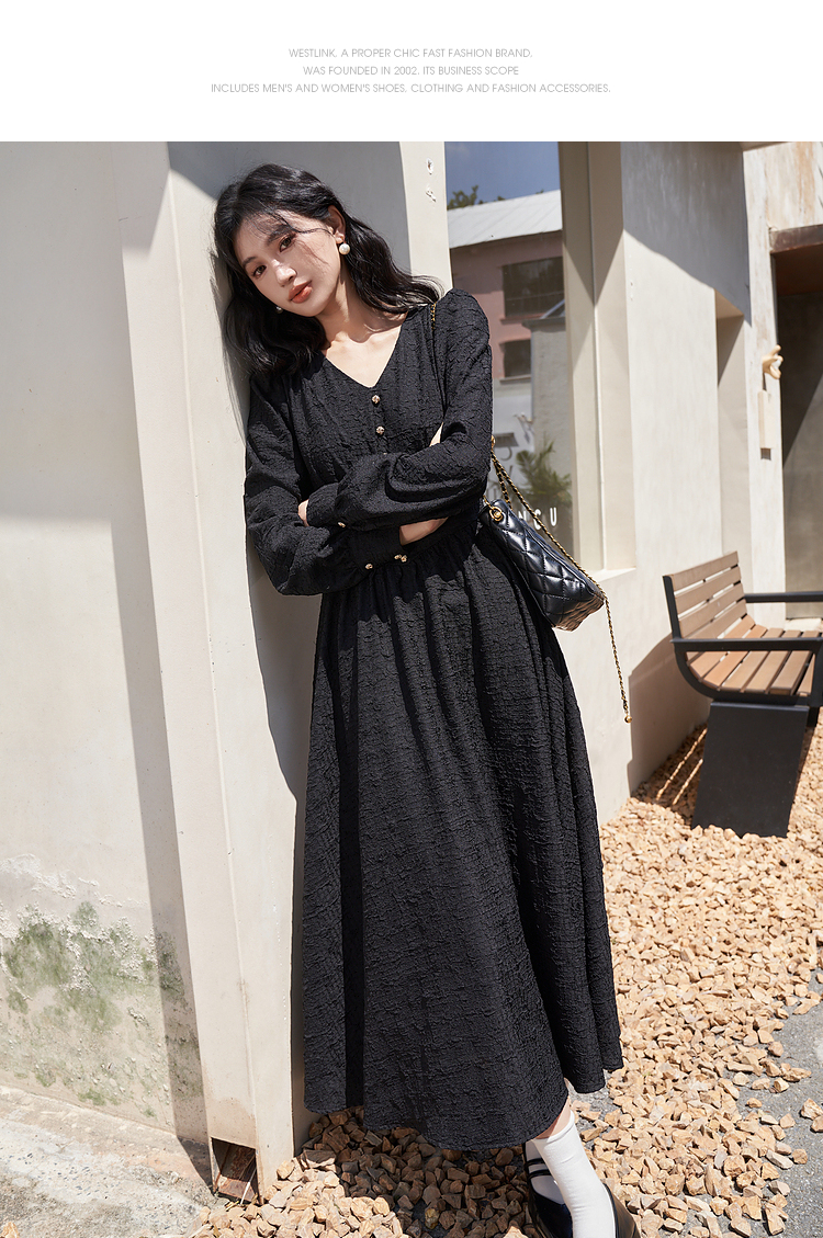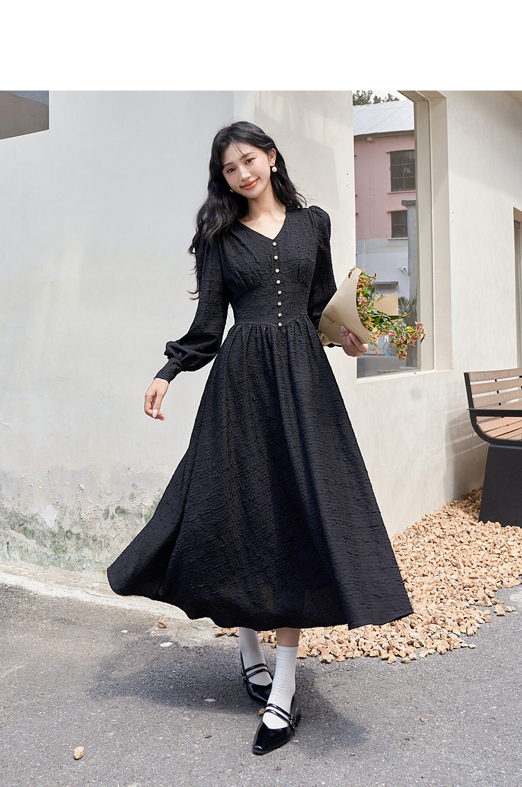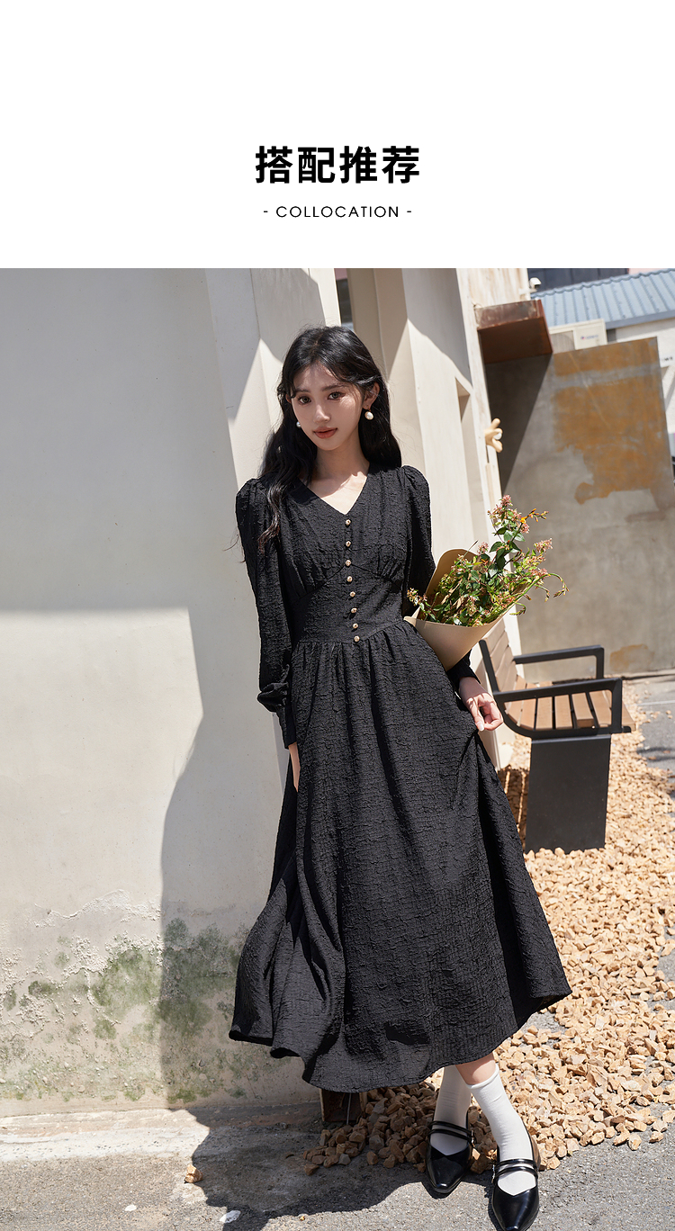 西遇法式宫廷风连衣裙女2023年秋季新款V领收腰复古优雅长袖长裙12038386