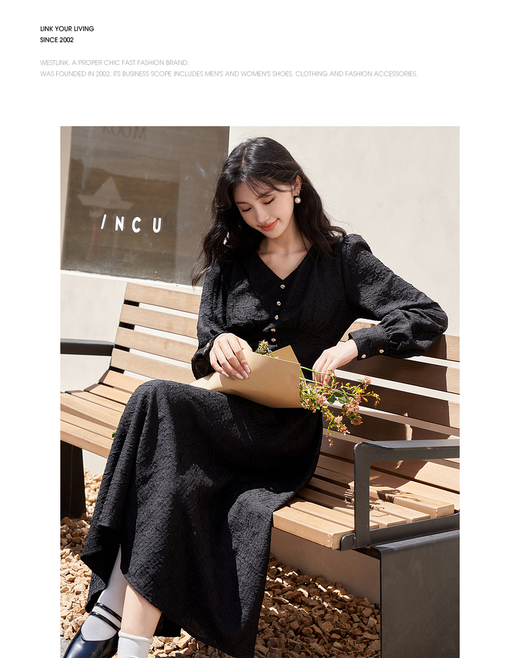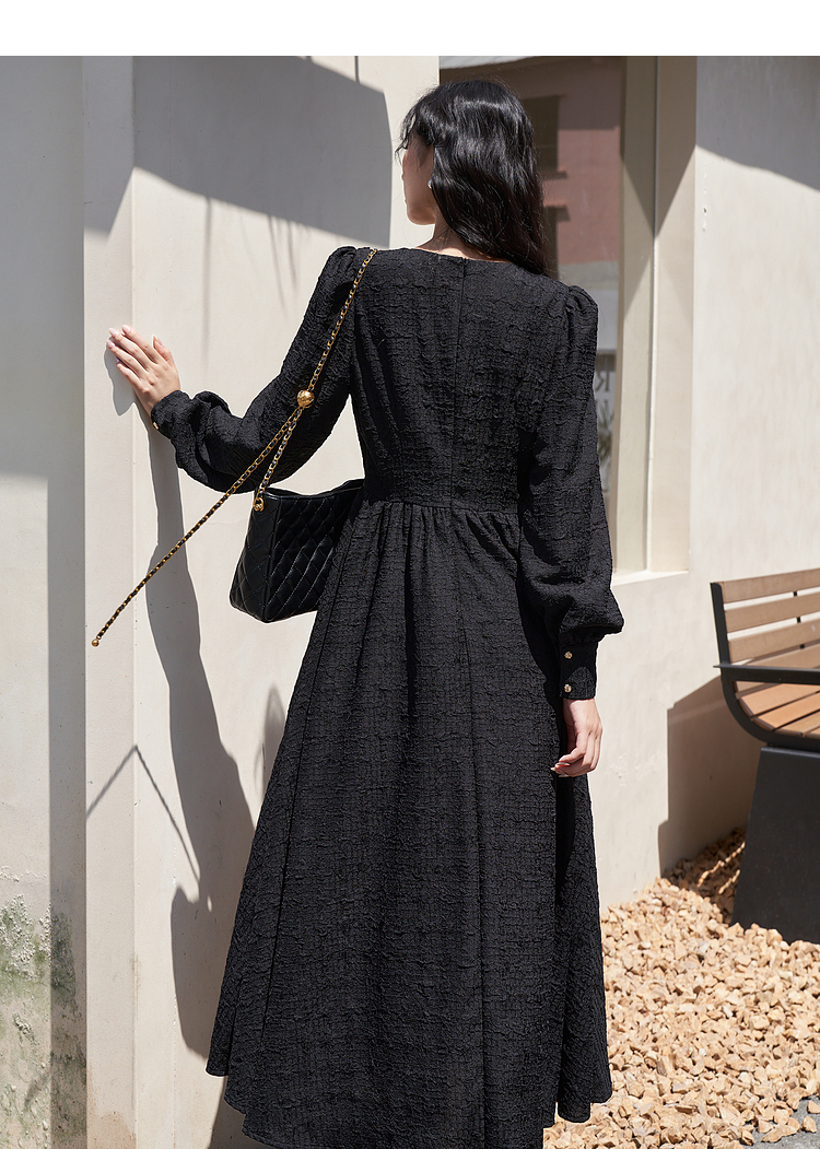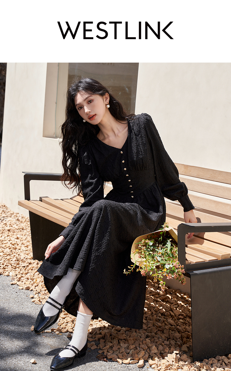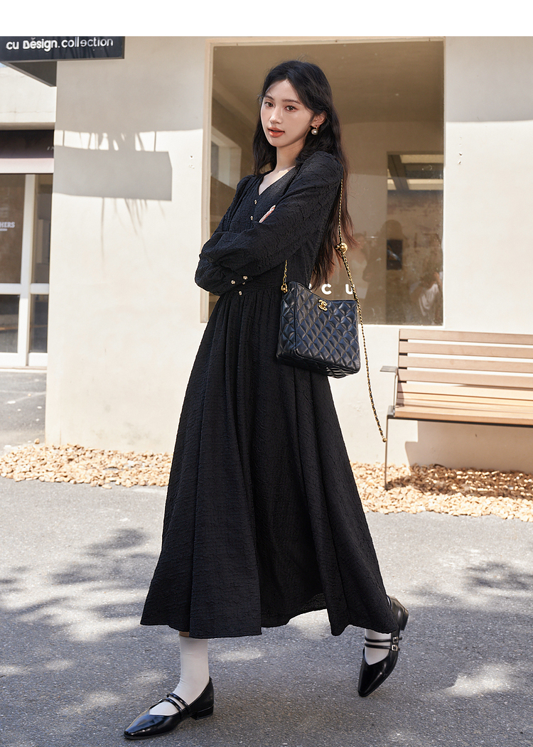西遇法式宫廷风连衣裙女2023年秋季新款V领收腰复古优雅长袖长裙12038386
