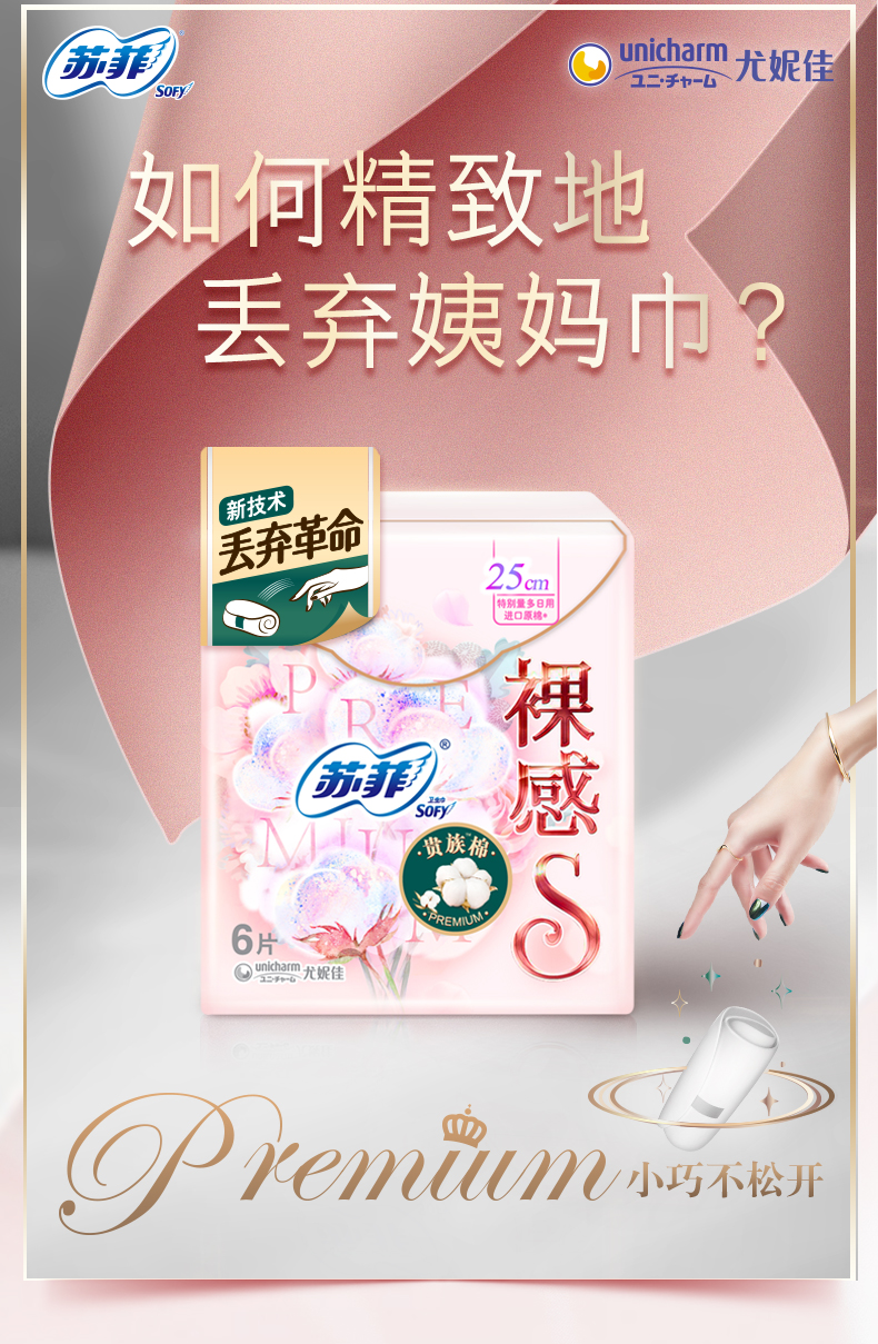 苏菲裸感S贵族棉极薄250日用卫生巾6片