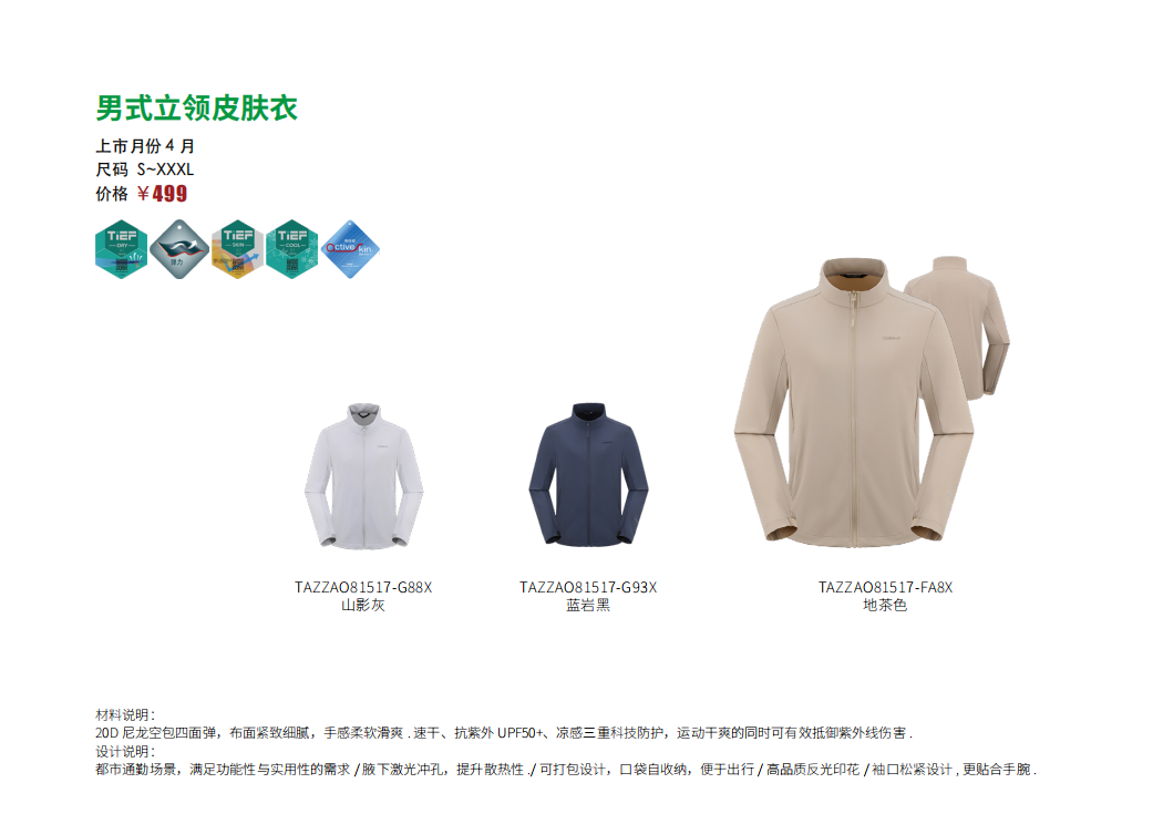 探路者男式立领皮肤衣TAZZAO81517