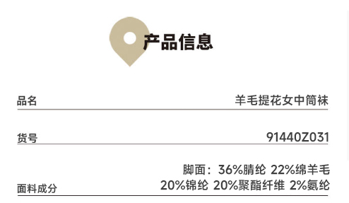 Threegun三枪 羊毛提花中筒女袜(1双装)-91440Z031