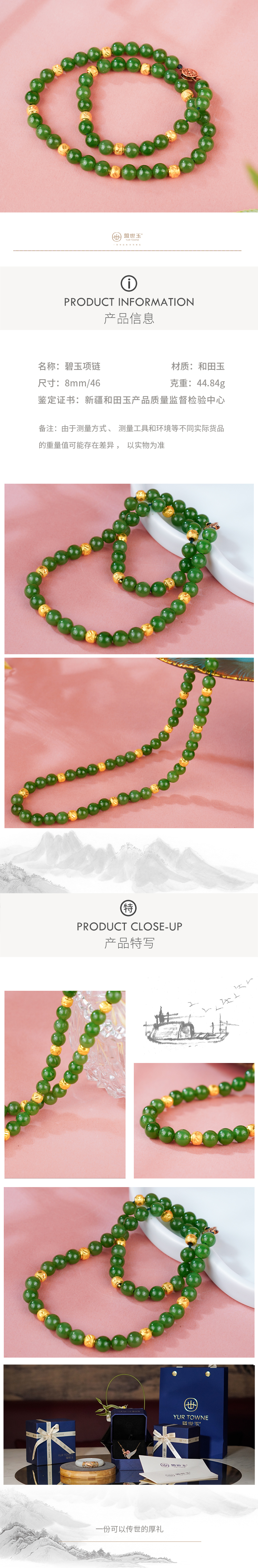 新疆国玉盟世玉【翠韵安康】深绿碧玉项链【带证书·顺丰物流】