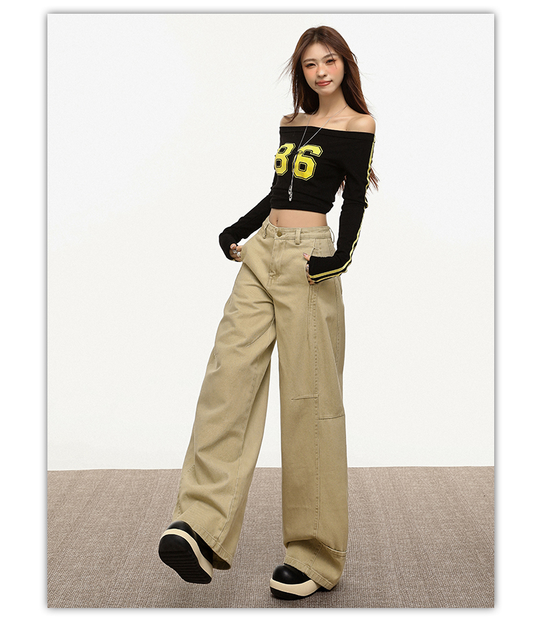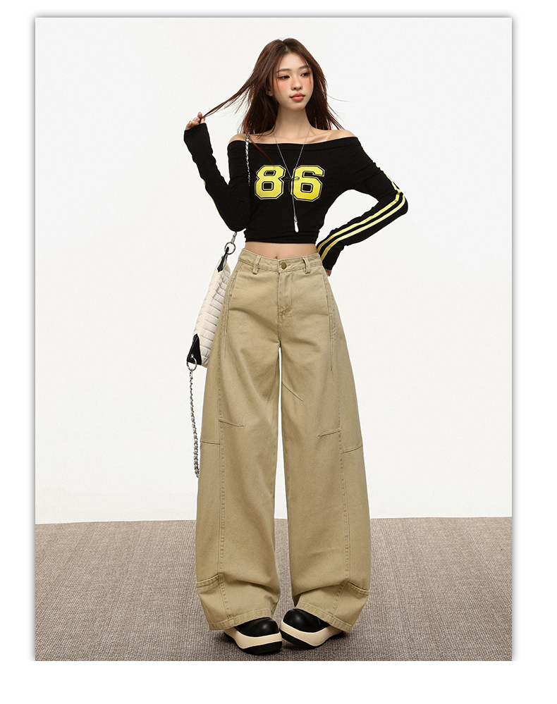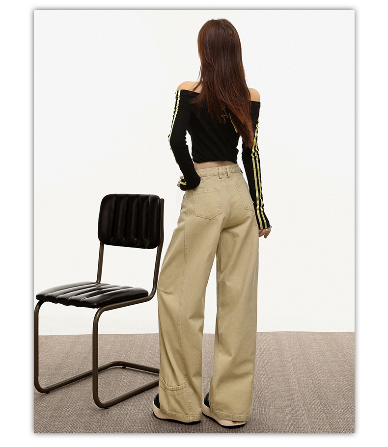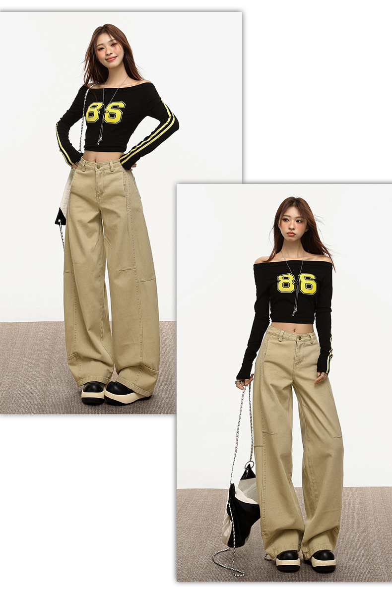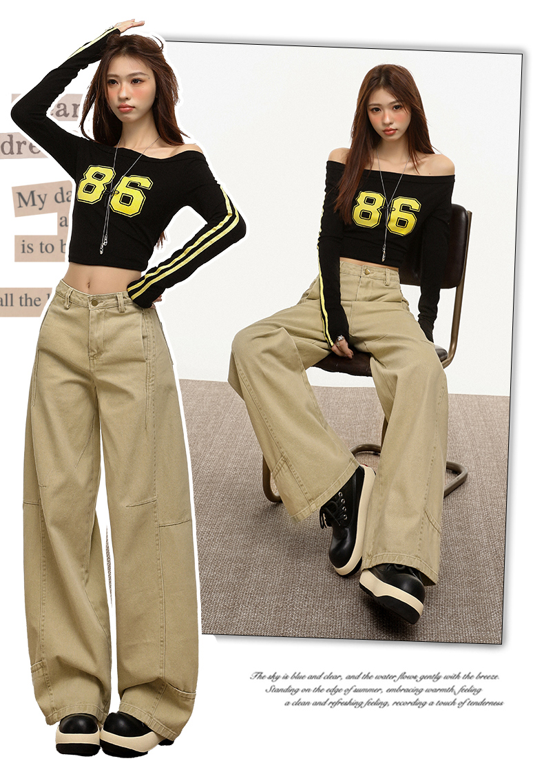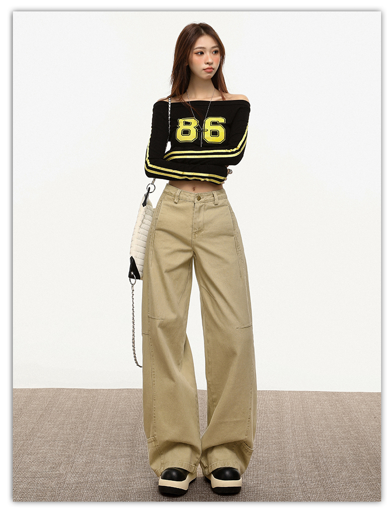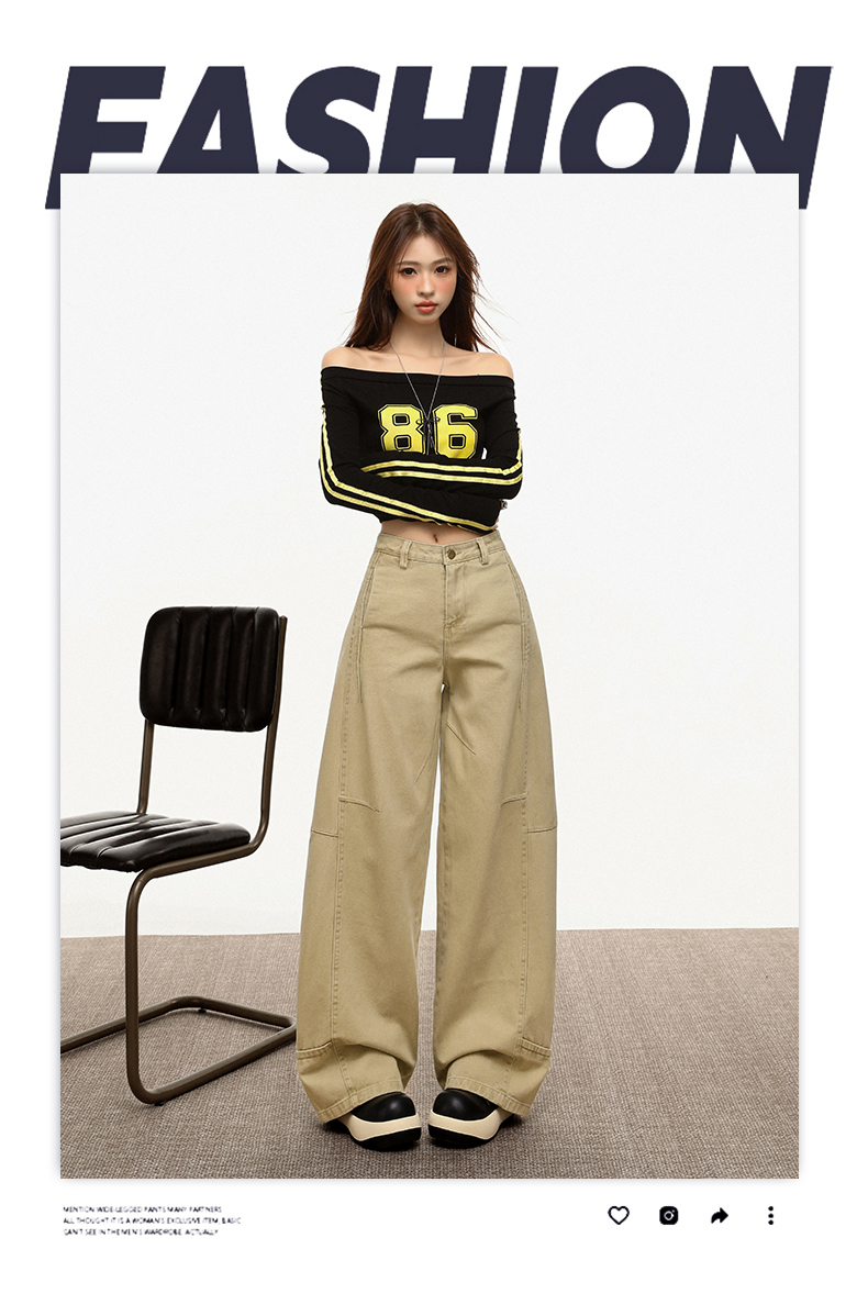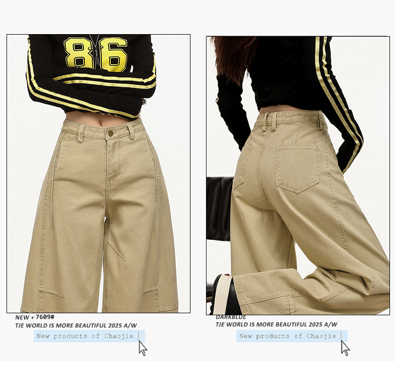 【加绒加厚】罗蒙秋冬款女士弯刀裤卡其色阔腿百搭潮高街显瘦长裤