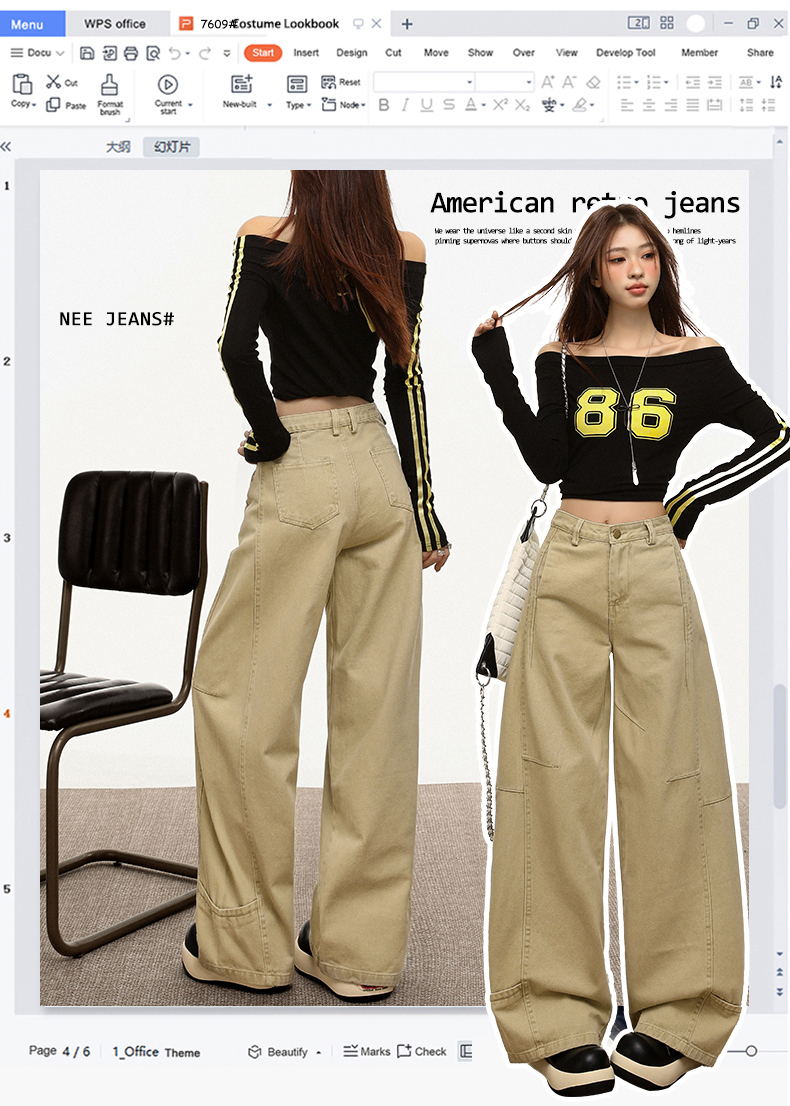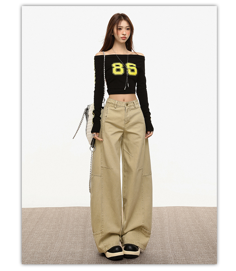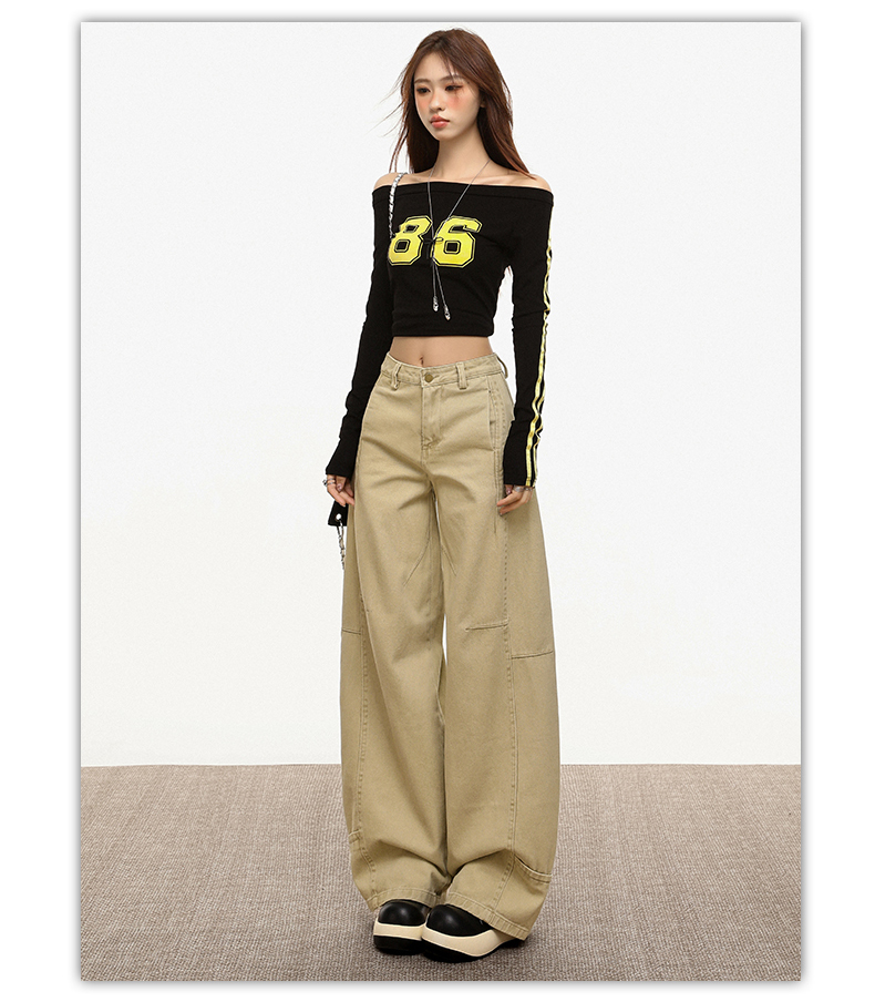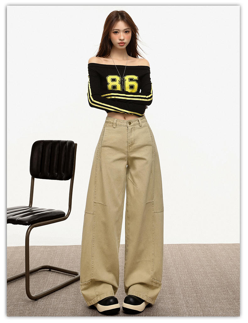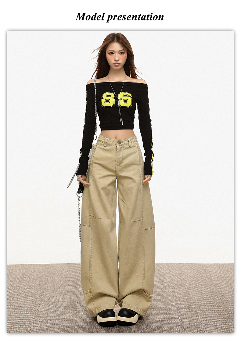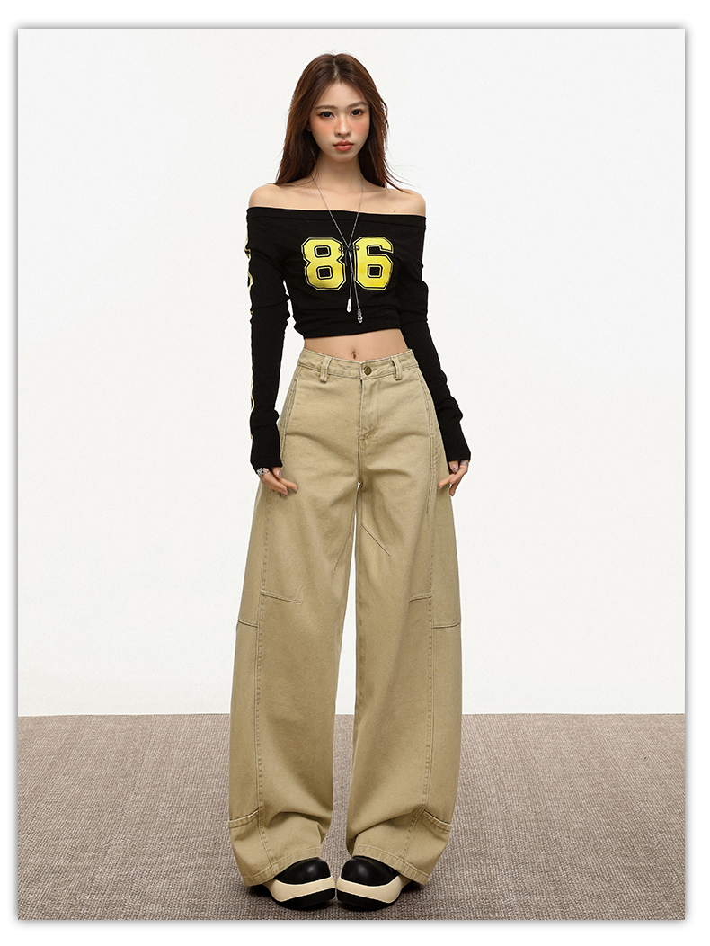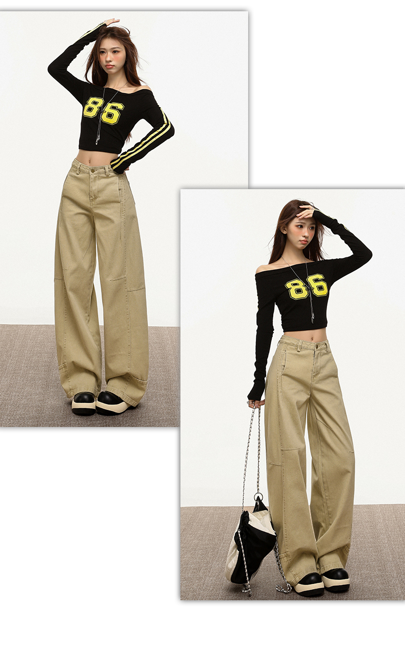 【加绒加厚】罗蒙秋冬款女士弯刀裤卡其色阔腿百搭潮高街显瘦长裤