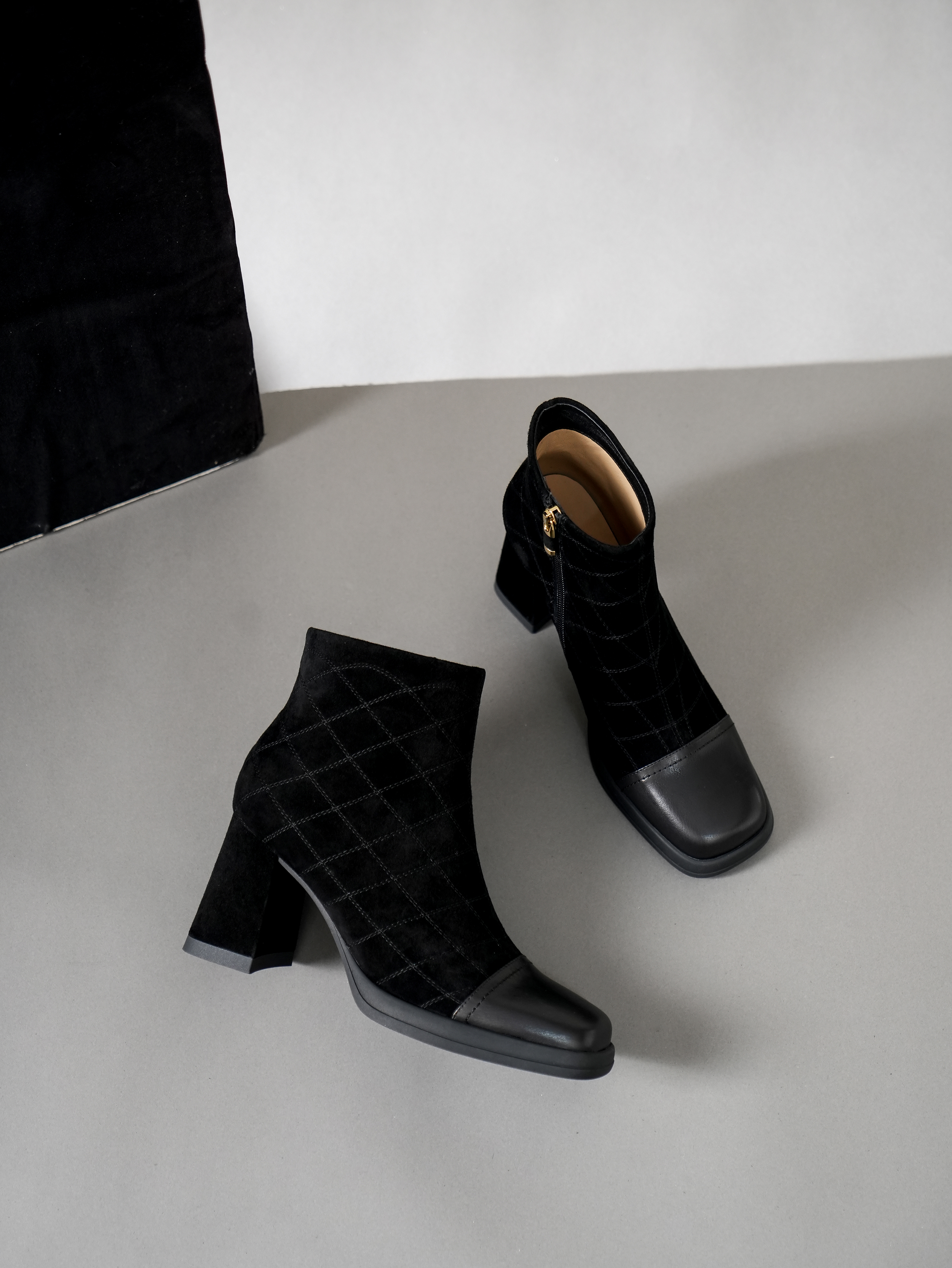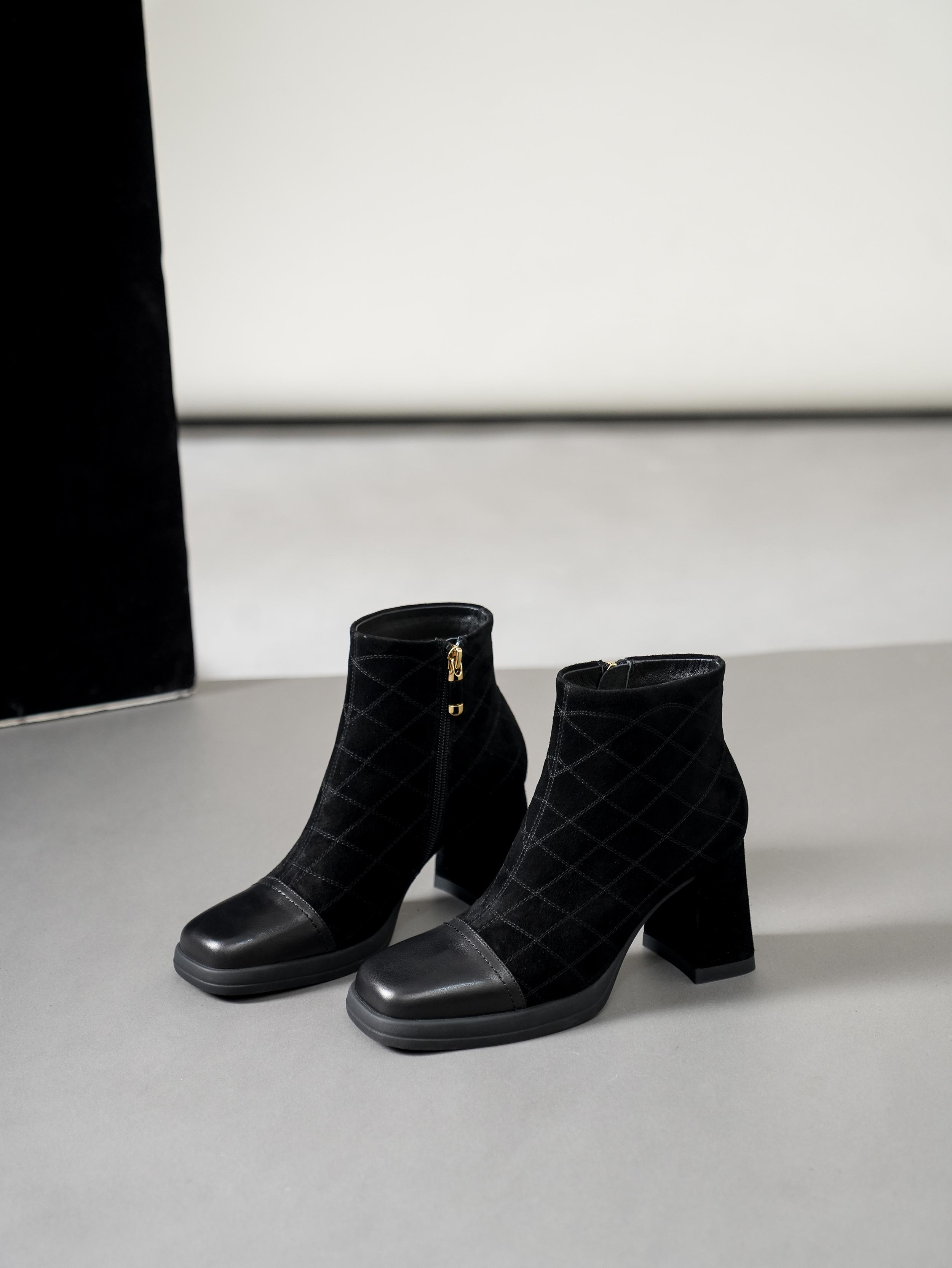 豪麟名鞋奥莱迪嘉女鞋短靴羊反绒面革/胎牛皮革DJYYO42WN203黑色 原价2660元
