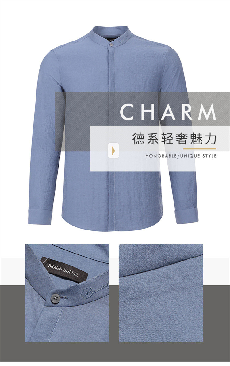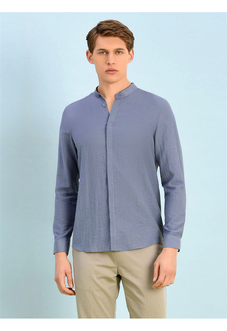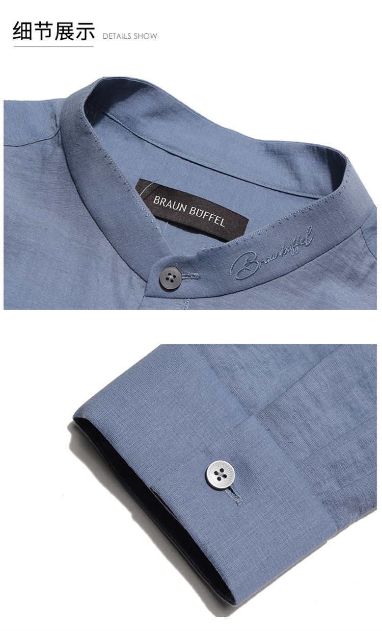 布兰施甄选男装系列亚麻立领衬衫