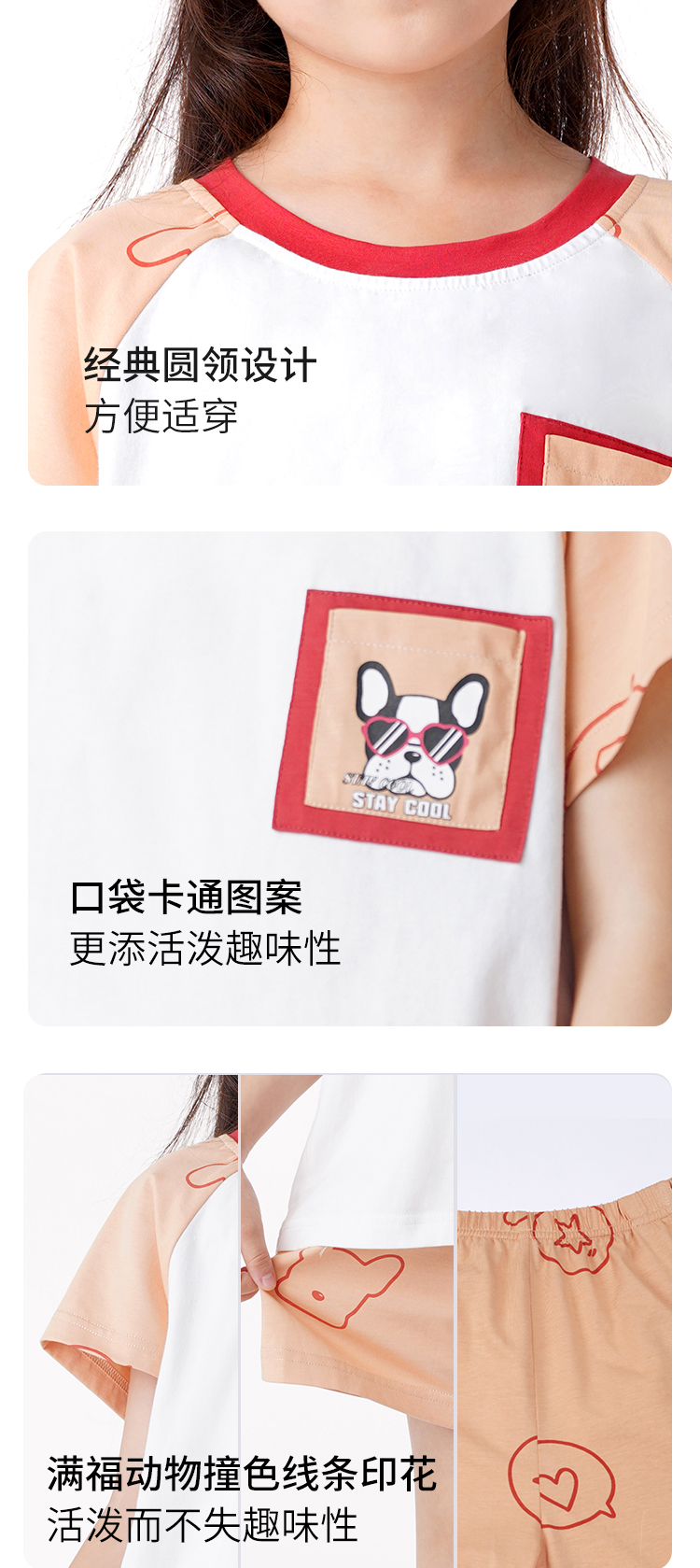 都市丽人眯雅佳童装棉质短袖套装凉感无尘棉薄短袖睡衣JH29A2