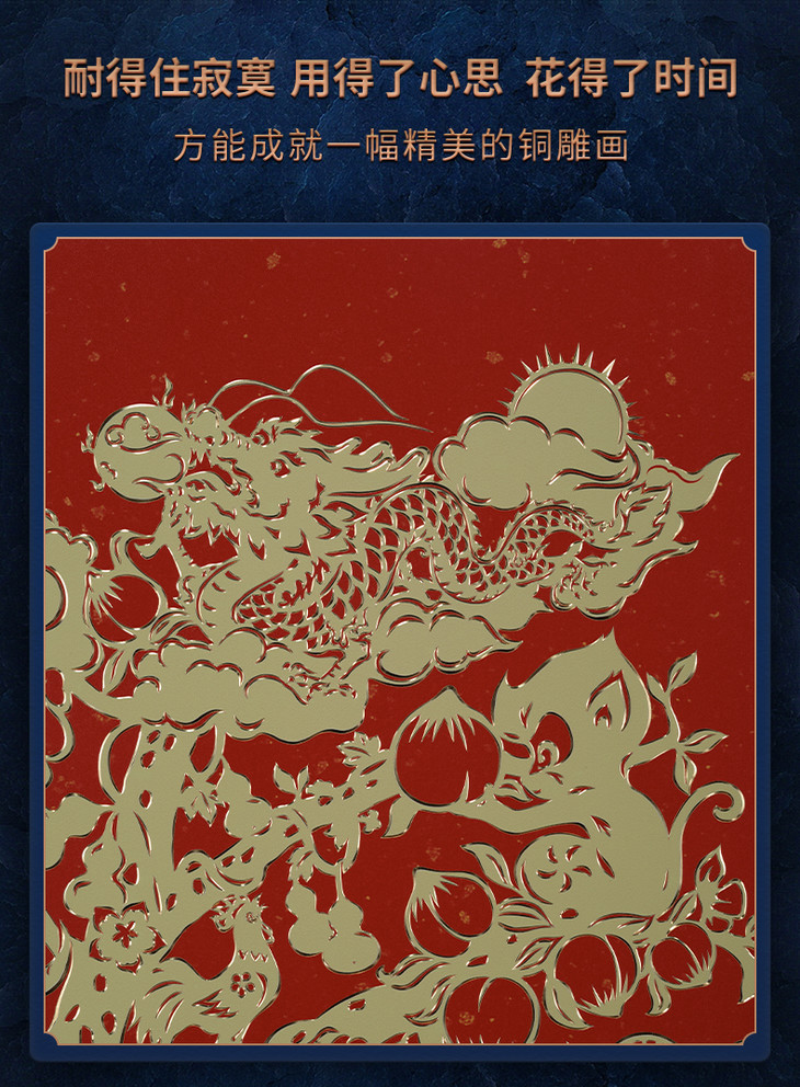 铜师傅 手工錾刻 铜雕画《福之十二生肖》客厅装饰玄关画 背景画