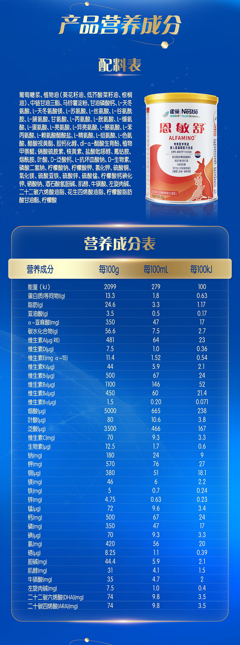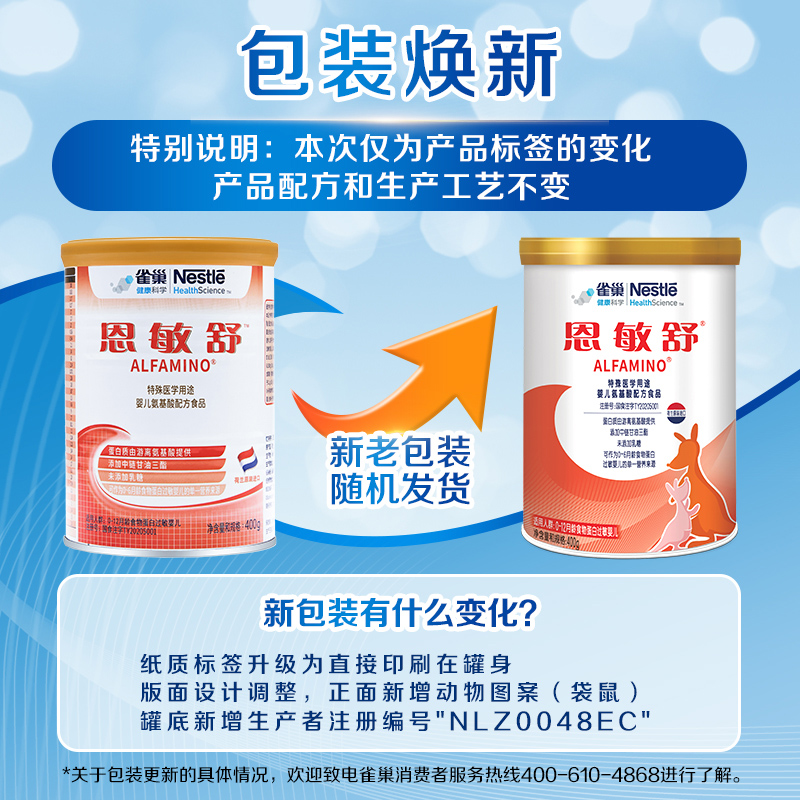 雀巢恩敏舒氨基酸配方奶粉 无乳糖 400g