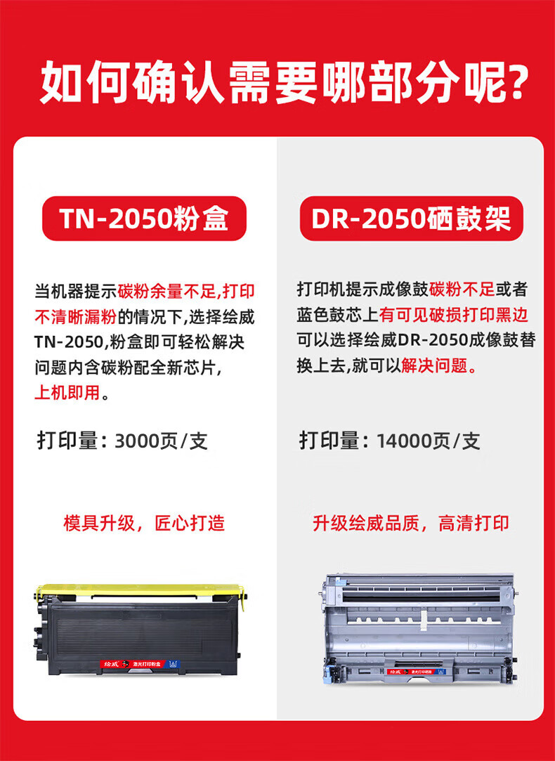 绘威TN-2050/DR-2050硒鼓架粉盒套装适用兄弟HL-2040 2045 2070N HL-2075N DCP-7010 7025 MFC-7220绘印版