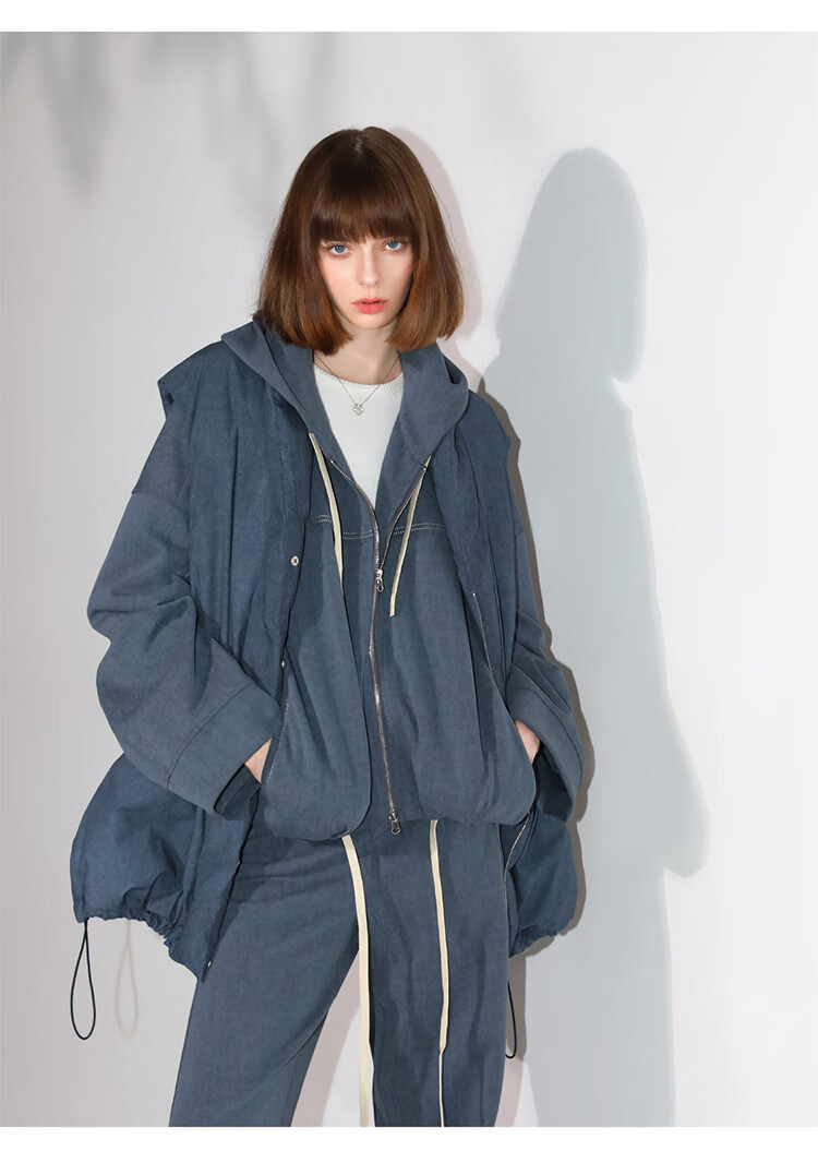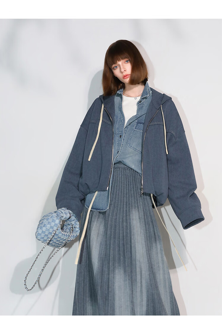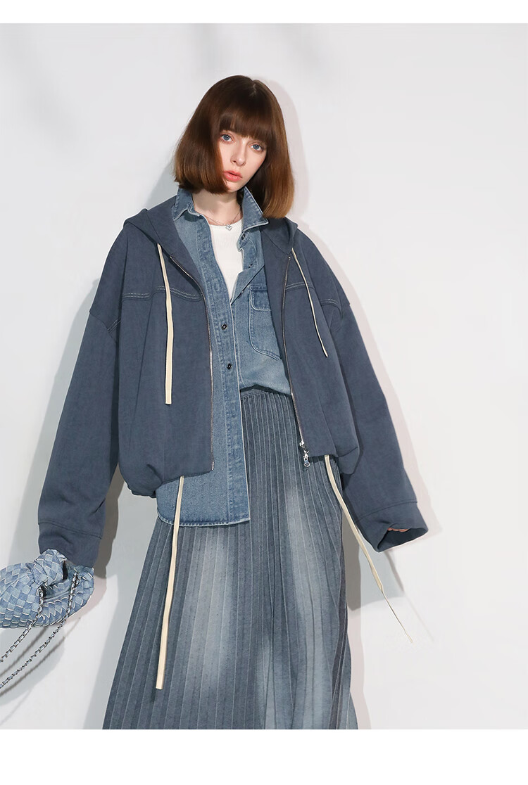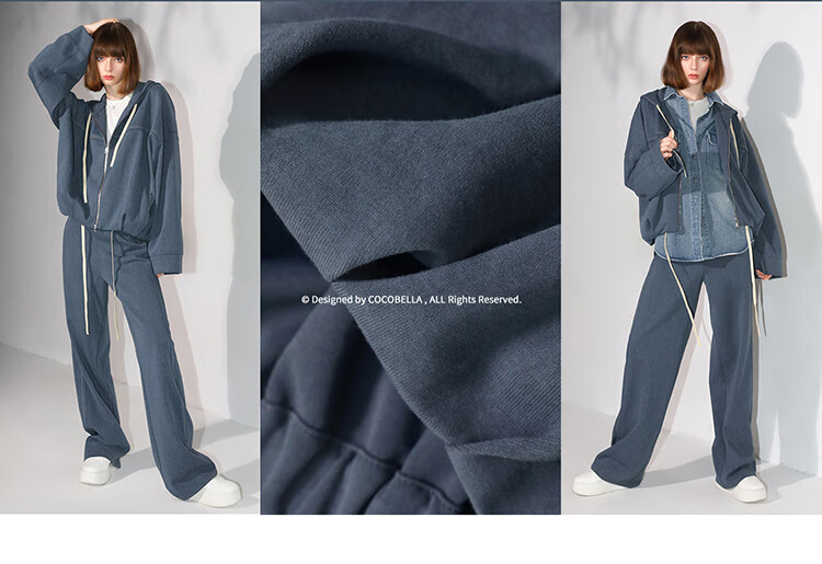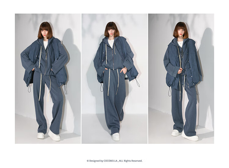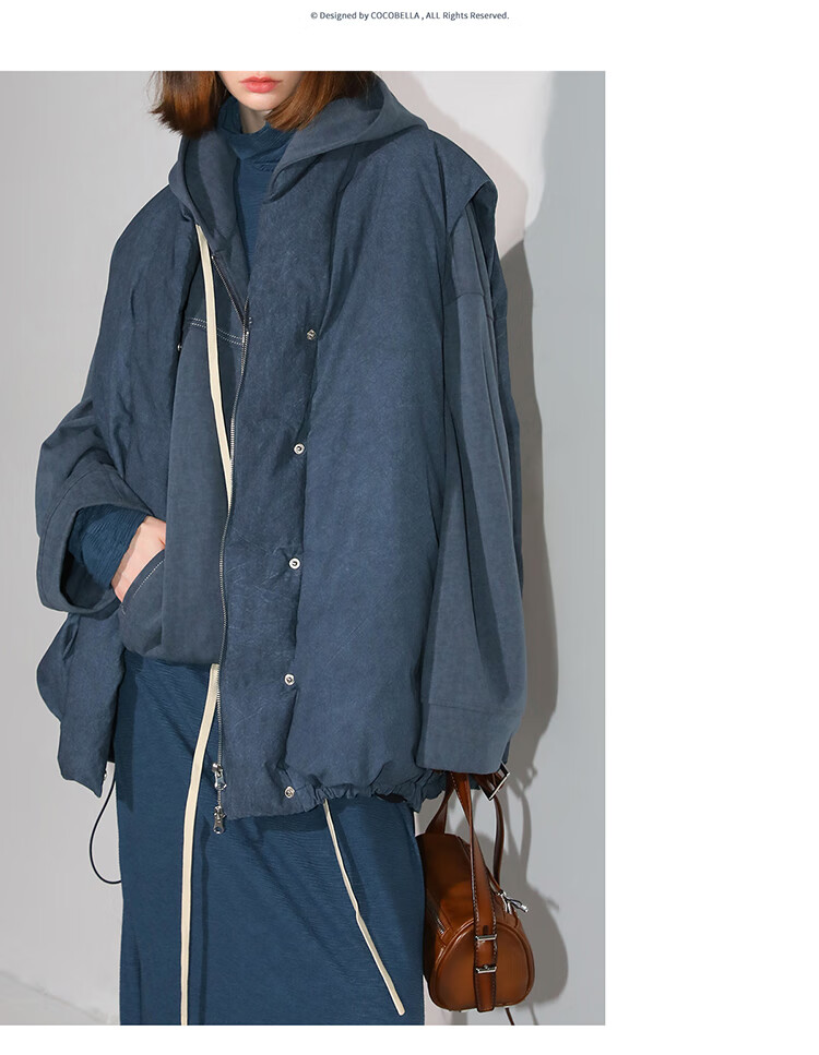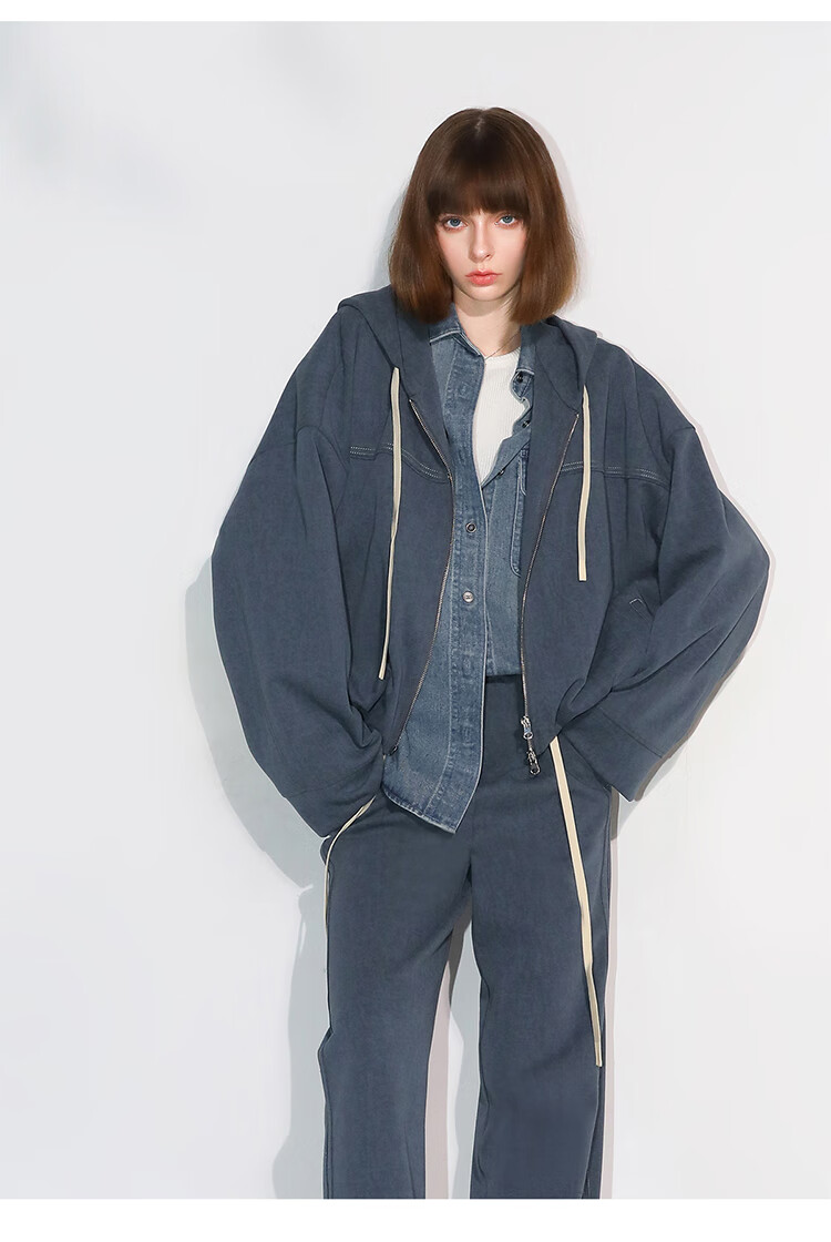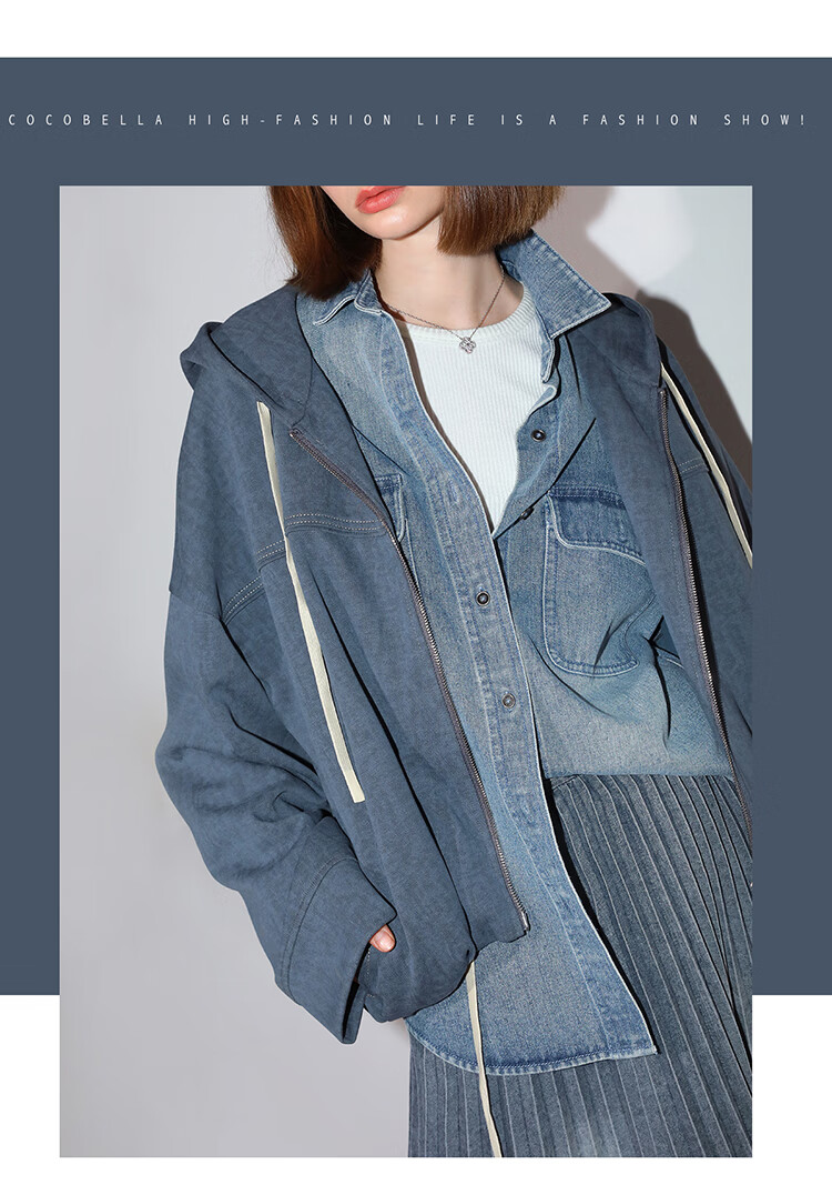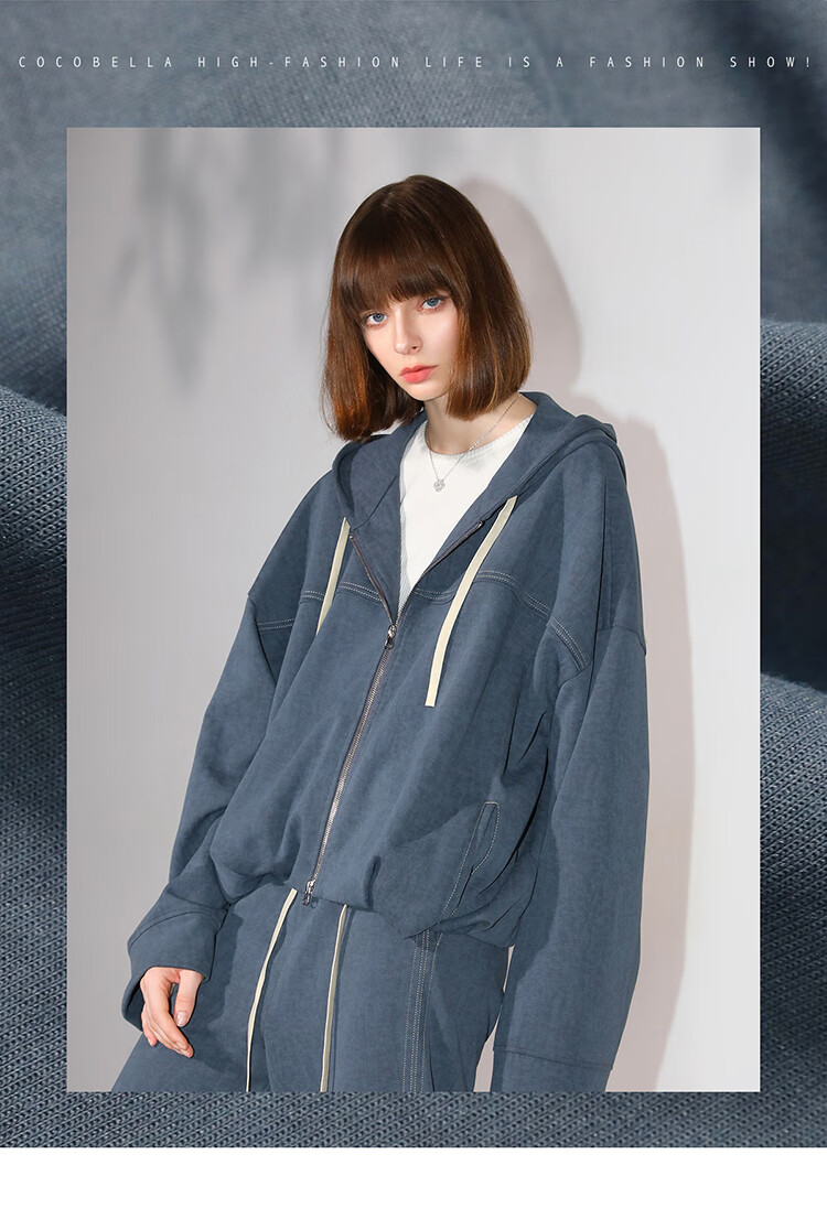 COCOBELLA抽褶蝙蝠袖短外套休闲连帽炒色花纱拉链卫衣SC3013
