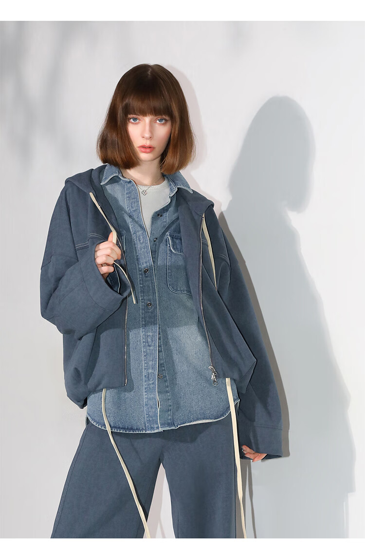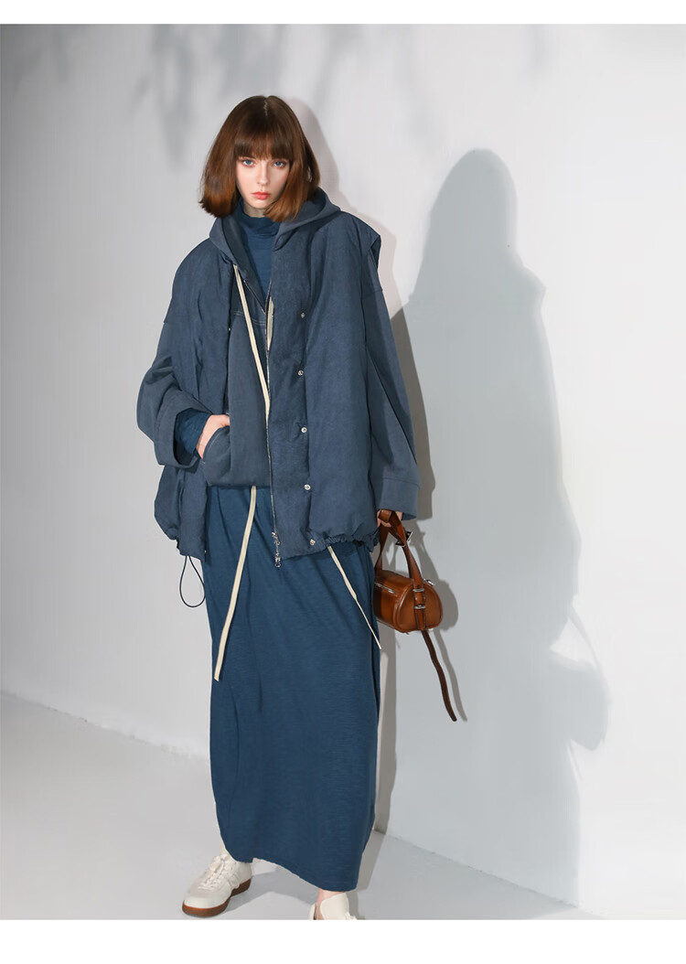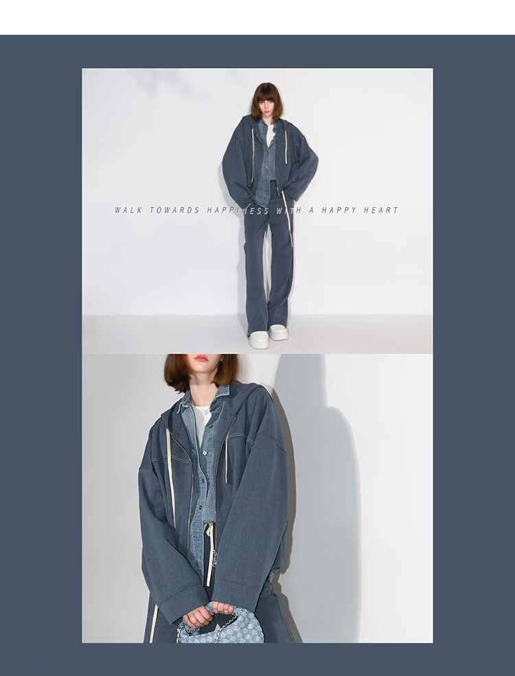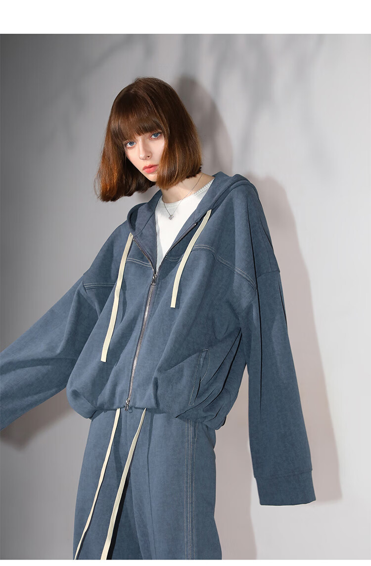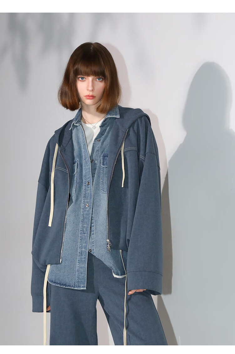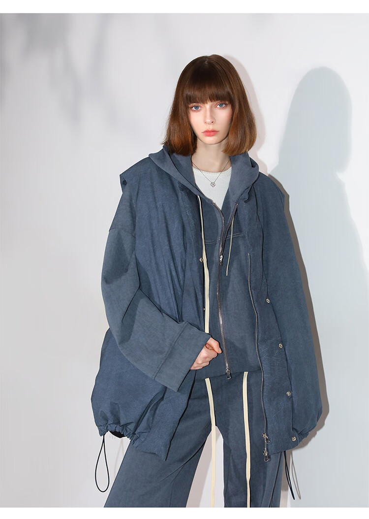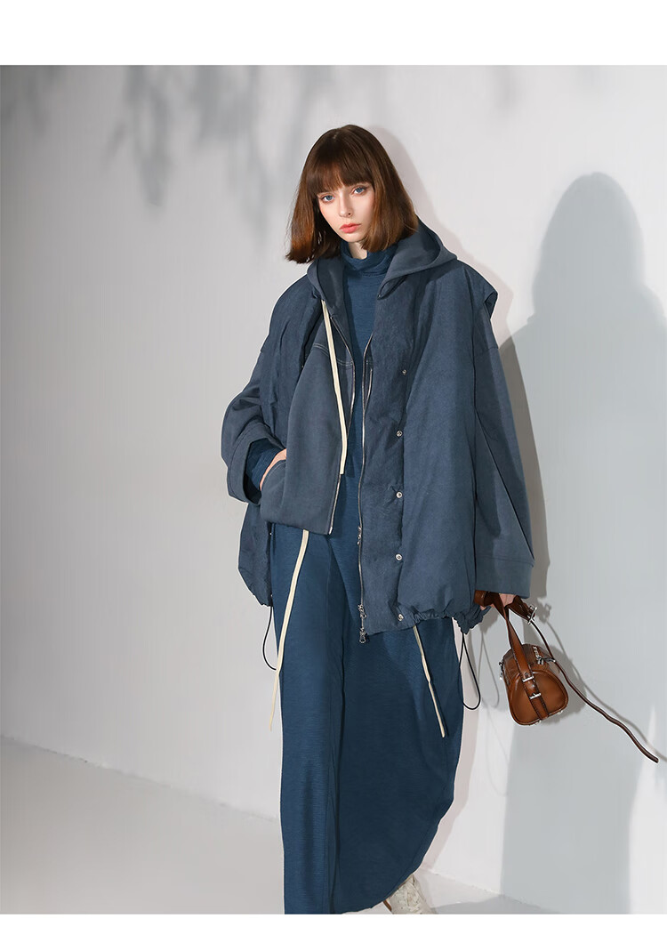 COCOBELLA抽褶蝙蝠袖短外套休闲连帽炒色花纱拉链卫衣SC3013