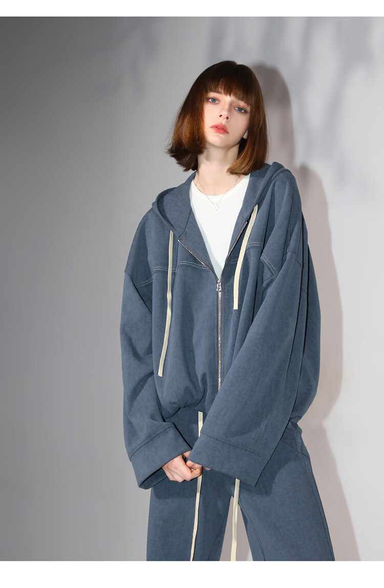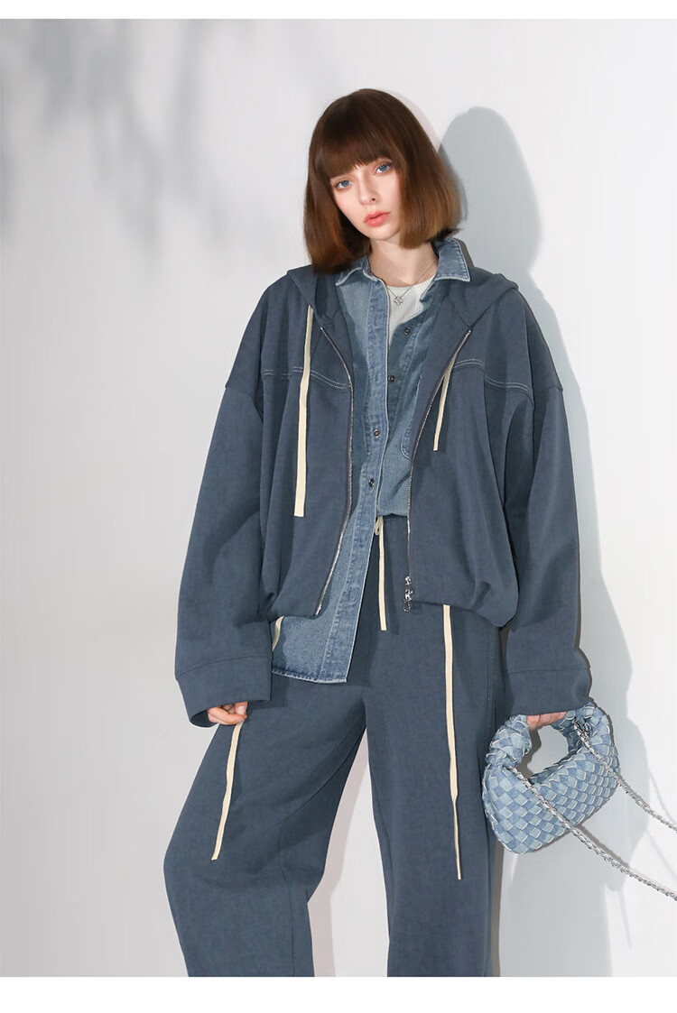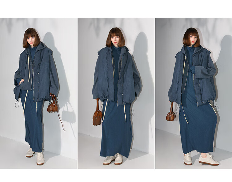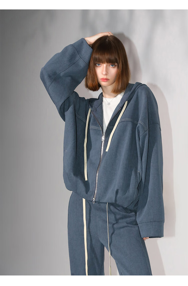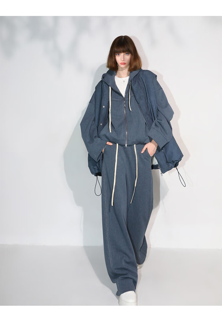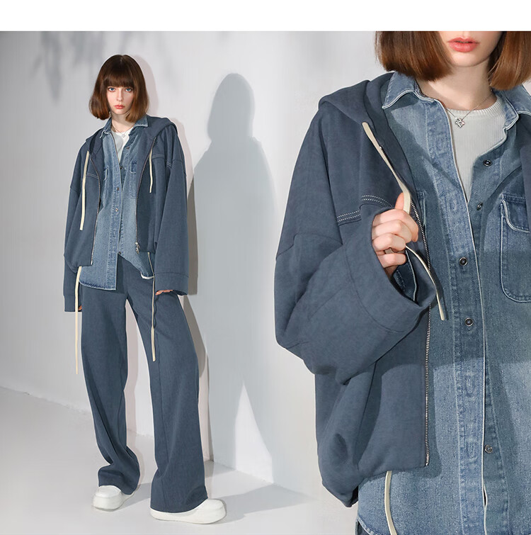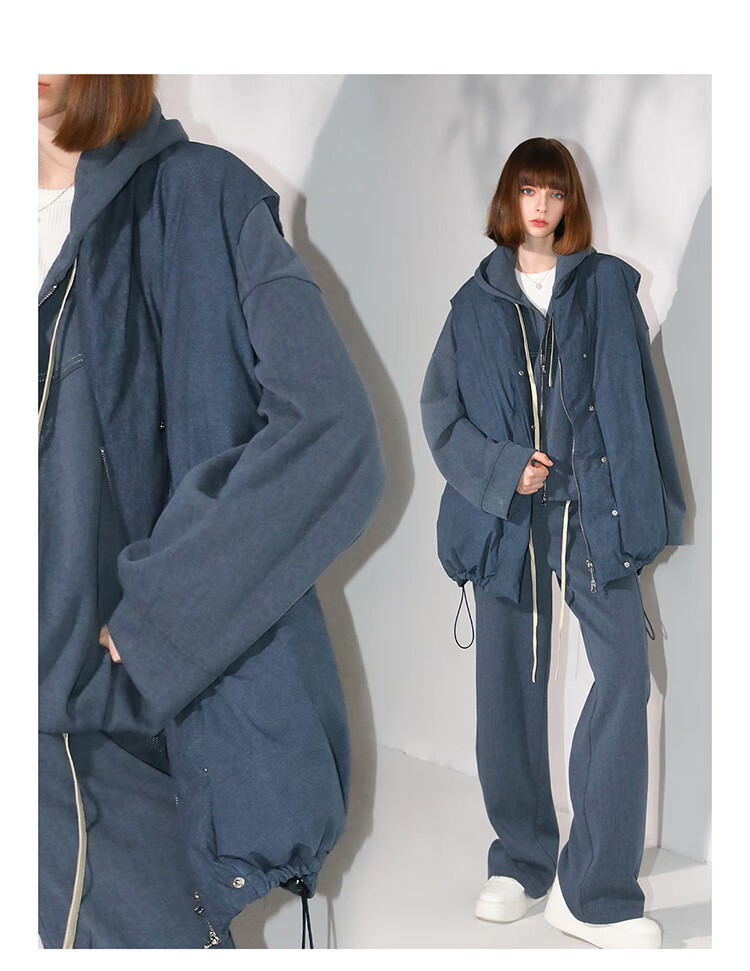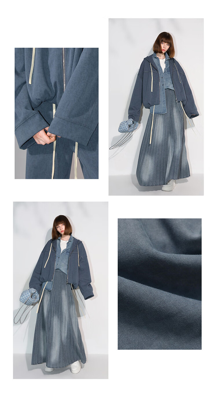 COCOBELLA抽褶蝙蝠袖短外套休闲连帽炒色花纱拉链卫衣SC3013